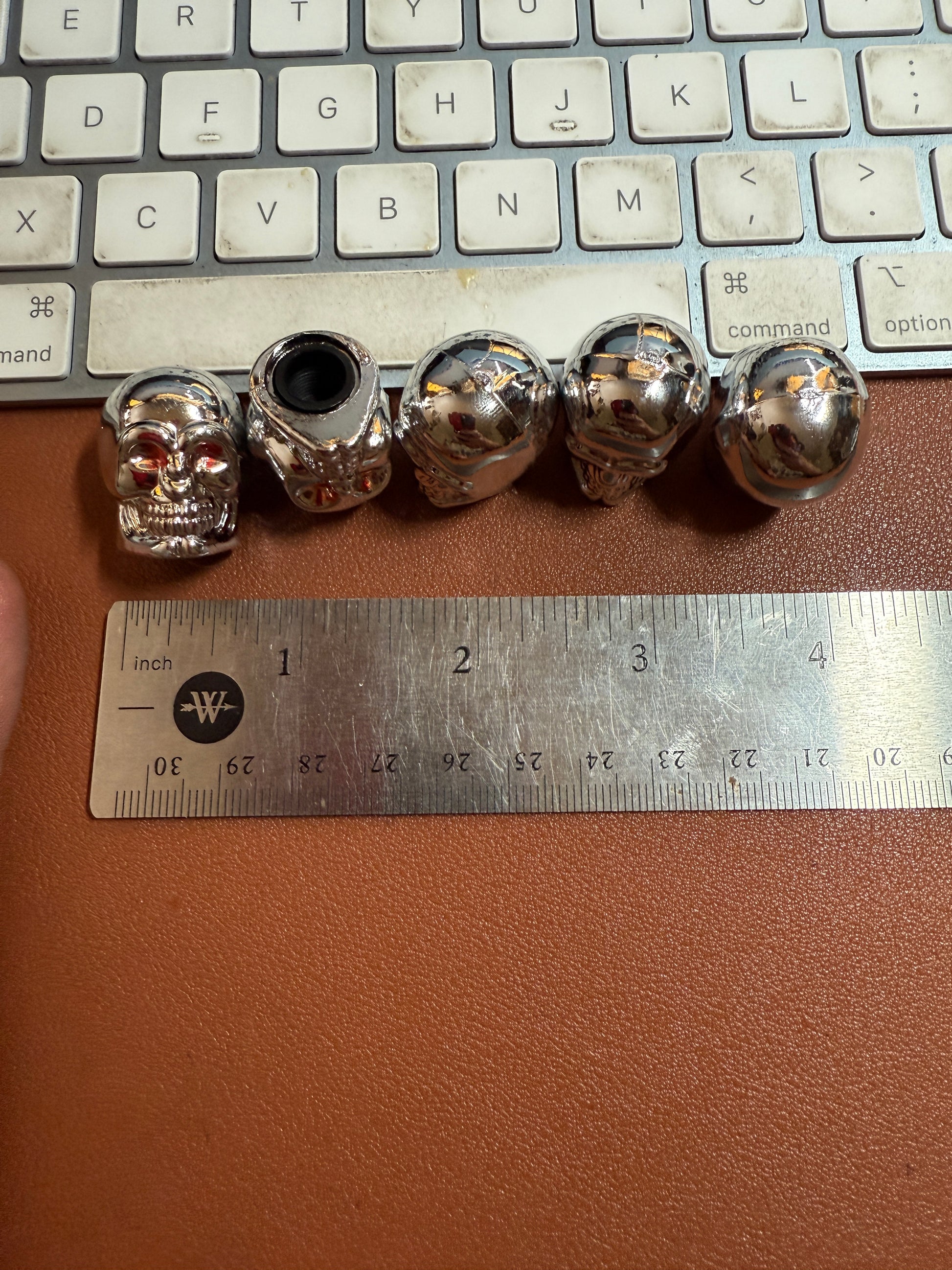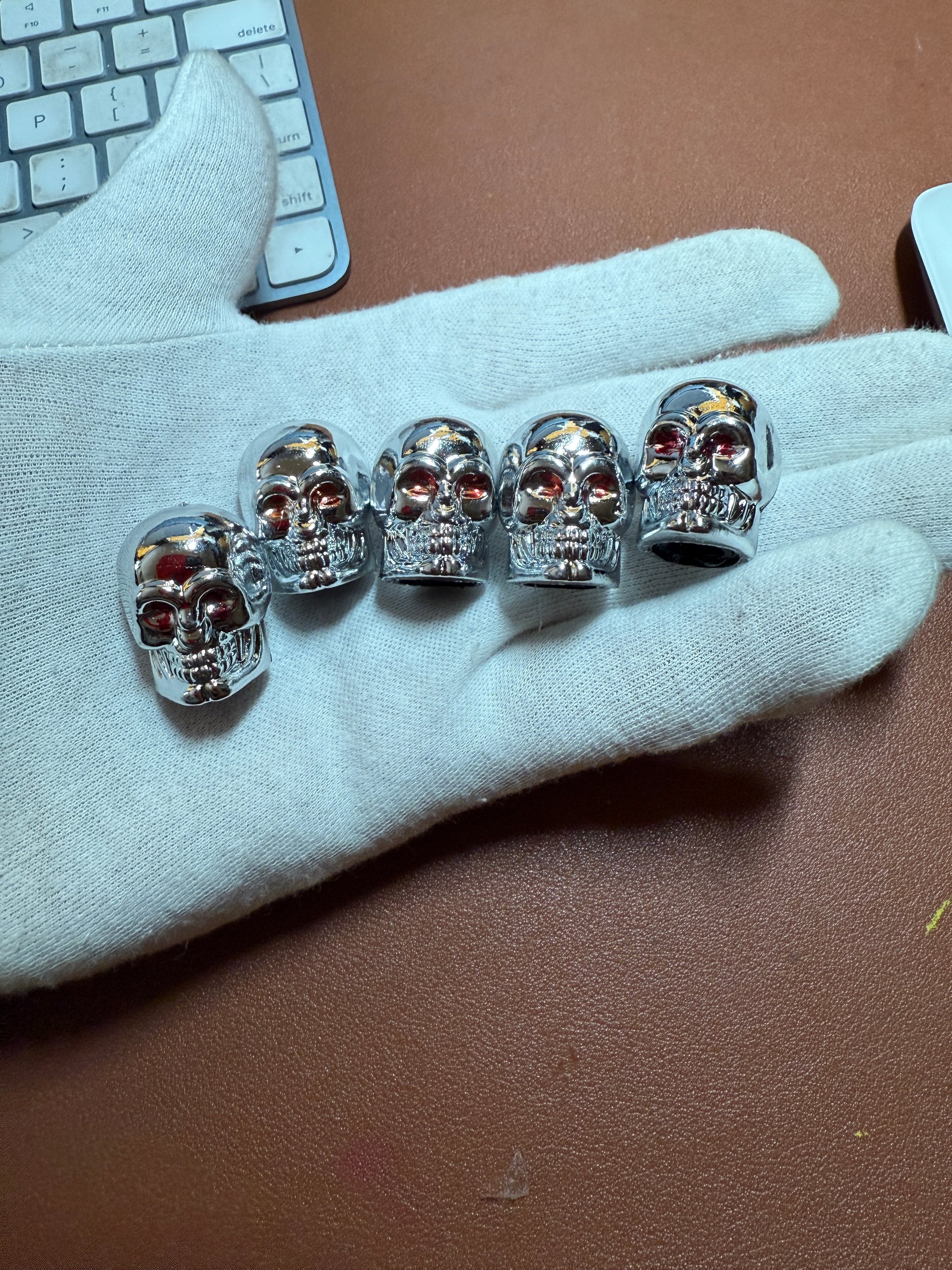 5 Aztec Mictlantecuhtli Terminator Skull Valve Stem Cap Cover Air Tire Wheel Car Bike Universal Silver