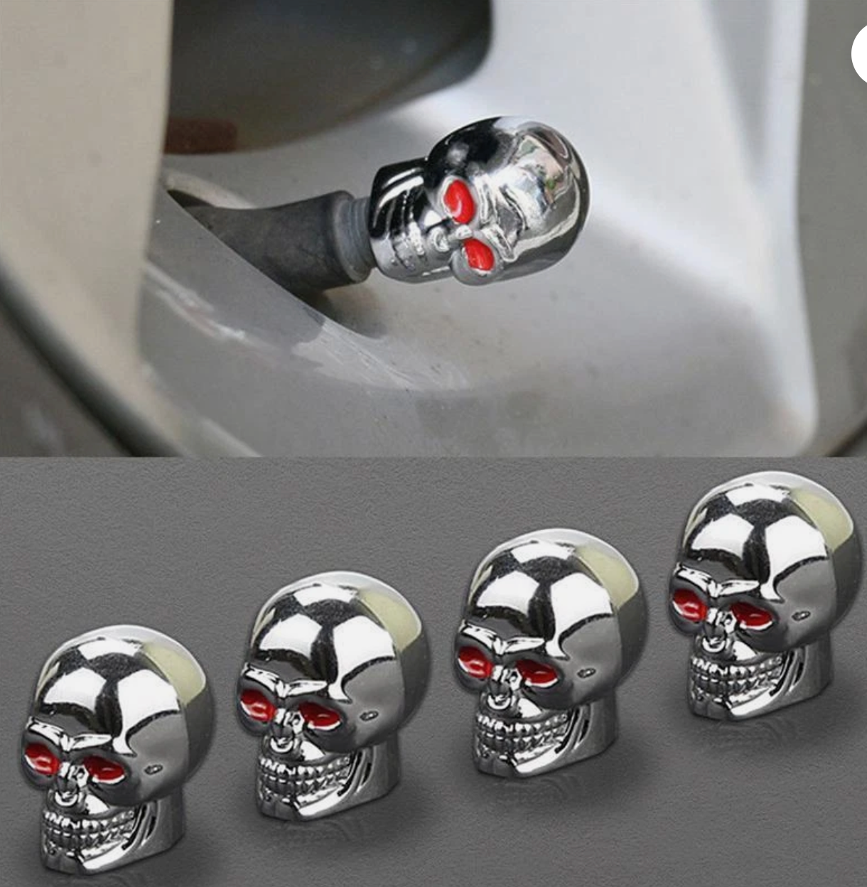 This product is a set of 5 terminator skull valve stem cap covers designed for air tires on cars, motorcycles, and bikes. These silver caps are universal and include no modifications or custom bundles. The sleek design and durable construction make them a stylish and functional addition to any vehicle. These valve stem cap covers add a touch of personality to your wheels while also serving a practical purpose in protecting and decorating your tires.