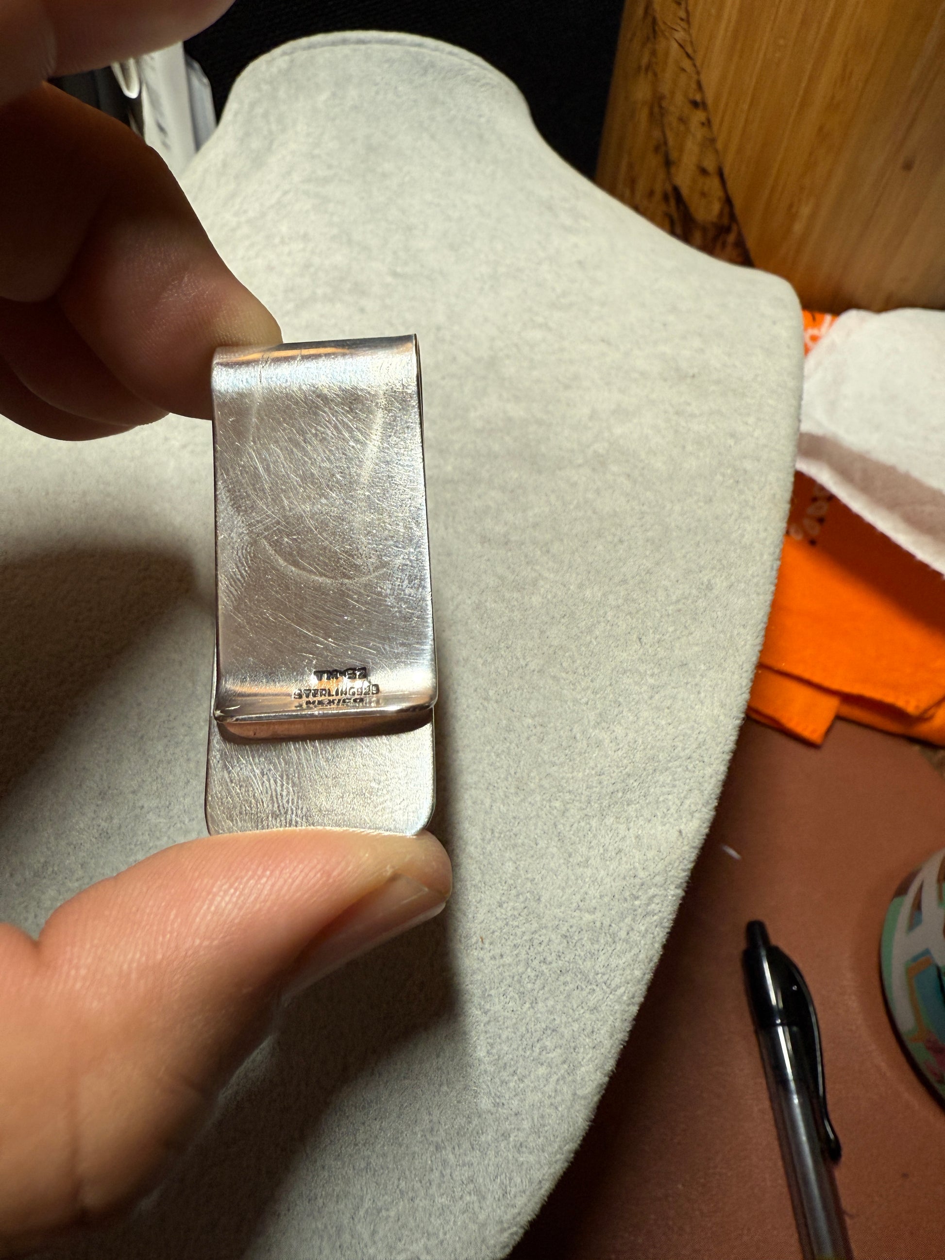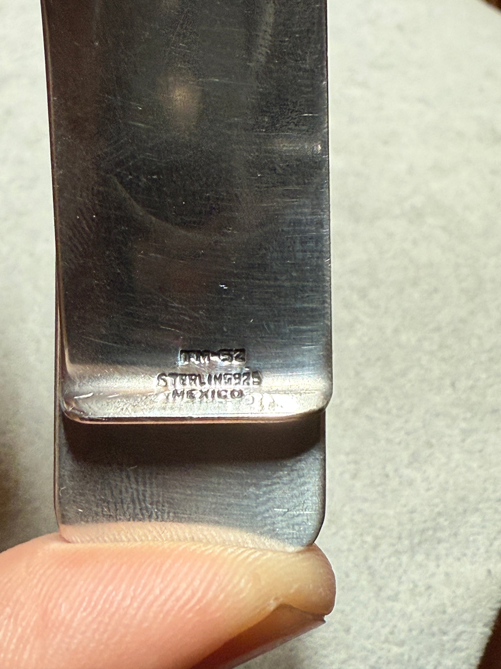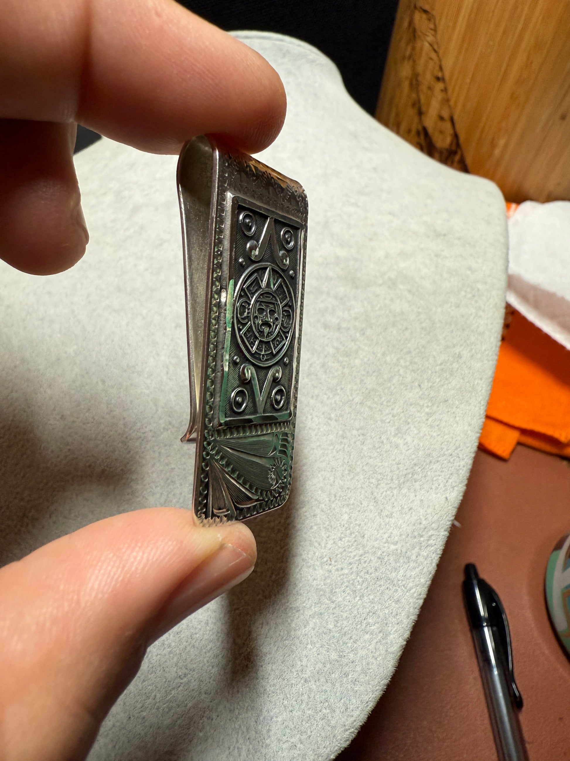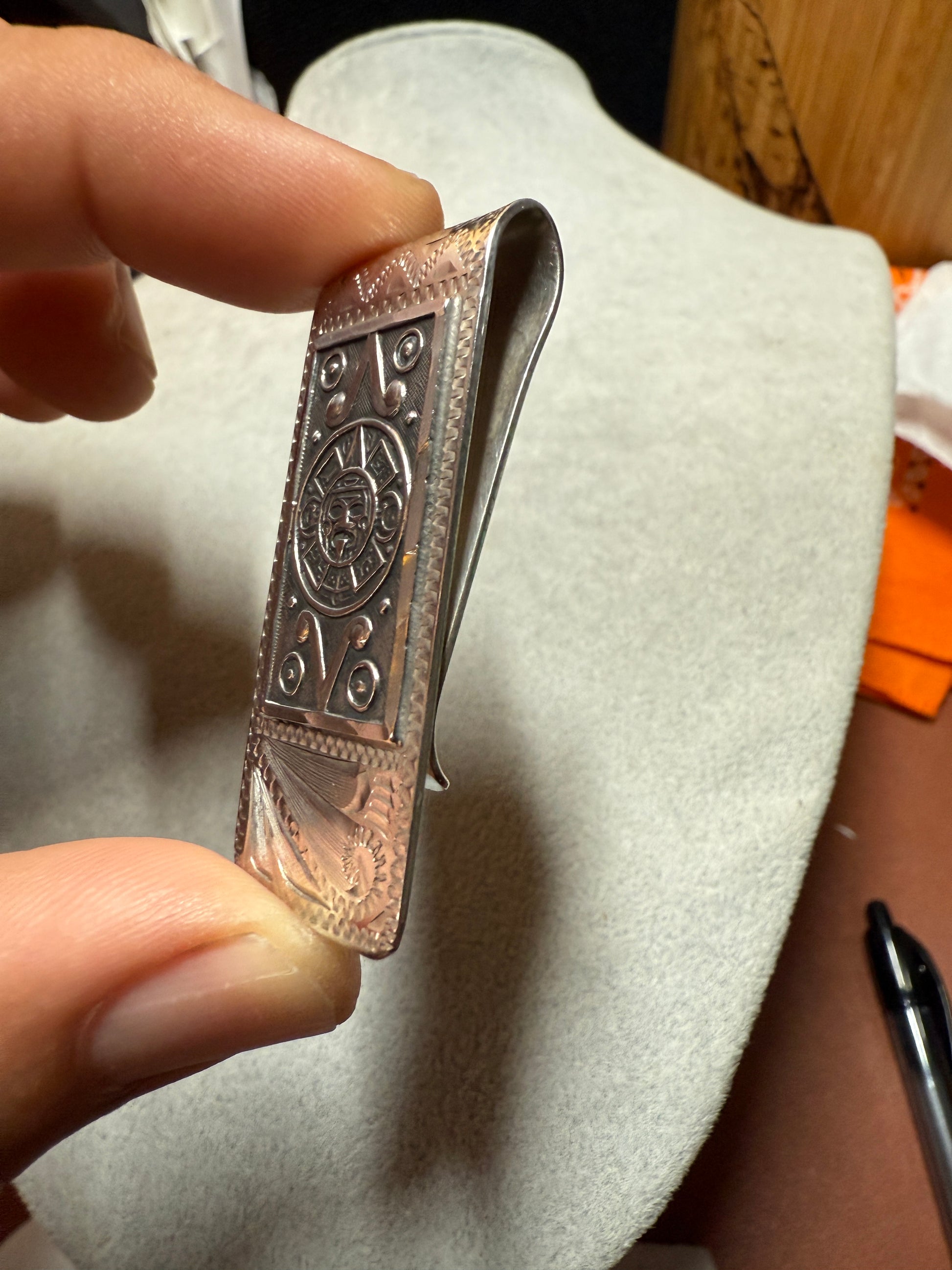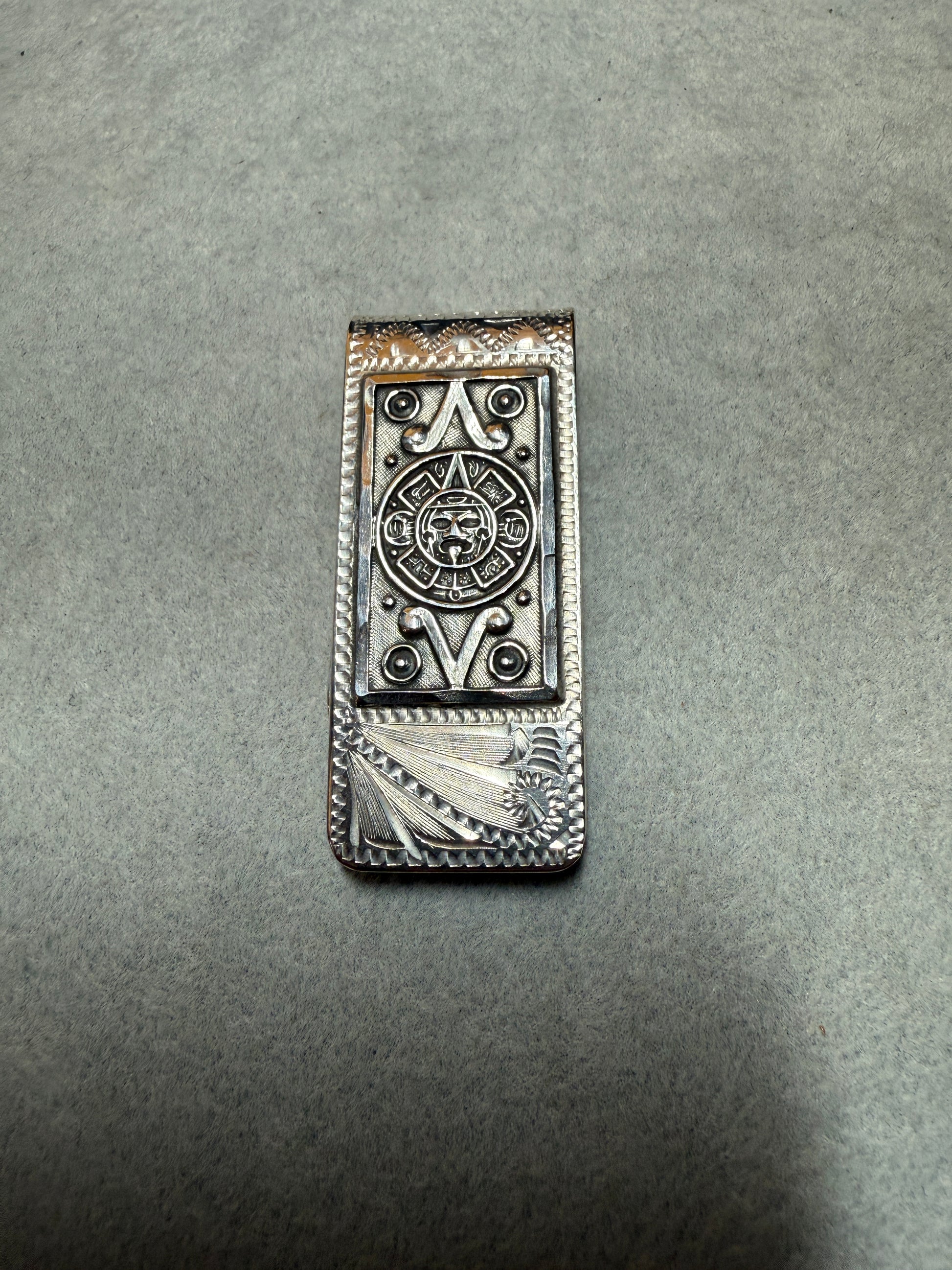 925 Sterling Silver Mexico Aztec Calendar Money Clip 22 grams, Mexican Pesos #39