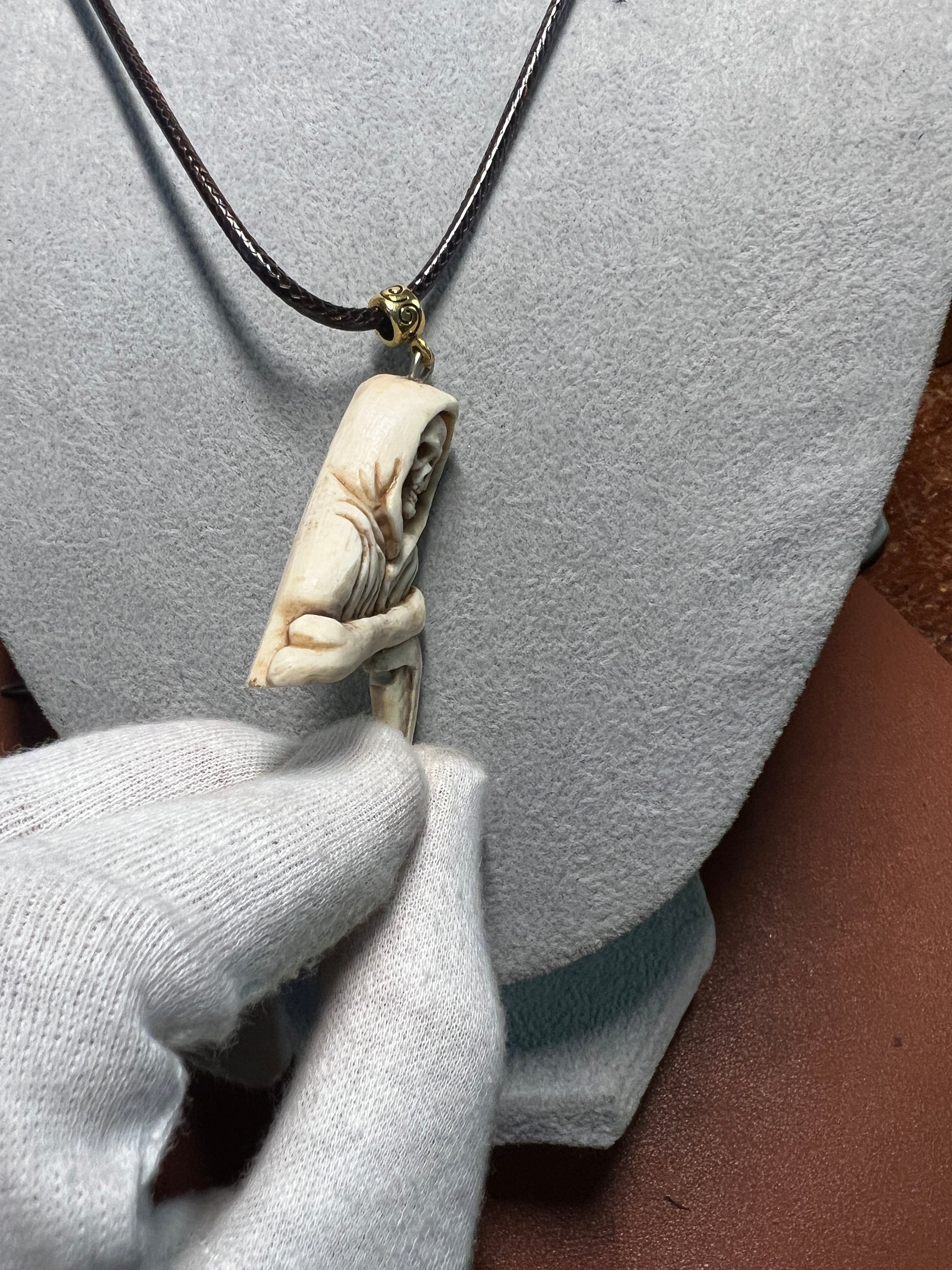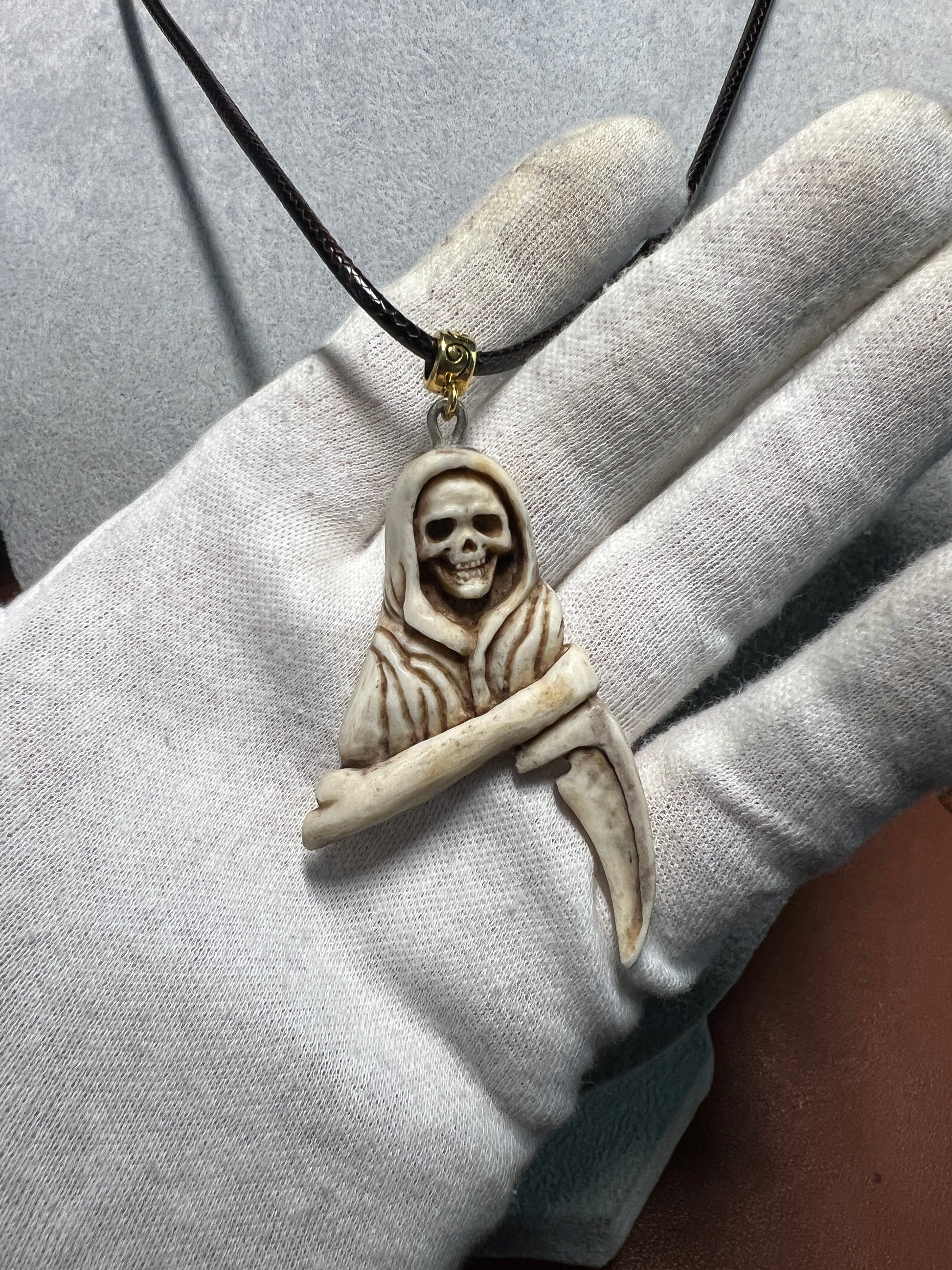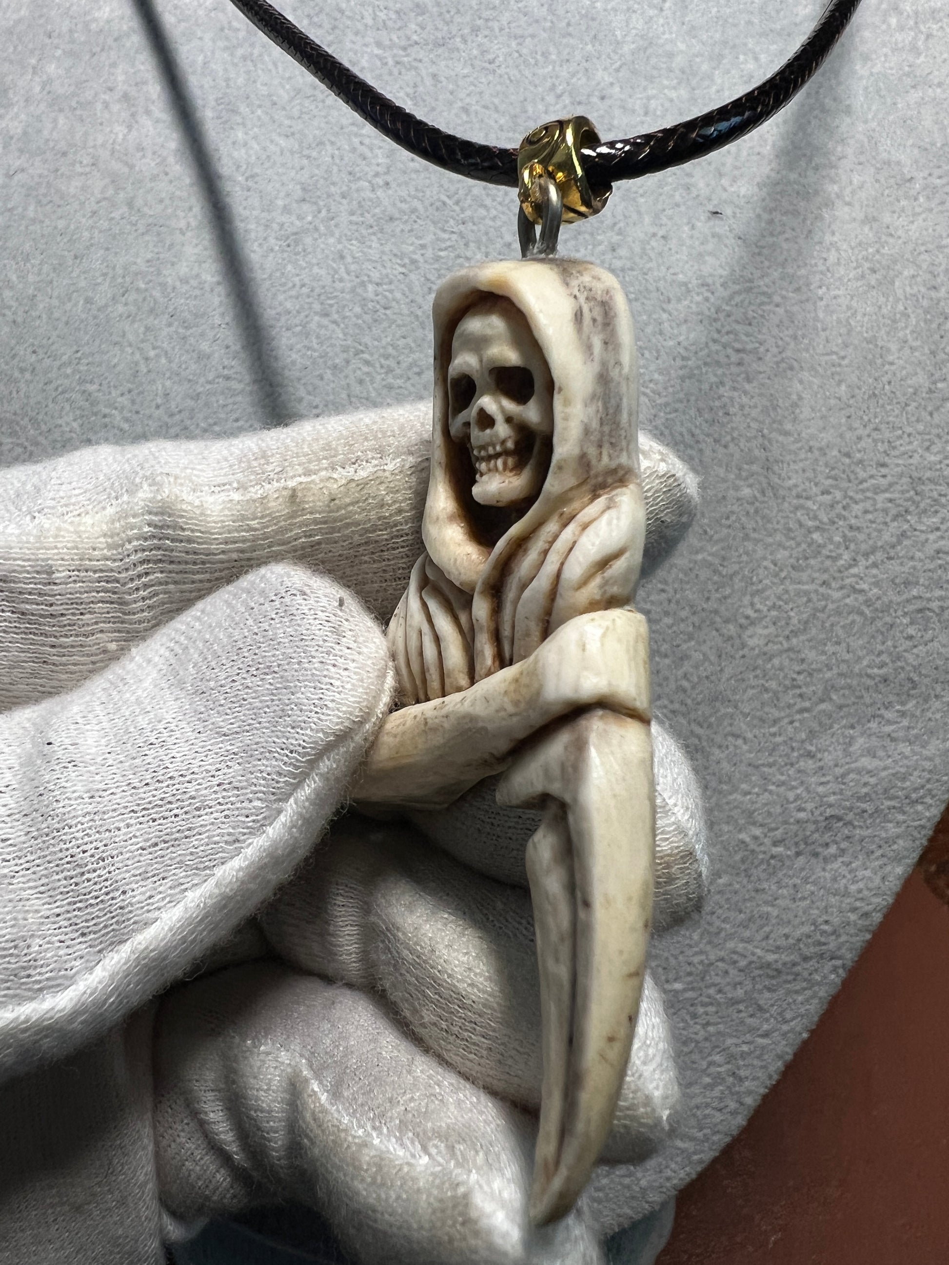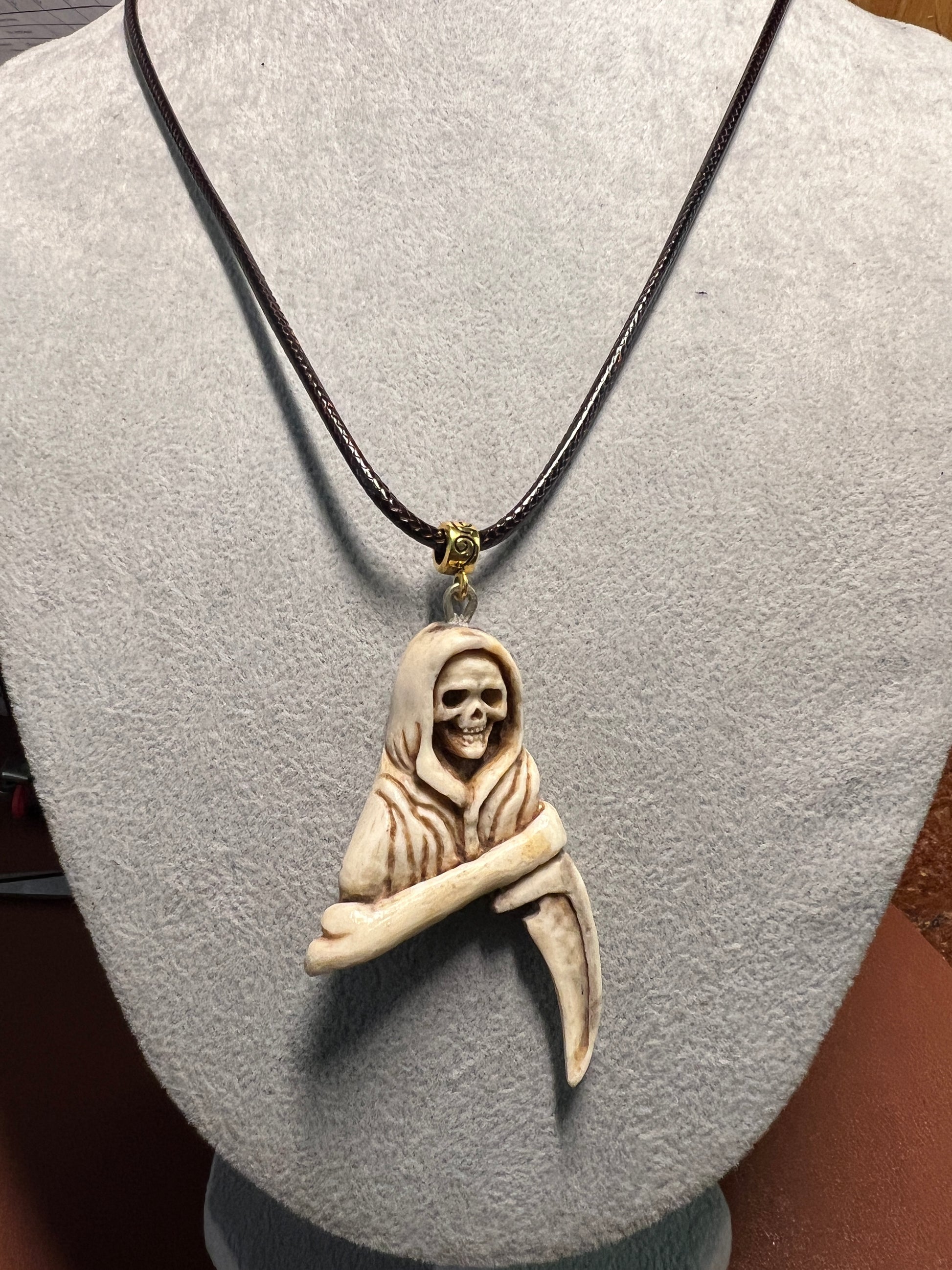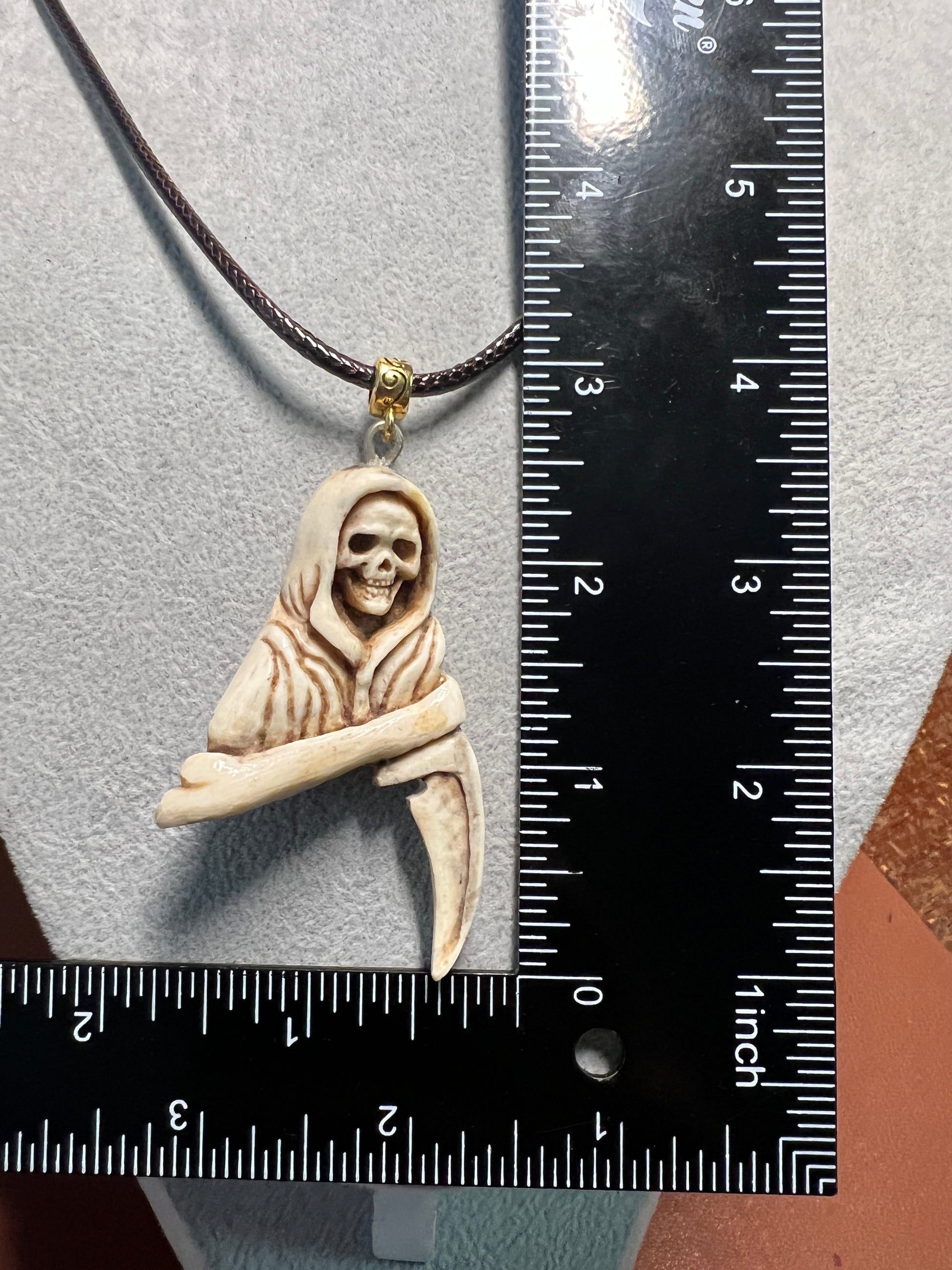 Angel of Death Santa Muerte Grim Reaper Pendant Necklace Mexican Deer Antler (H)