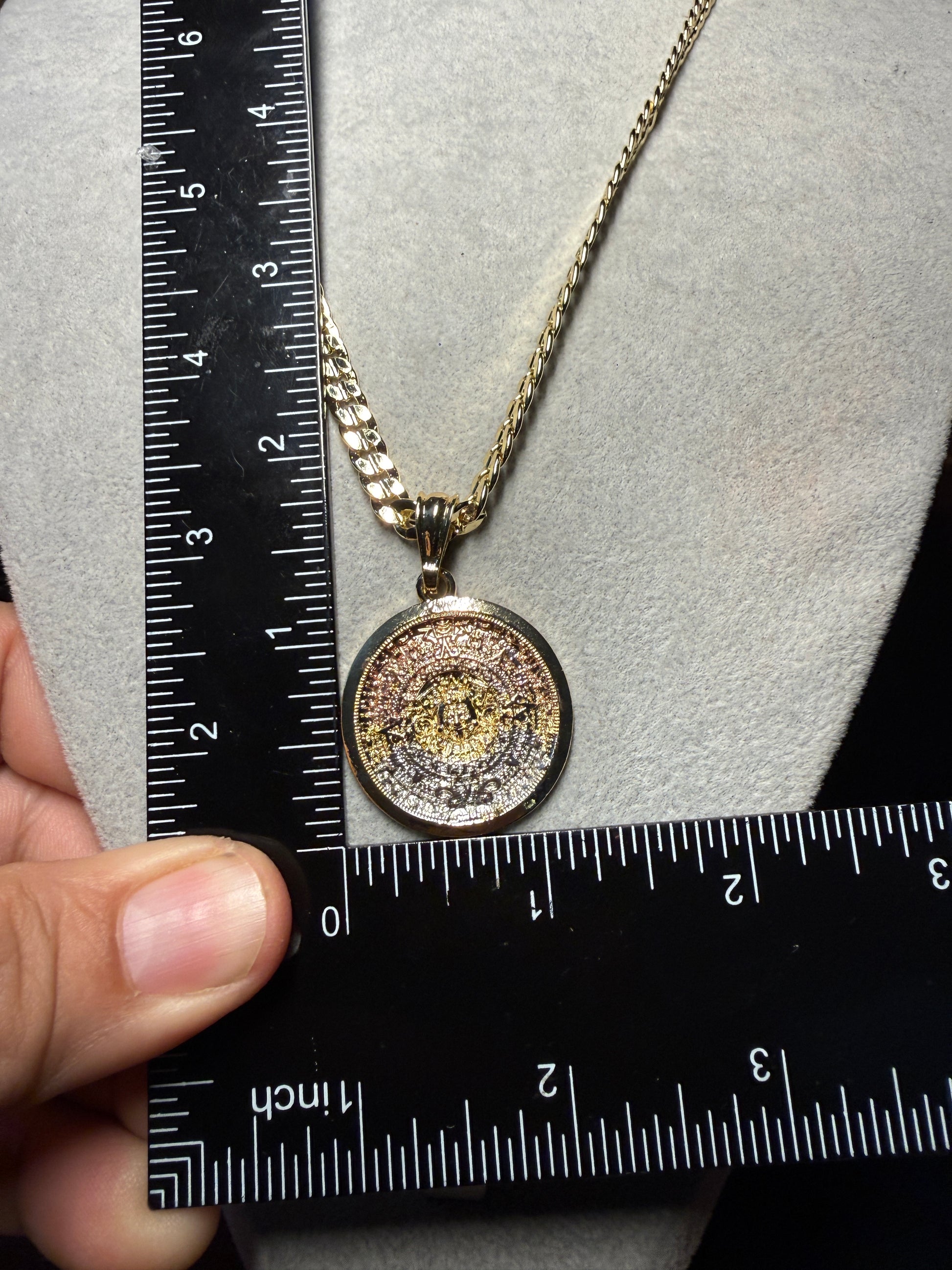 Aztec Calendar Charm Pendant Necklace Gold Plated, Tri Color, Calendario Azteca Jewelry #5 (Copy)
