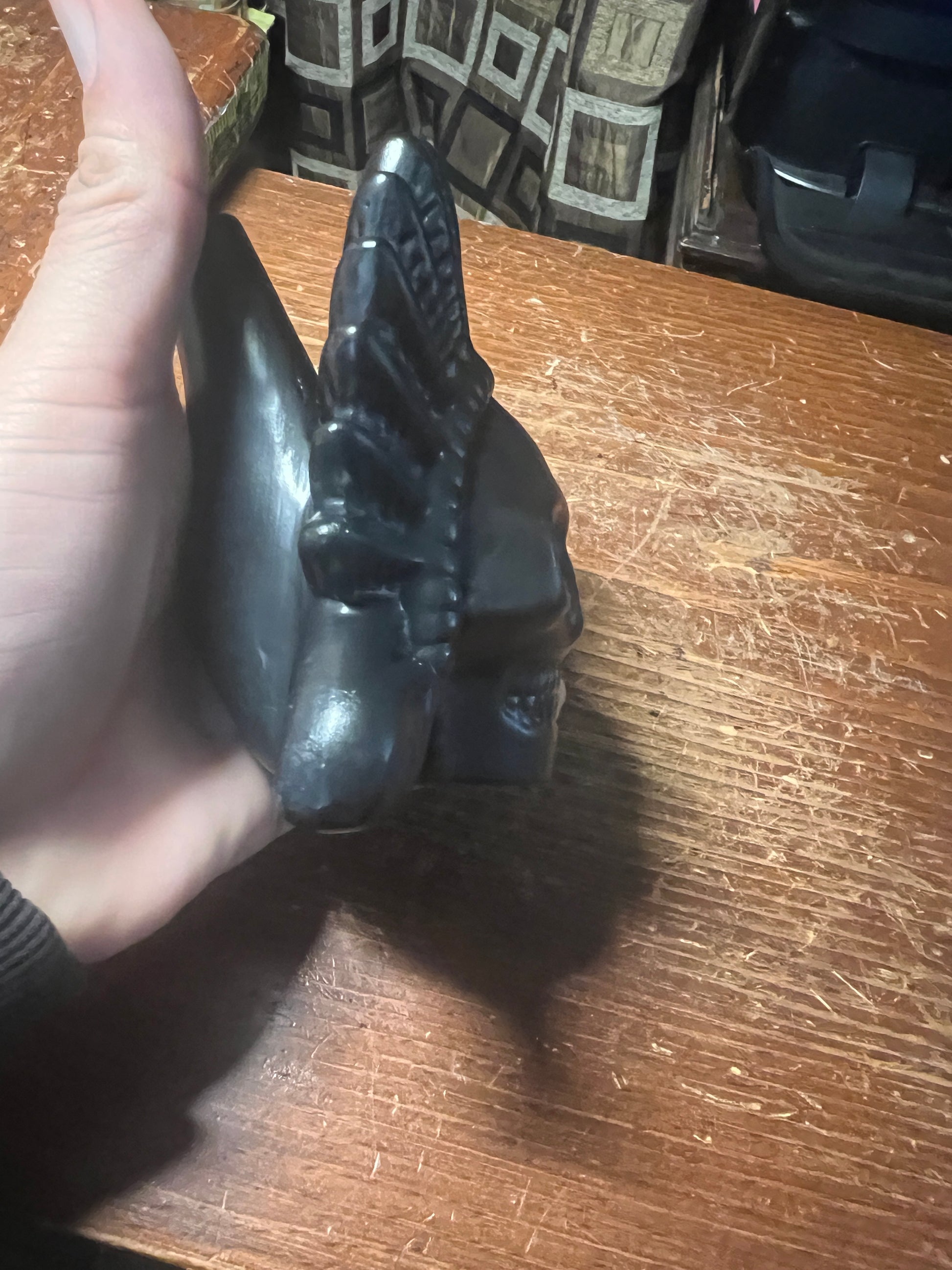 Black, Made of Clay and Resin.