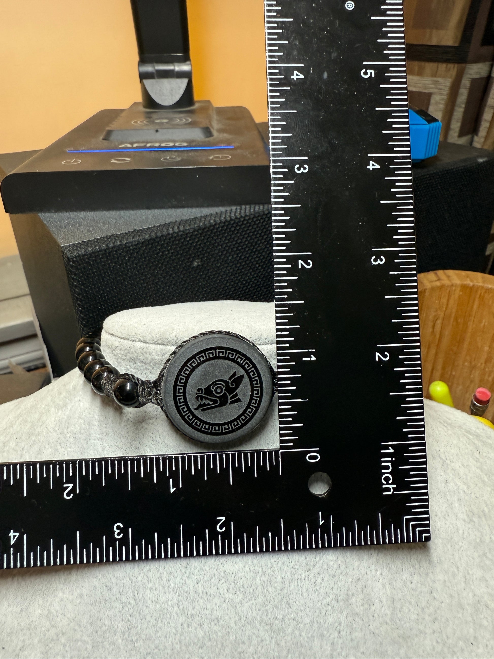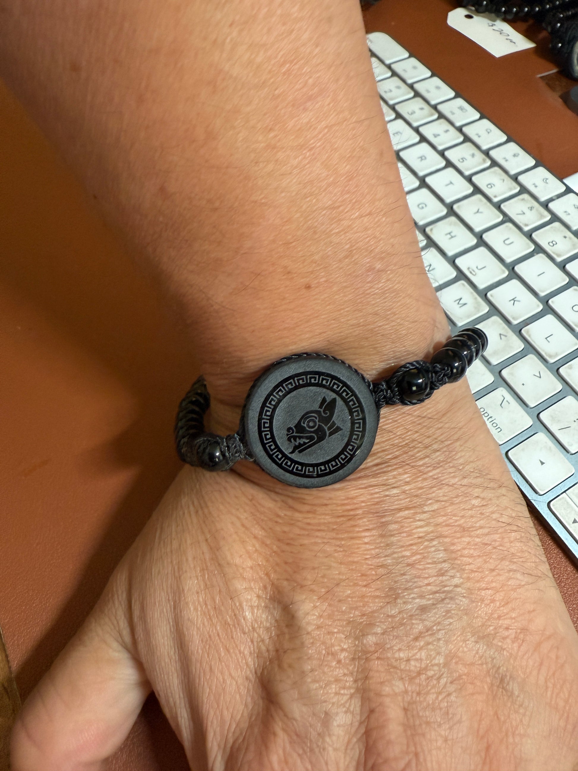 Aztec Dog Pendant Xoloitzcuintli, Obsidian Bracelet, Beaded, Handmade, Mexico. Adjustable.