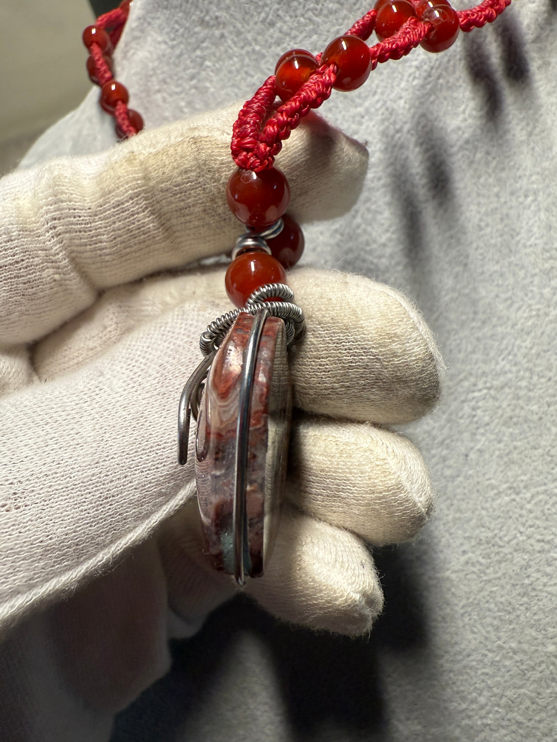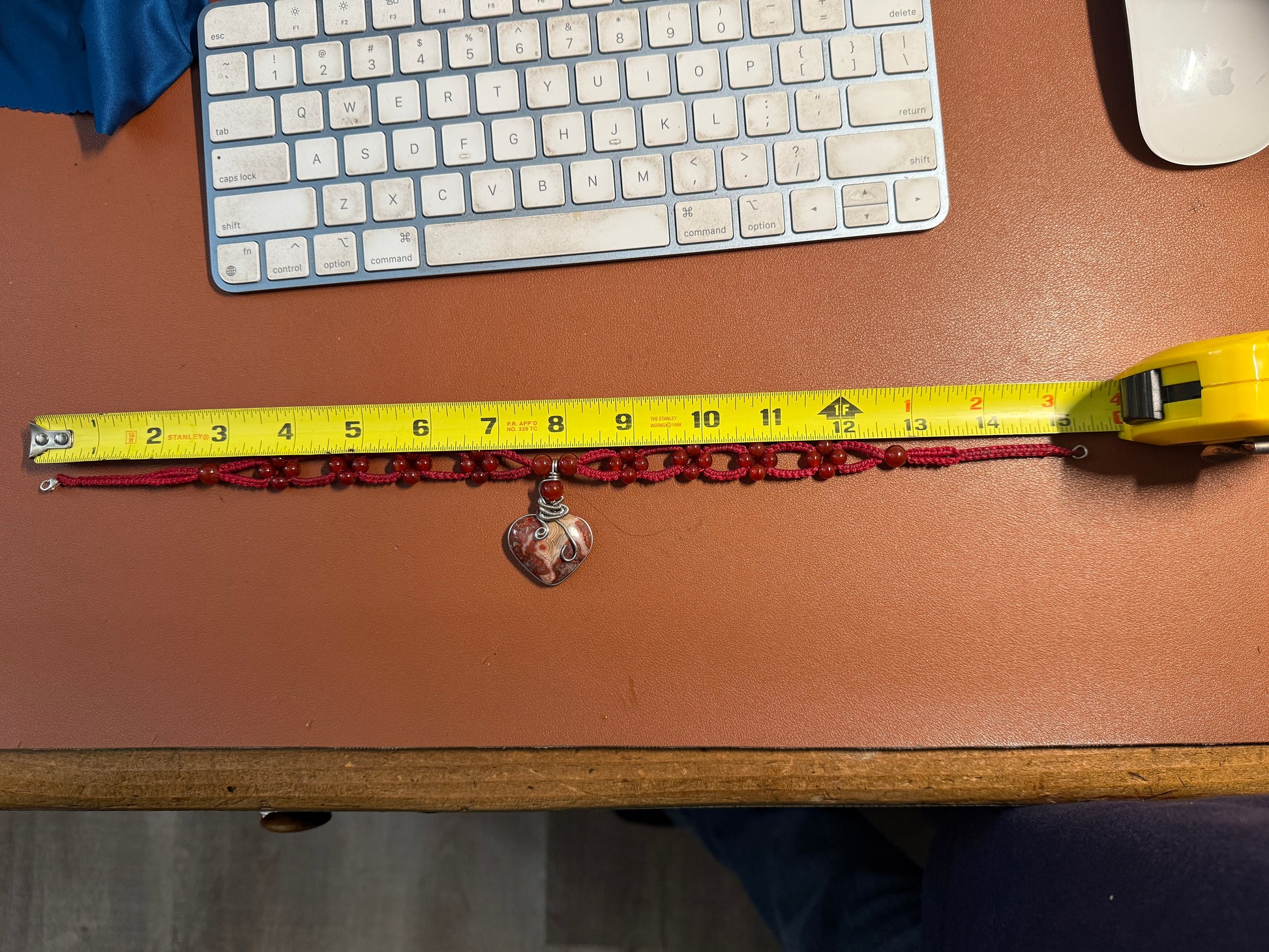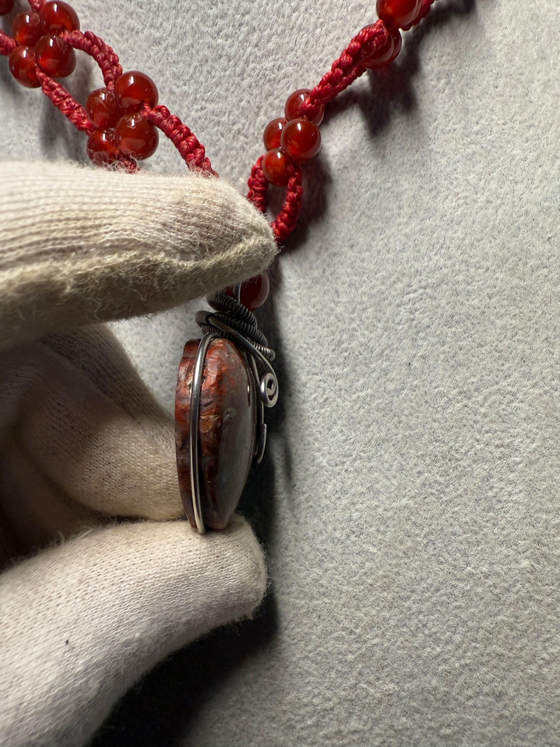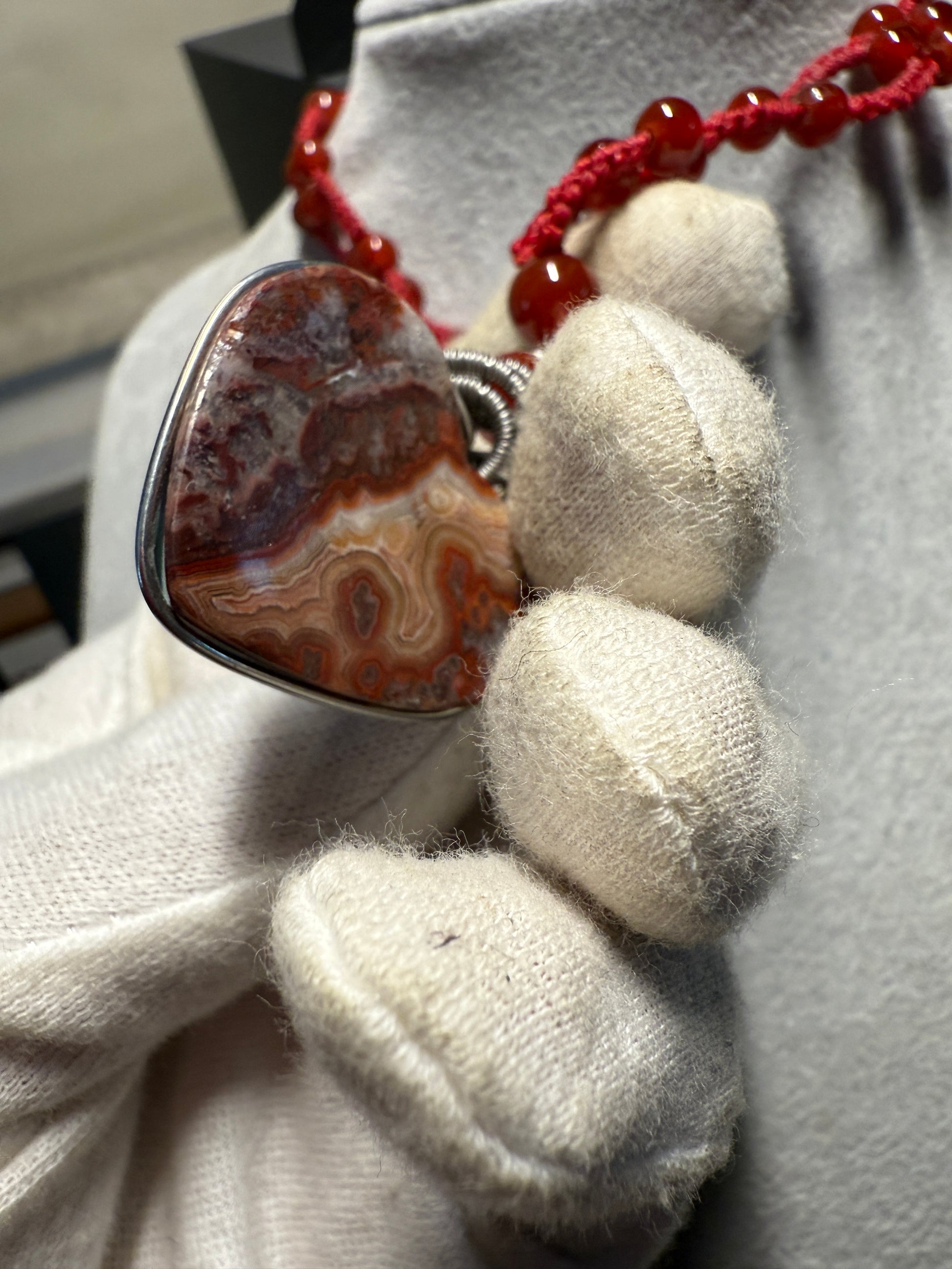 Aztec Heart Necklace, Agate Coralina, Red Jasper, Woven 15" (#20)