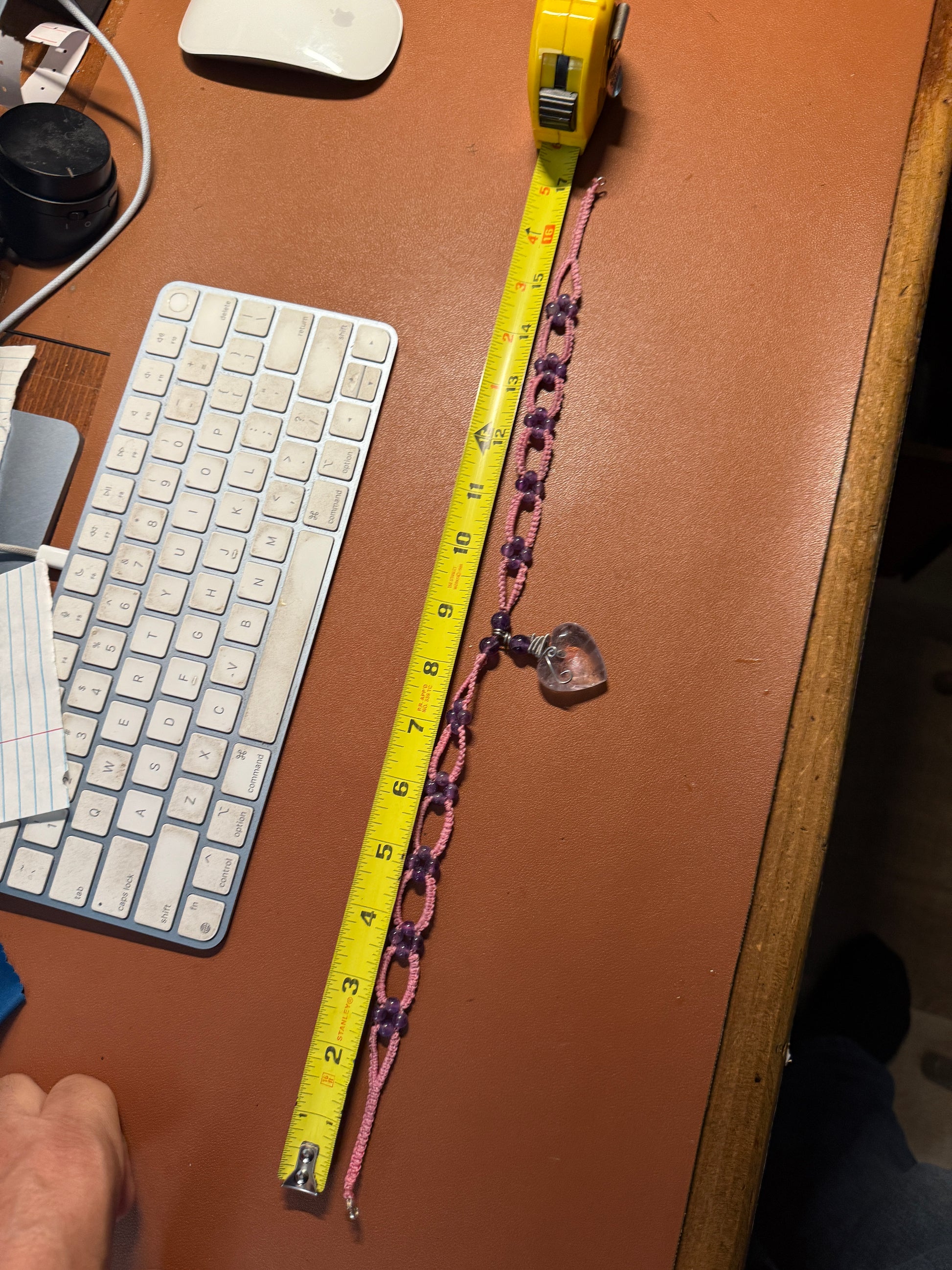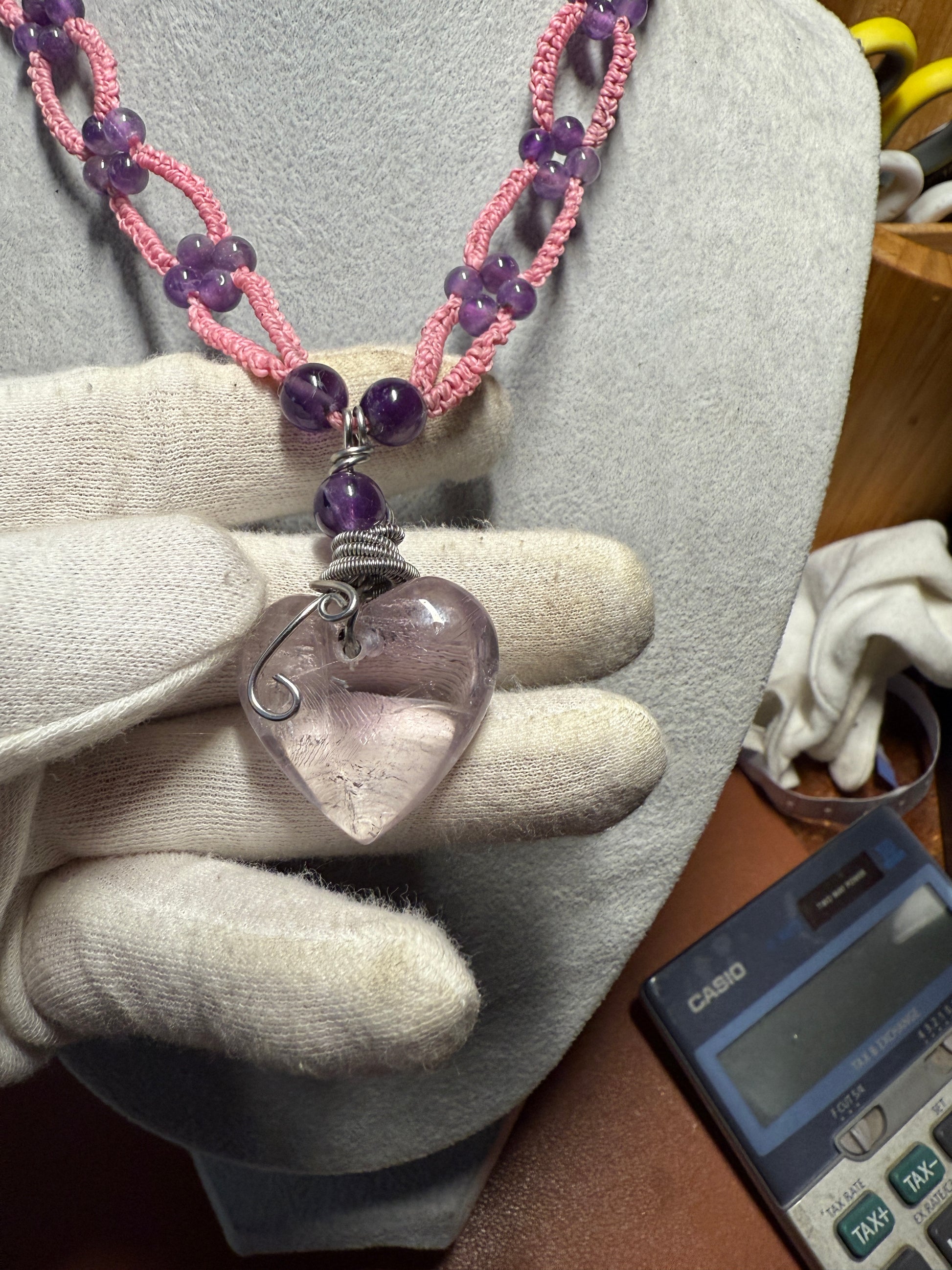 Aztec Heart Necklace, Rose Quartz, Quartz Beads, Woven 17", Mexico, Real (#20)