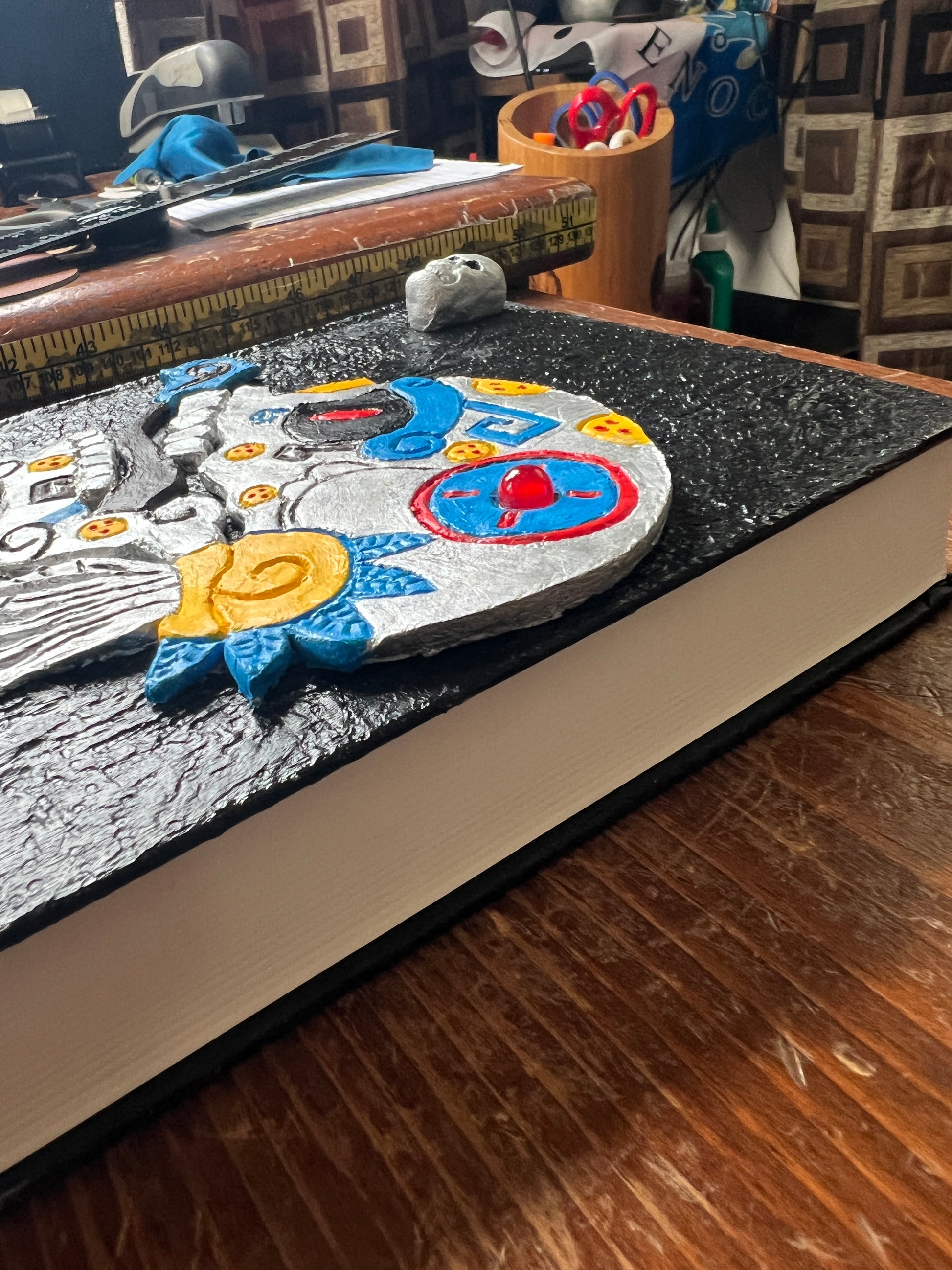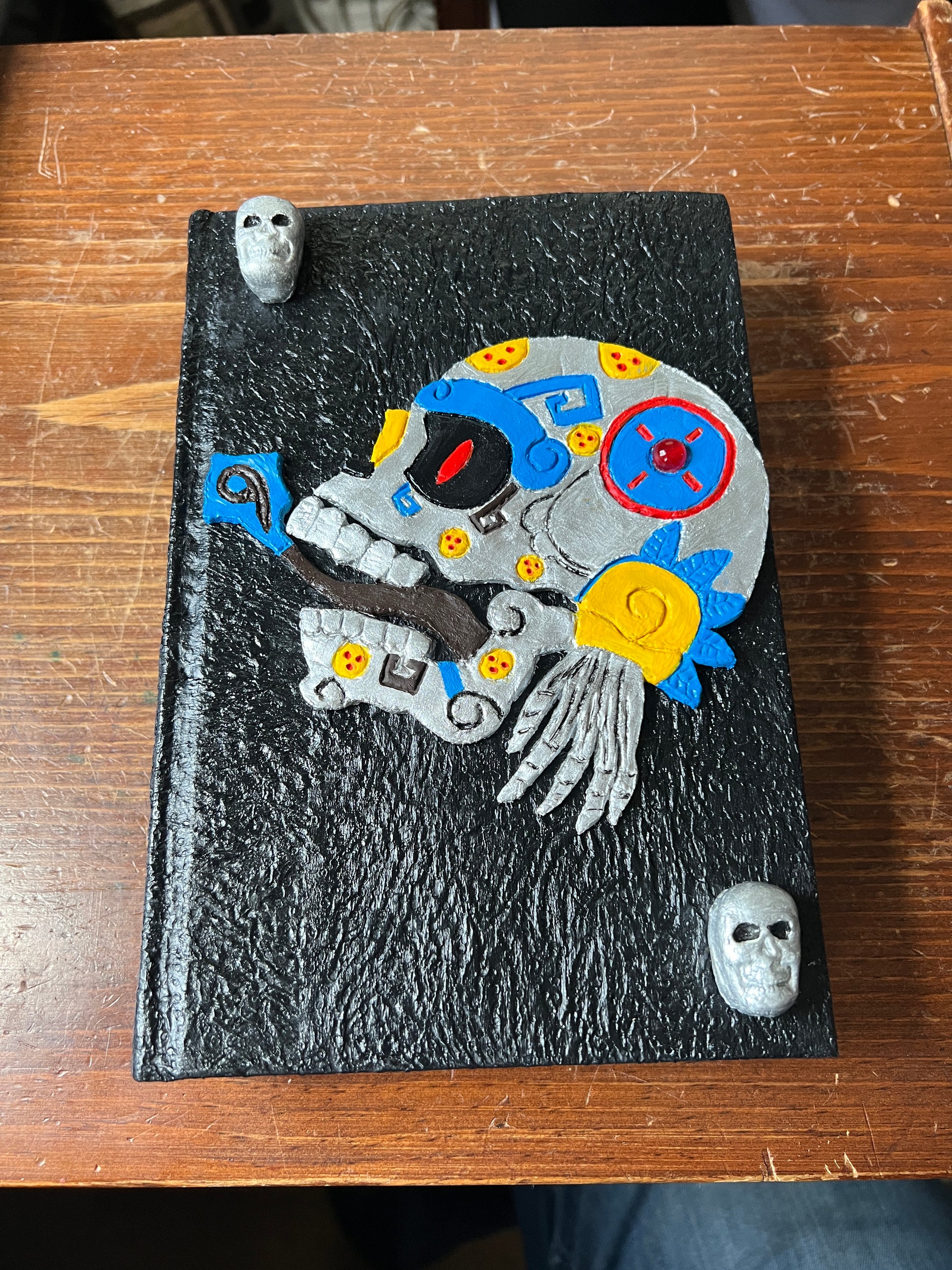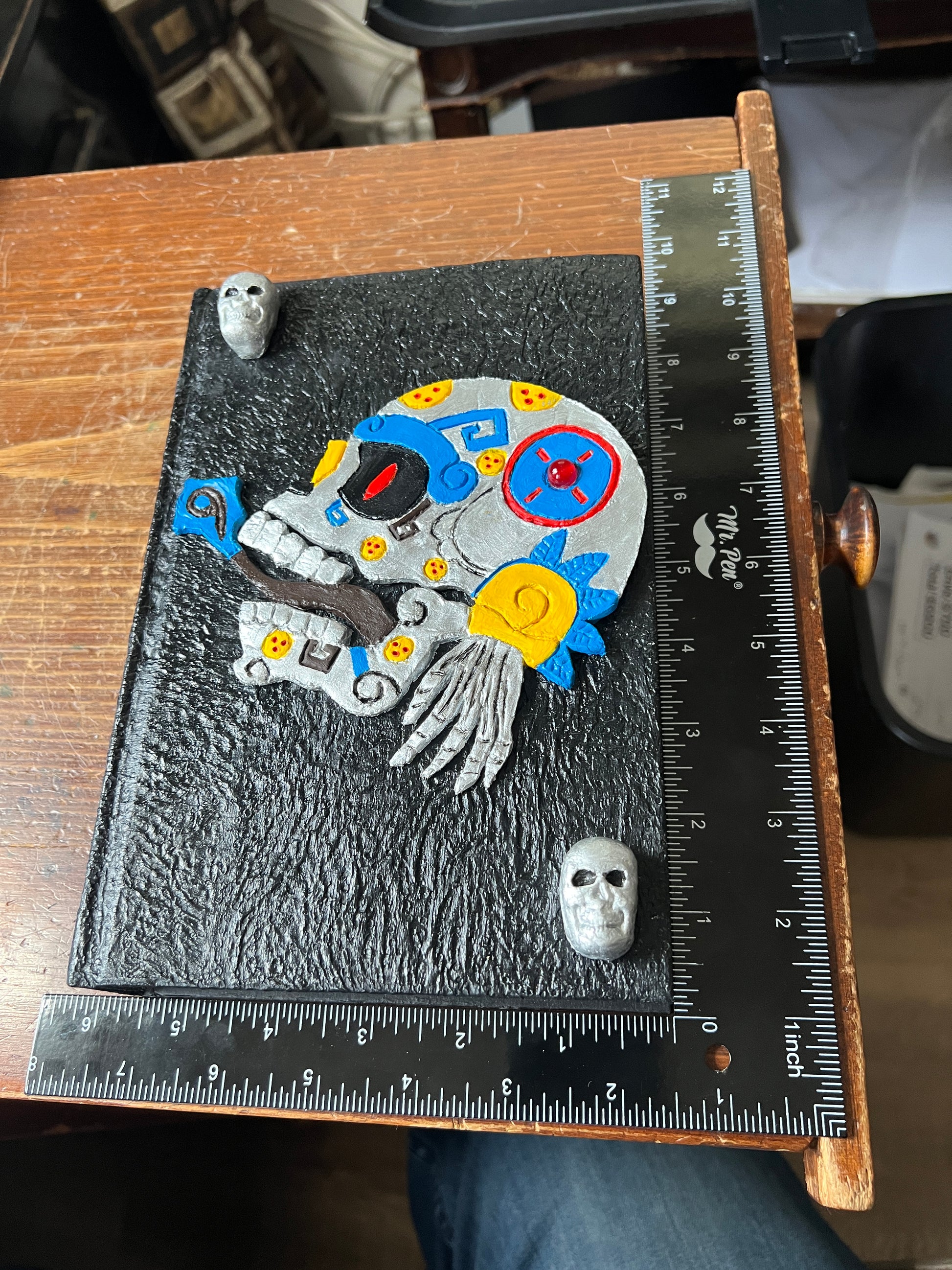 The Aztec Maquiztli Mictlantecuhtli Skull Diary Drawing Spell Book is an ideal gift for students, writers, artists, poets, shaw men, and witches. It features blank paper, a cardboard cover with hand made elaborate design of clay of the Aztec god of death Maquiztli, and blank cotton paper for a sustainable touch. This unique journal is handcrafted in Mexico and is perfect for writing, drawing, jotting down spells, or creating art. The ancient Aztec design adds a mystical and cultural element to this versatile and creepy diary.