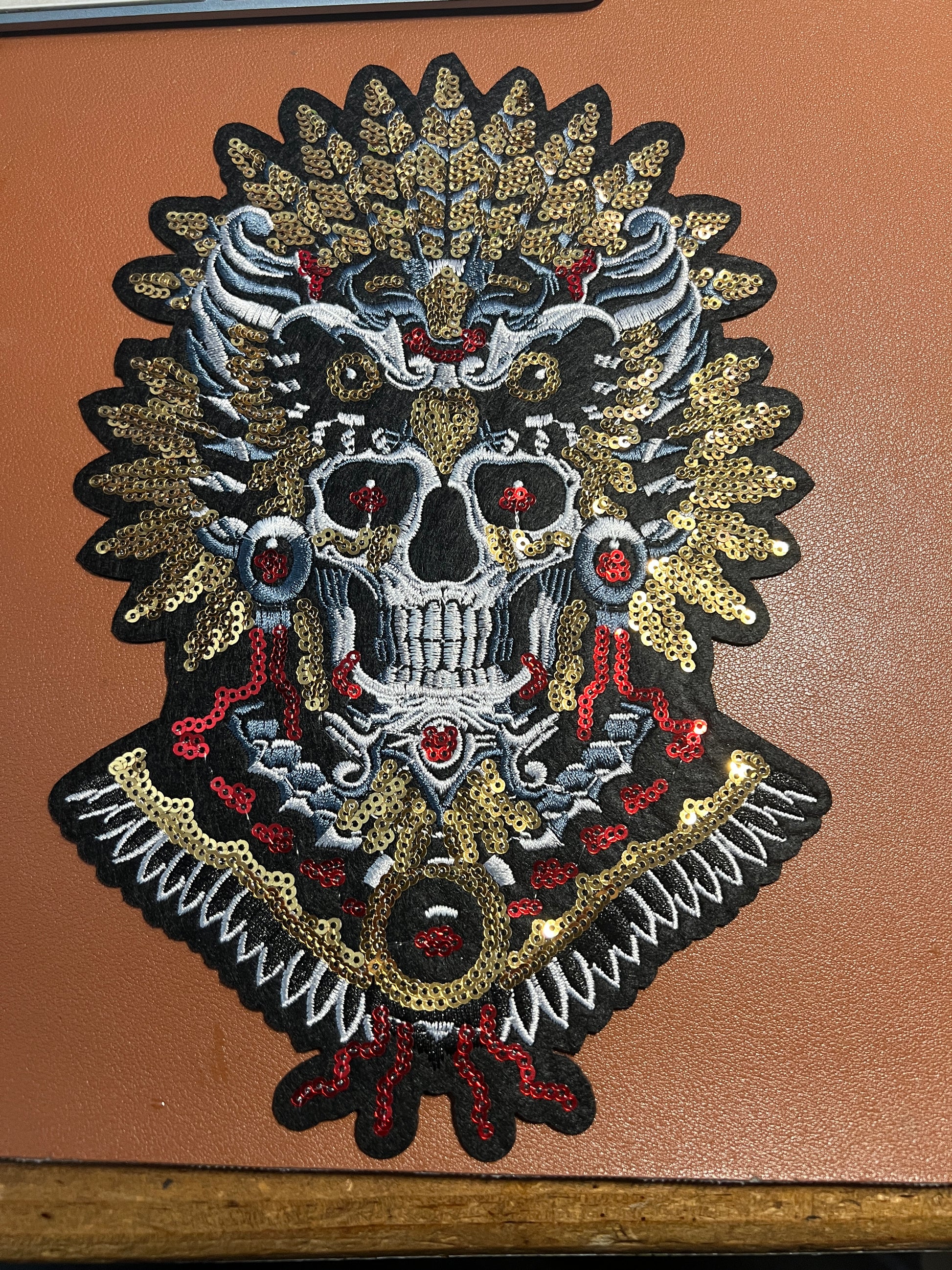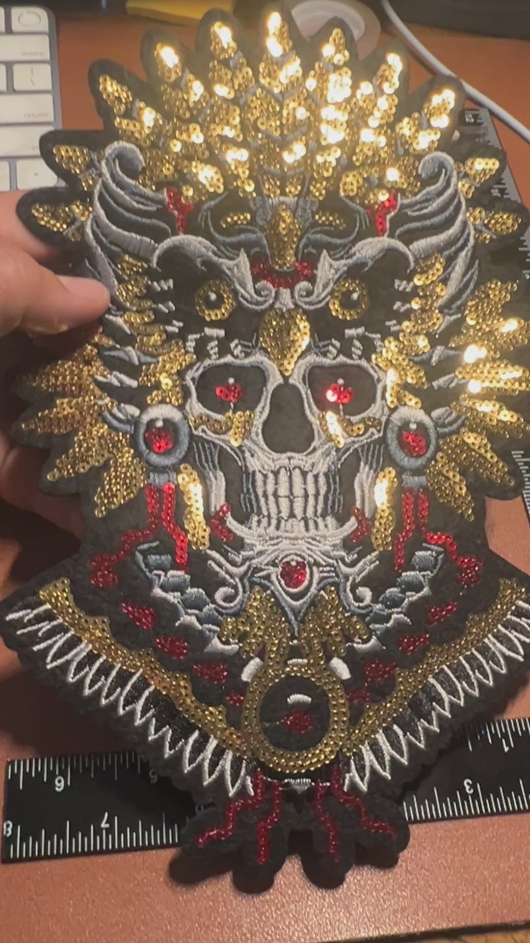 Aztec Mictlantecuhtli Dead Eagle Warrior, Patch, Embroidery Sequins 10" x 6 1/4"