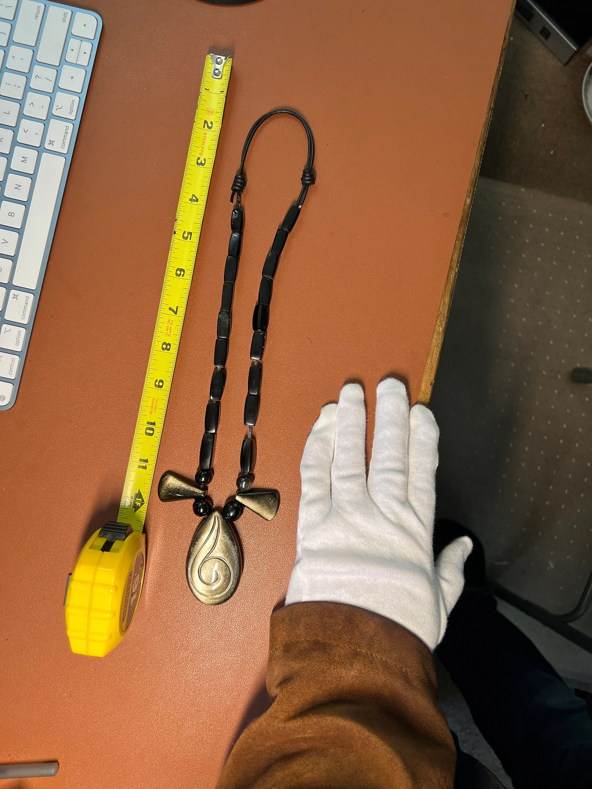Aztec Nahuatl Speech Symbol Necklace Golden Sheen and Black Obsidian from Mexico, Teotihuacan, Rare, Unique, One of a Kind, 24 + in. (#13)