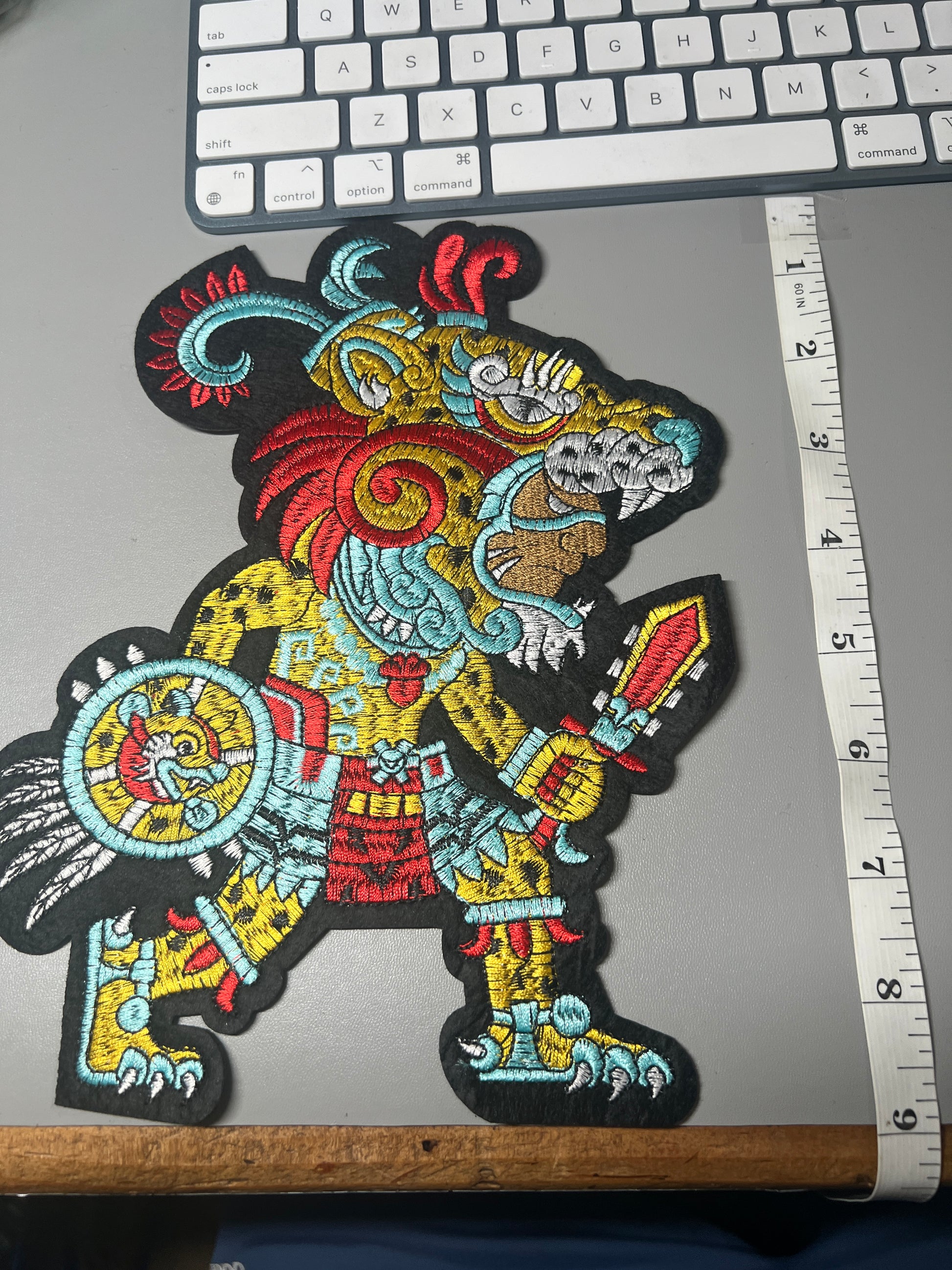 Aztec or Mayan Jaguar Warrior Patch, Large, 9", iron on patches, Mexica, Mexican, Mexico, embroidered (#21)