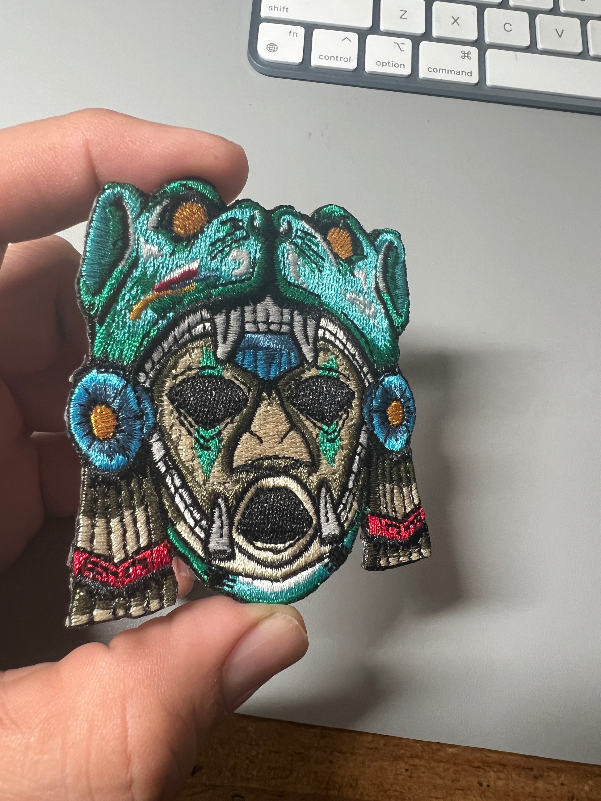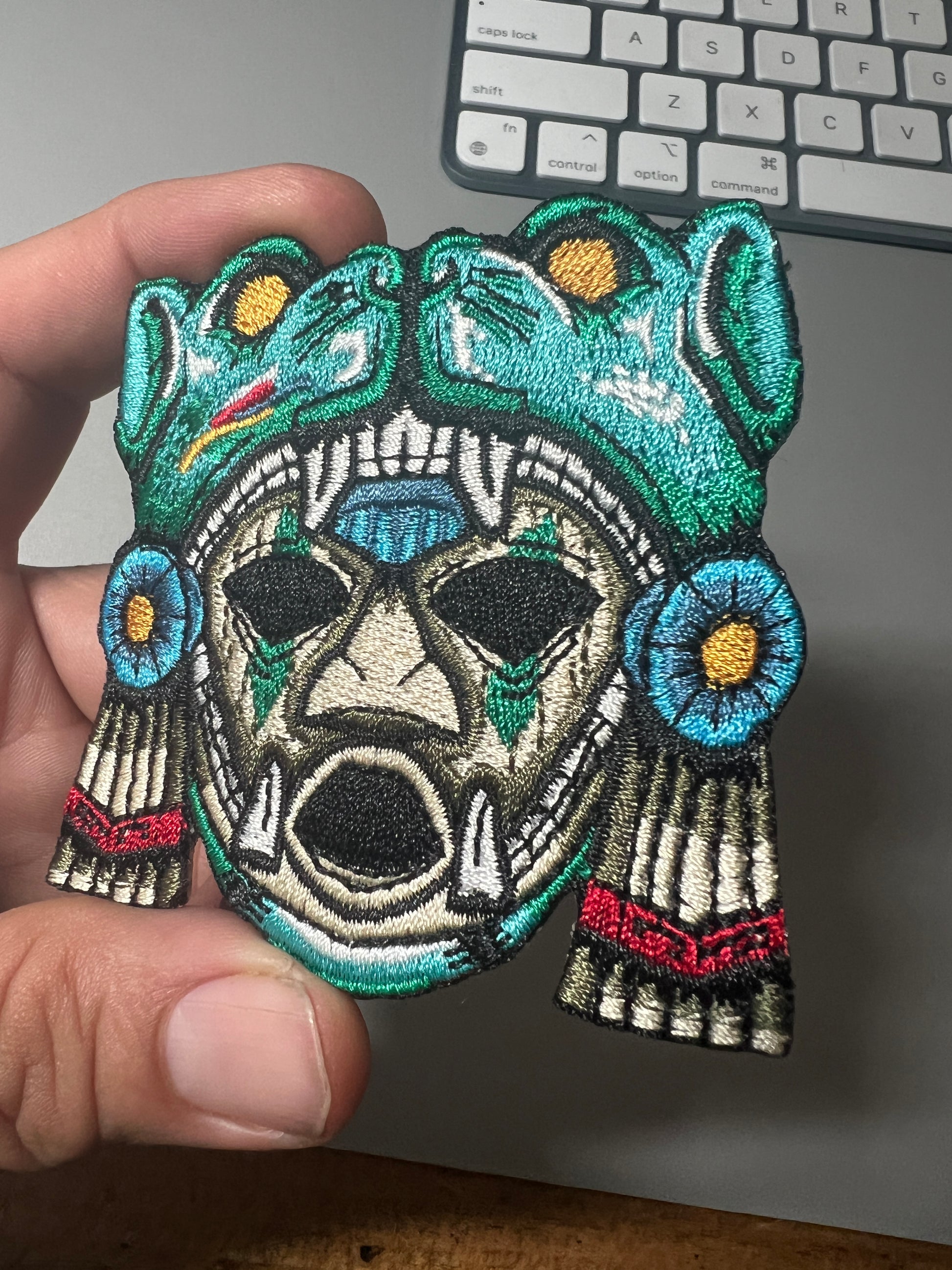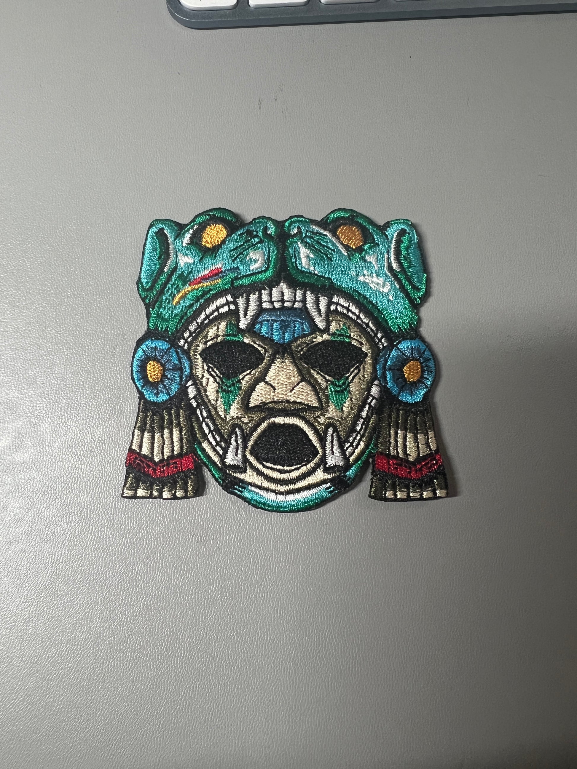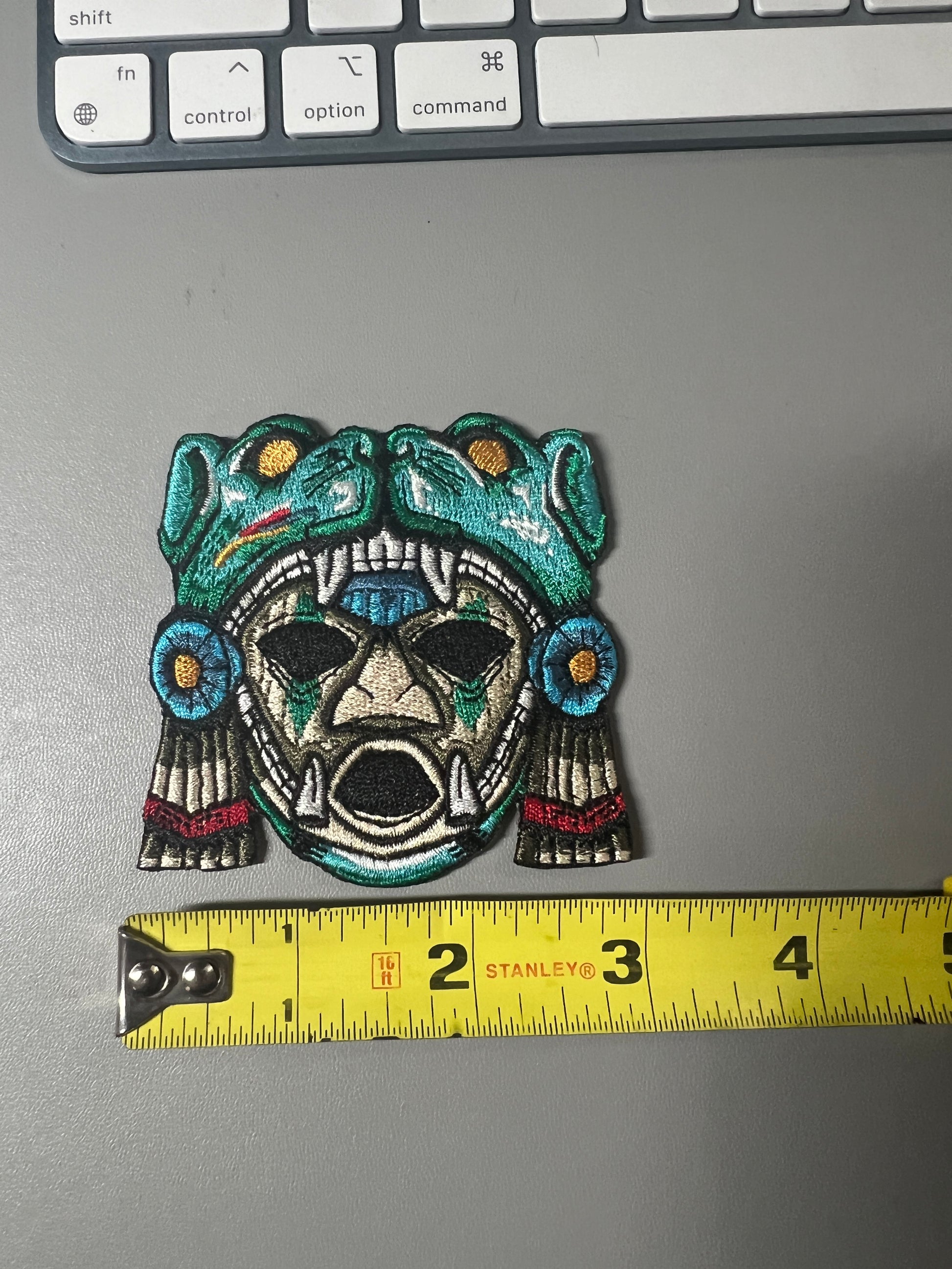 Aztec or Mayan Jaguar Warrior Patch, 3", Jaguar, Colorful, embroidered patches, Iron On (#23)