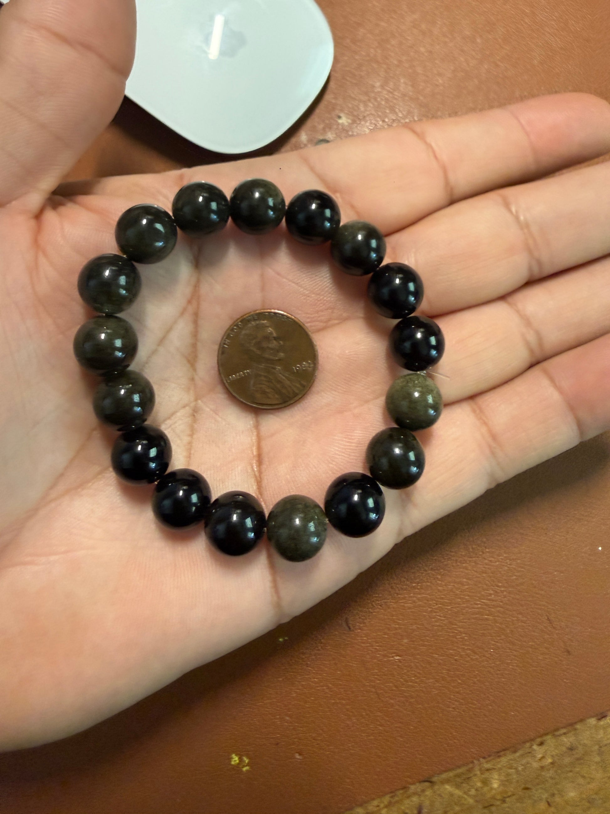 Black Golden Obsidian Stone Beaded Bracelet is a handmade piece of natural stone jewelry.