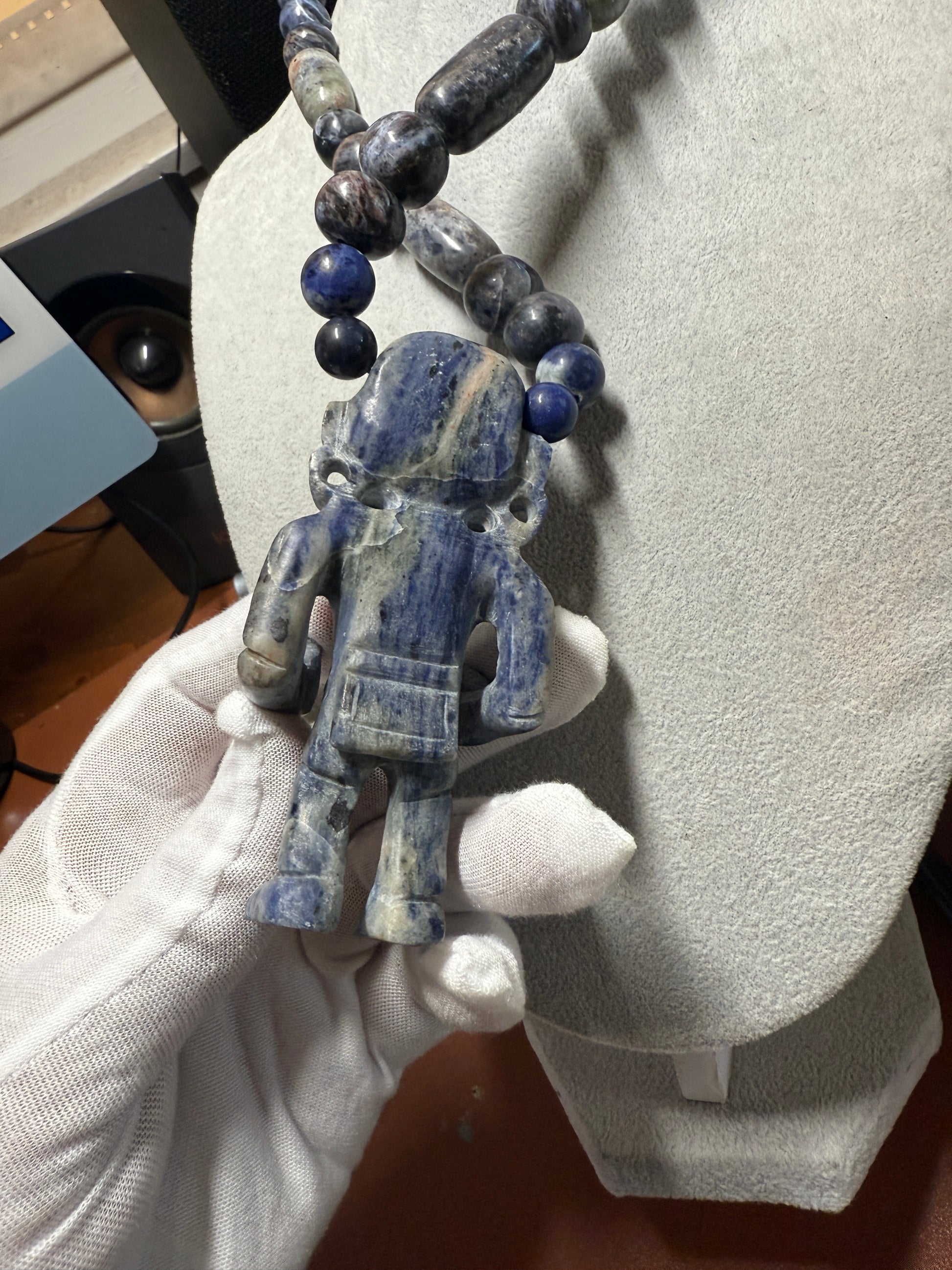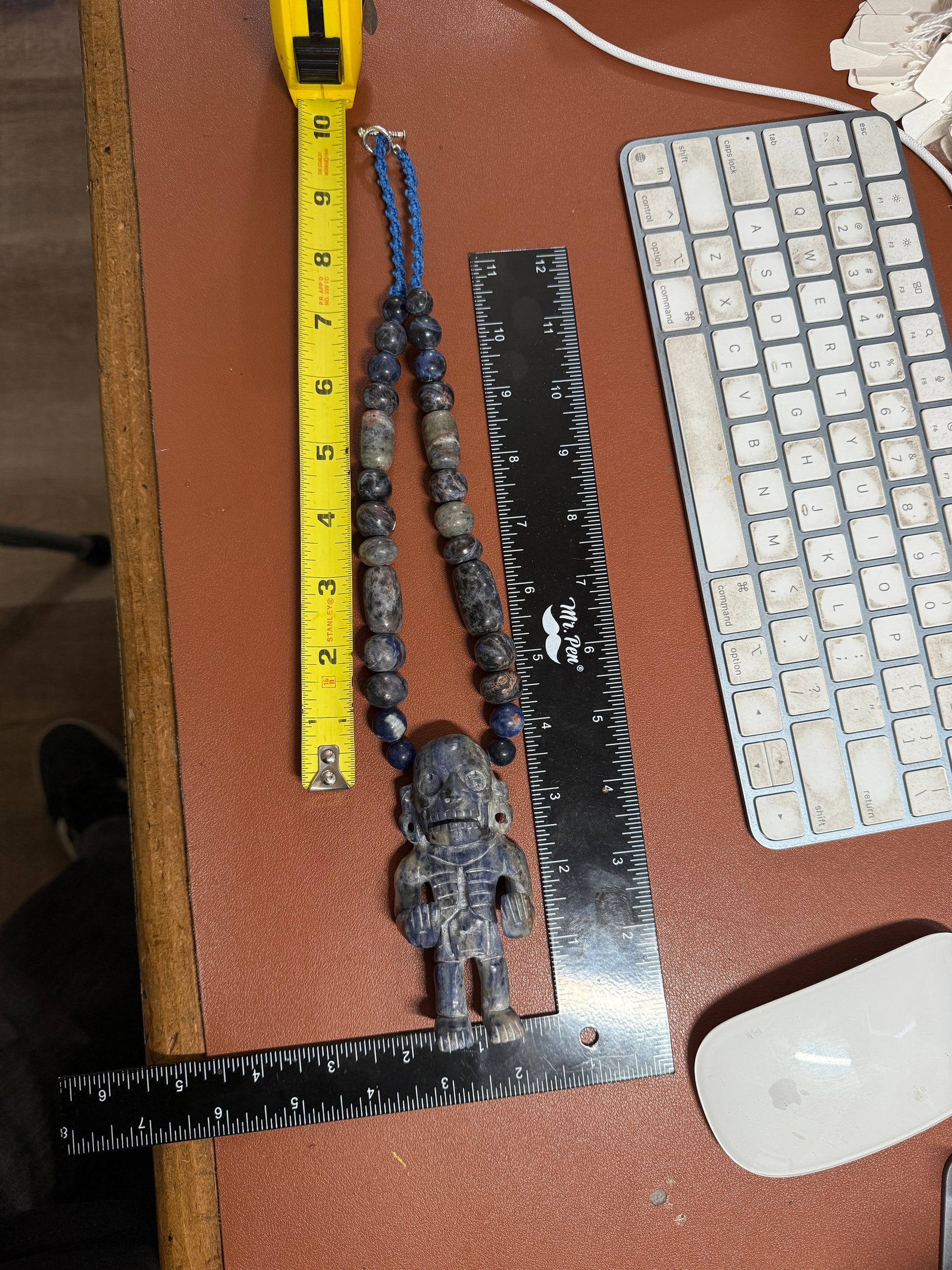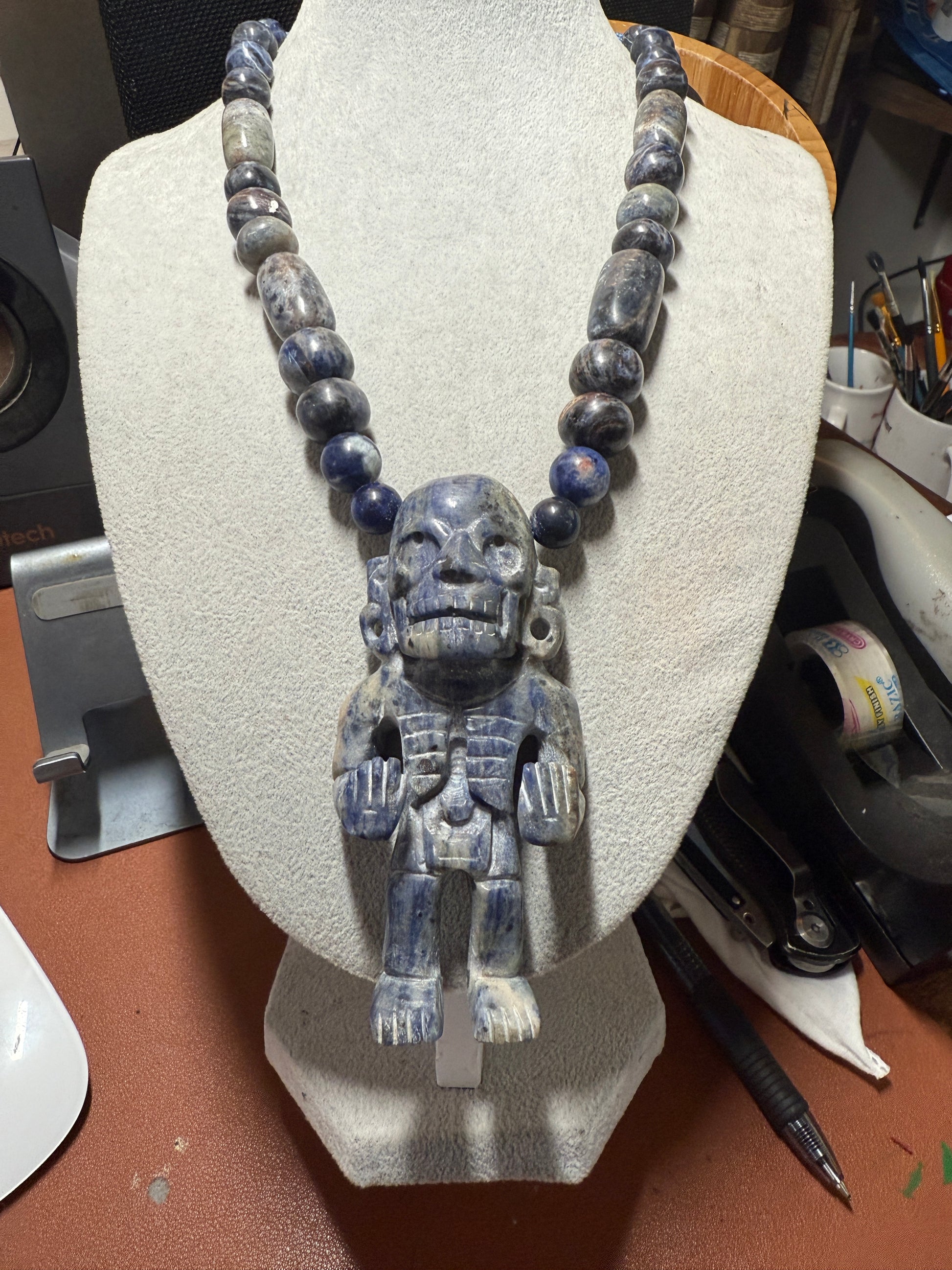 Blue Sodalite Mictlantecuhtli Statue Pendant Necklace Mexican Aztec #H