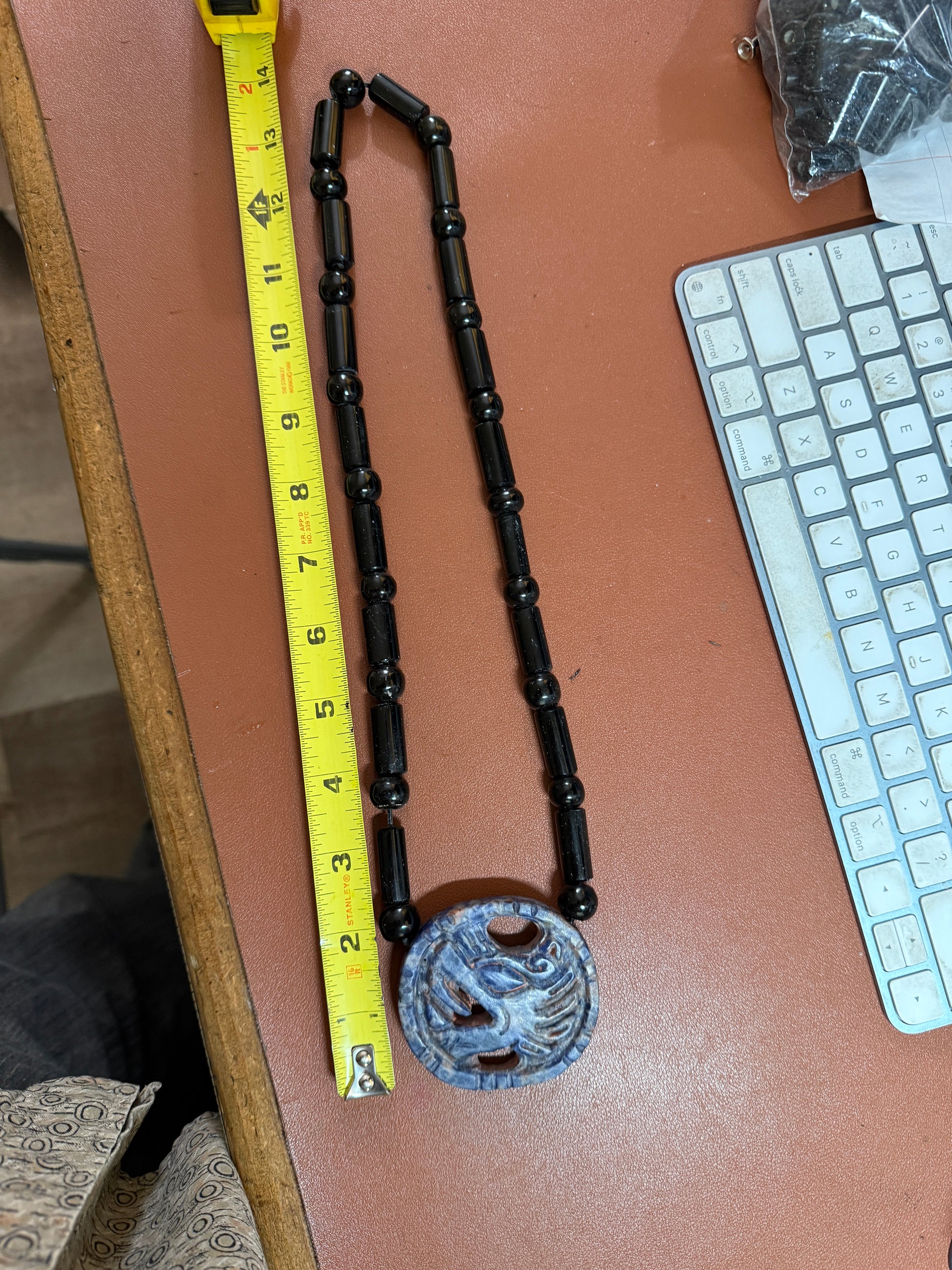 Blue Sodalite Quetzalcoatl Kukulkan Dragon Mexican Mexico Aztec with handmade obsidian beads. 24" long Necklace.