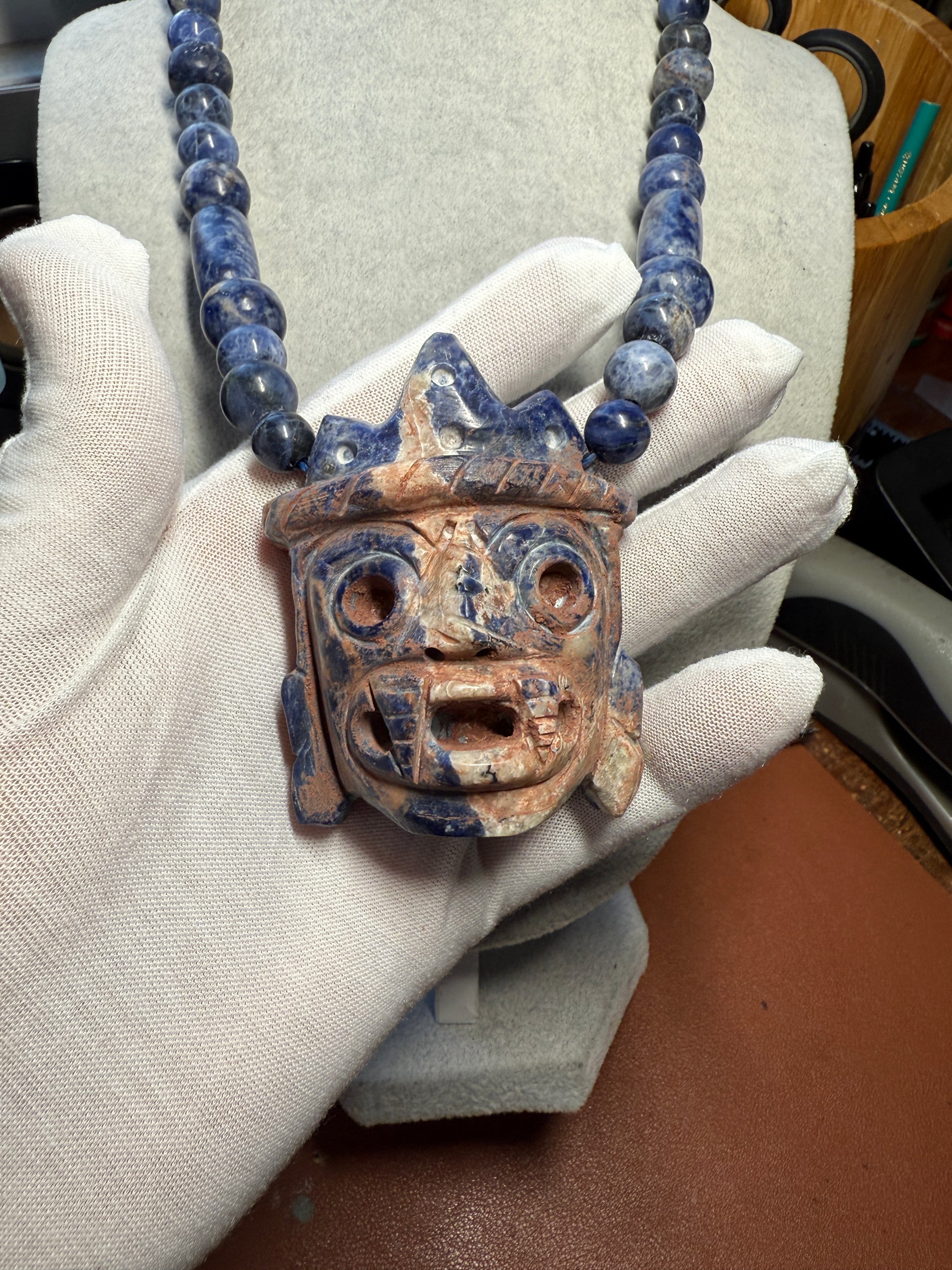 Blue Sodalite Tlaloc Pendant Necklace Mexican Aztec Mexico #H