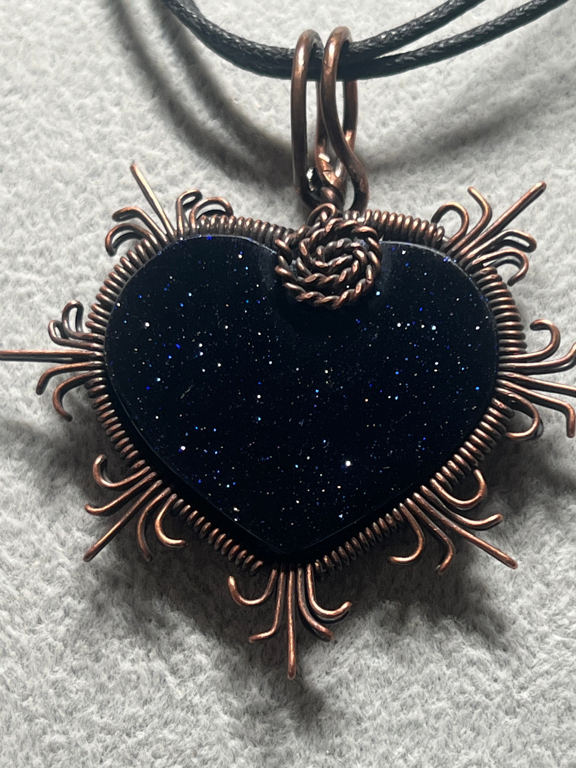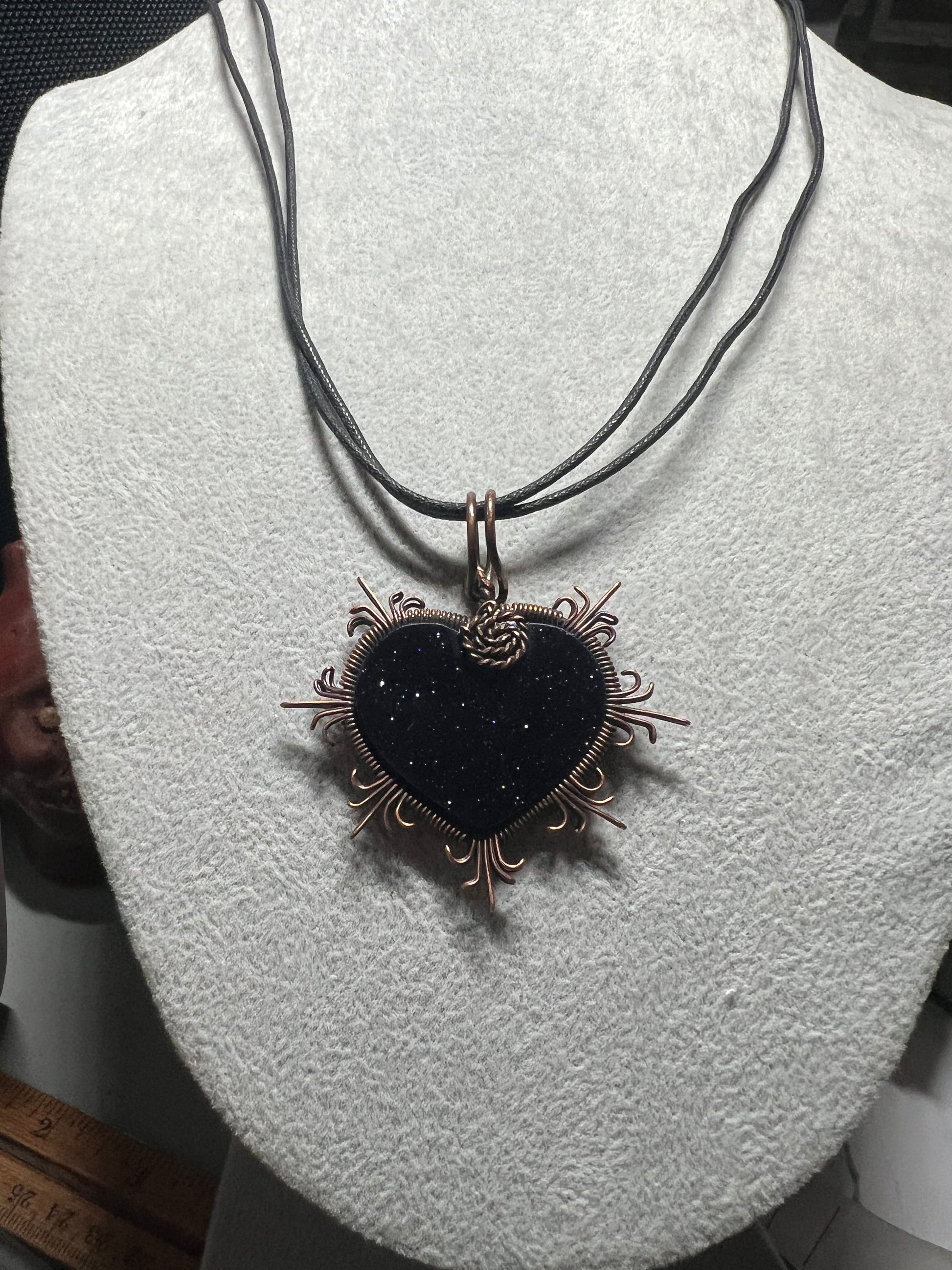Blue Sparkles Corazon Blue Aventurine Stone Azul Heart Aztec Mexica Maya, 1.75", adjustable, 2" Mexico (#16)