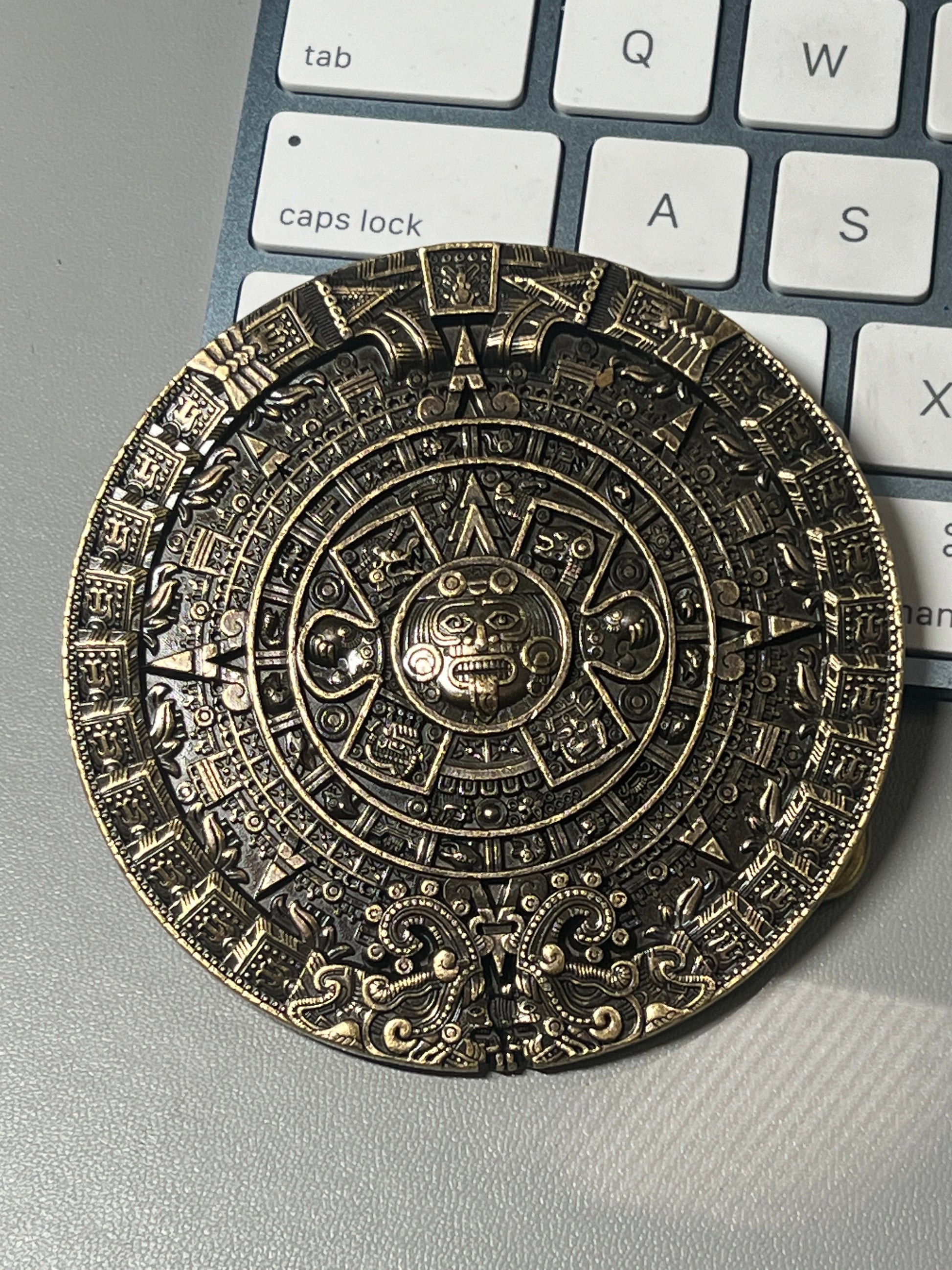 Bronze Aztec Calendar Belt Buckle, Mexican, Mexico, Azteca, 3" diameter, Solar Sun Stone Calendario #19