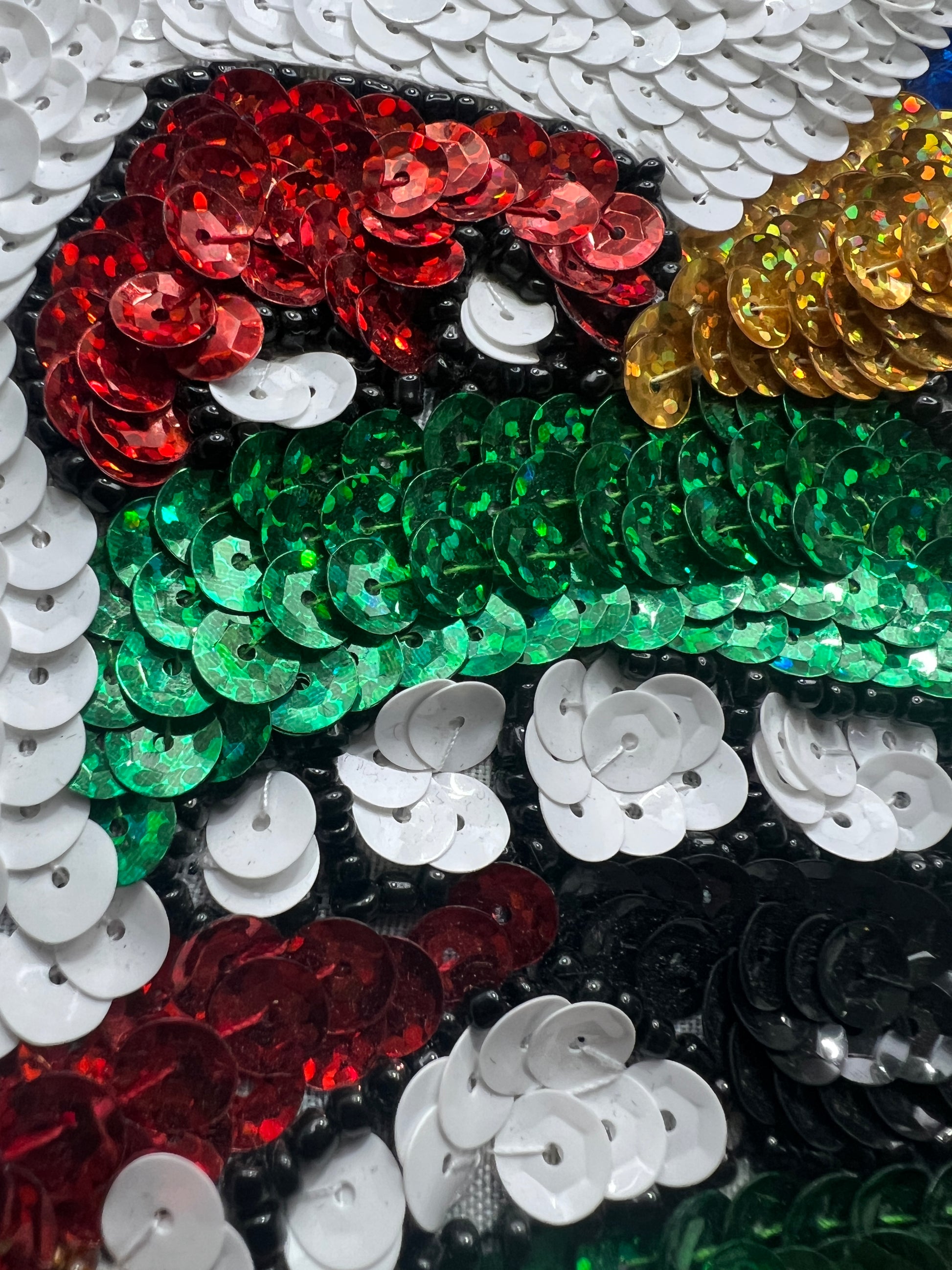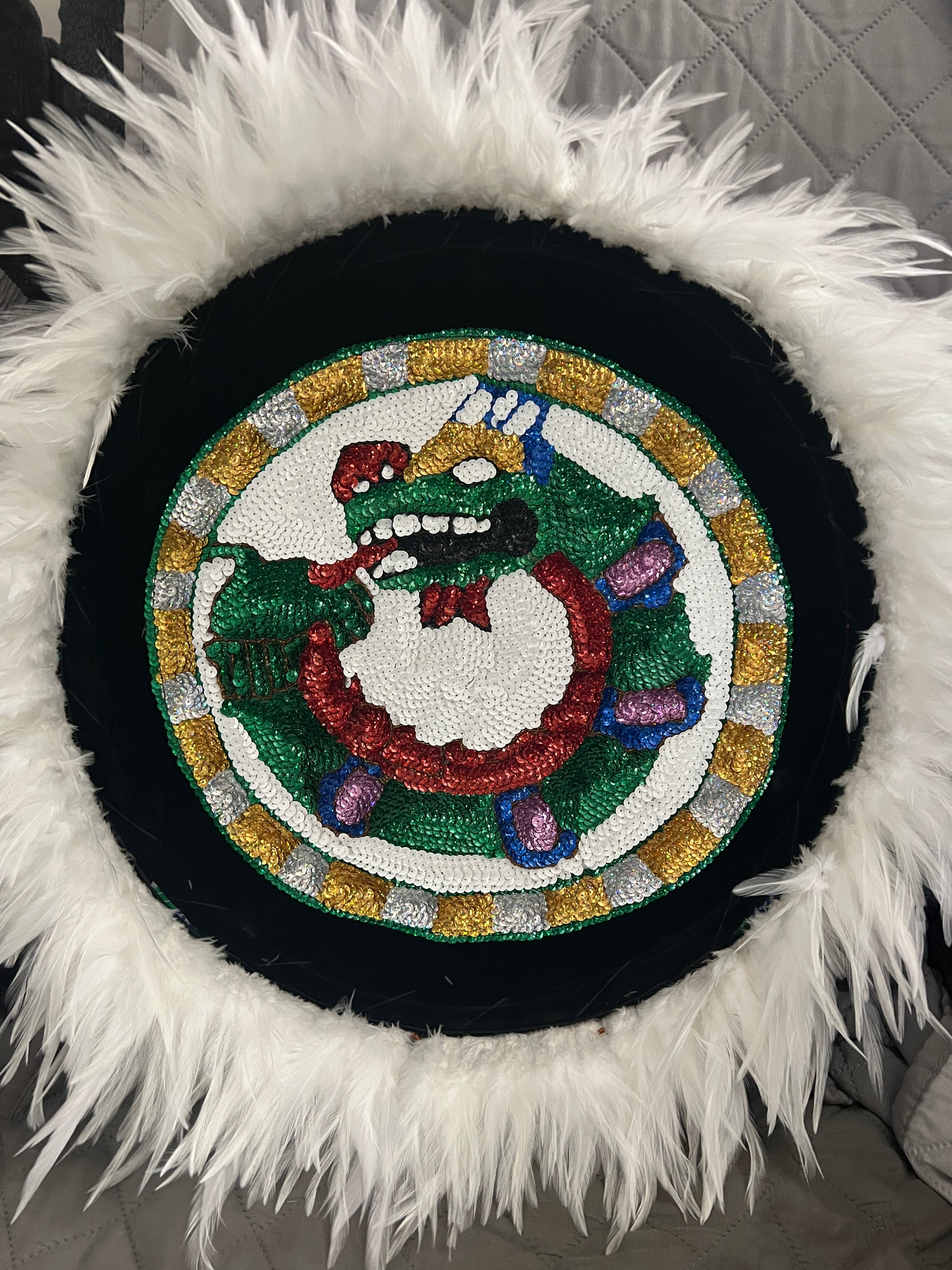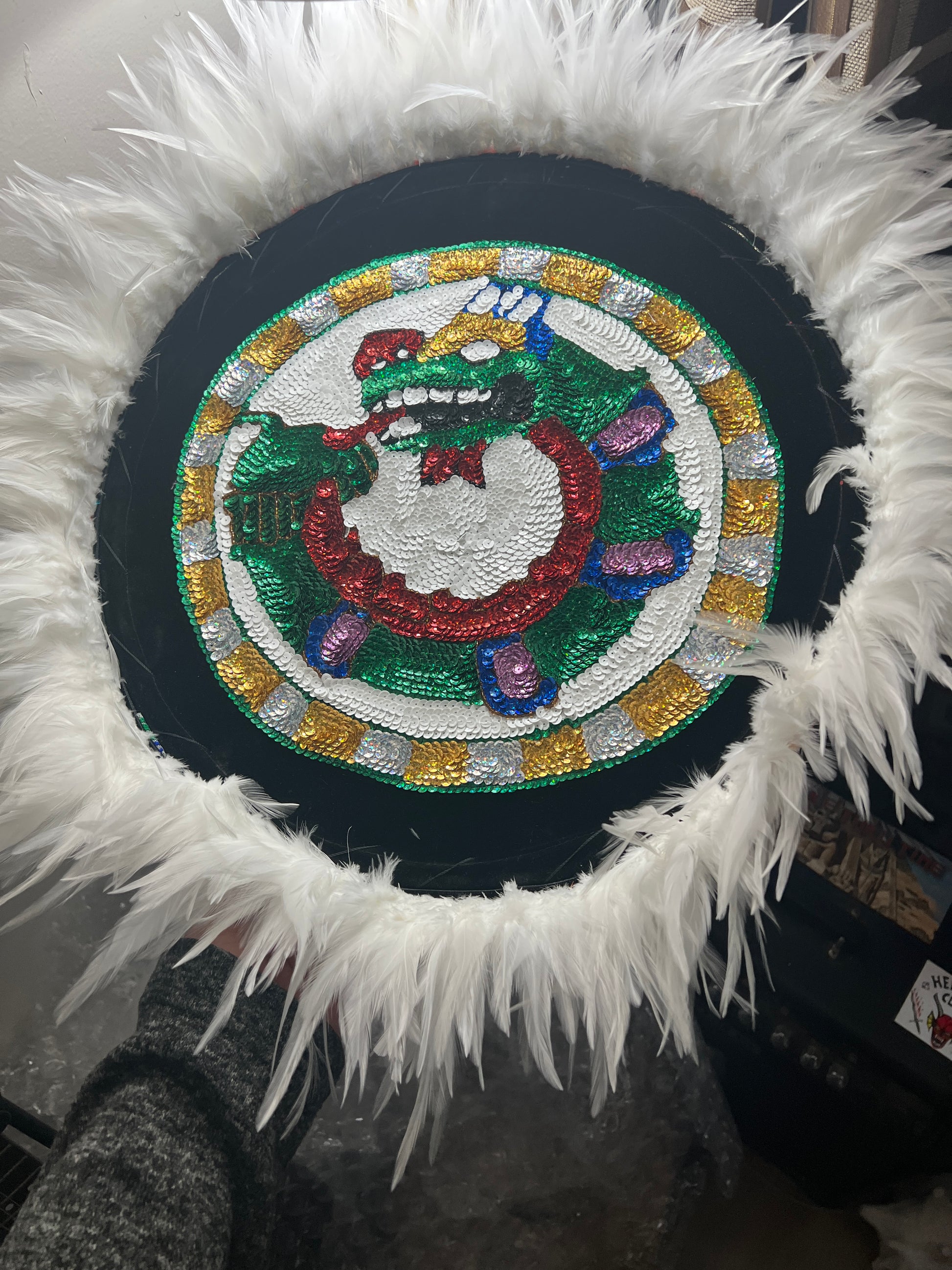 Chimalli Quetzalcoatl Azteca Danza Shield, Embroidered, Sequins, Kukulkan Mayan Plumed Serpent, Feathered Serpent Pow Wow, Mitotoliztli