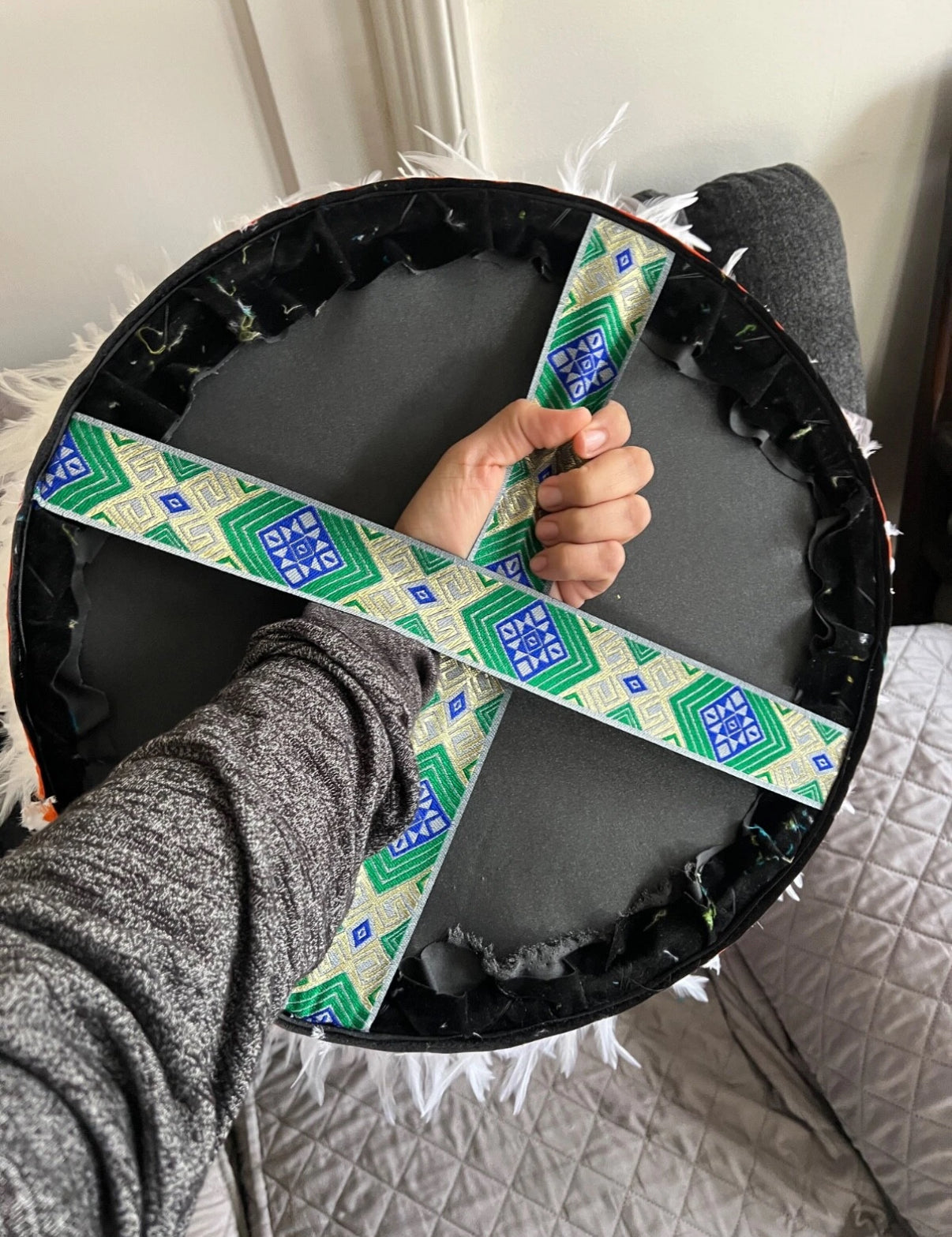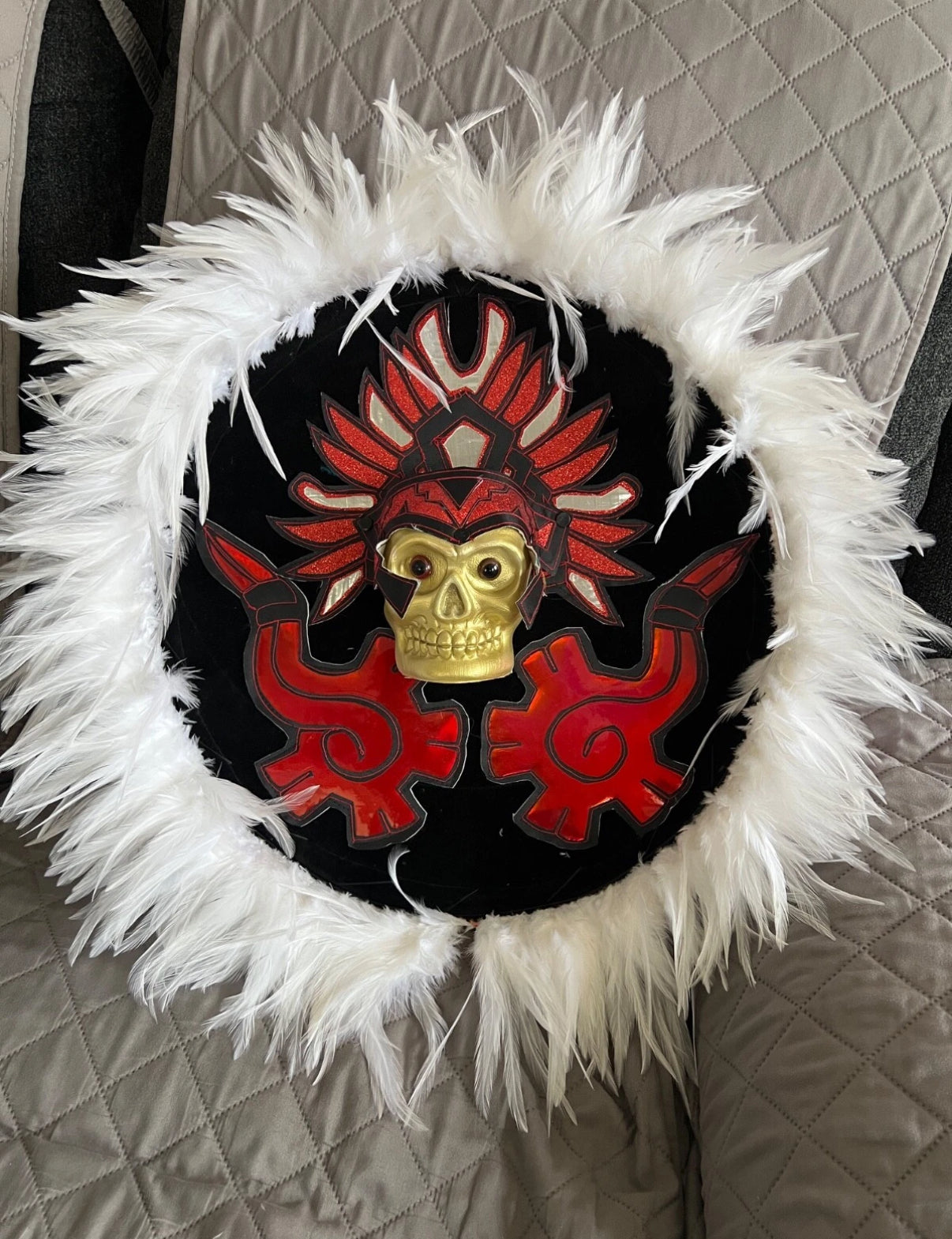 Danzante Azteca Mictlantecuhtli Shield, Chimalli, Black Red, Aztec Dance Shield, Aztec Skull, Mexica, Pow Wow, Indigenous Feathers, 17"