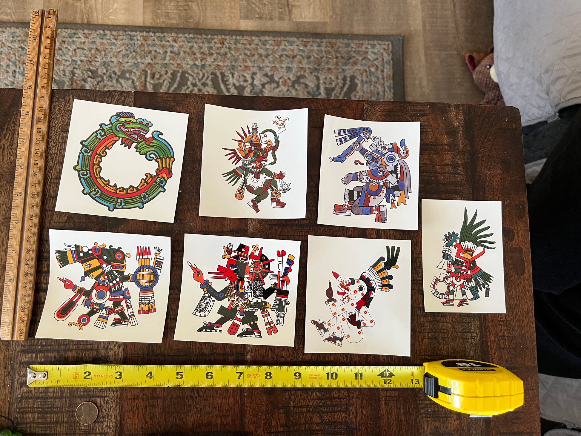 Set of 7, Decals Aztec God Stickers, Vinyl, 4" Azteca, Mexica, Mexico (#30)