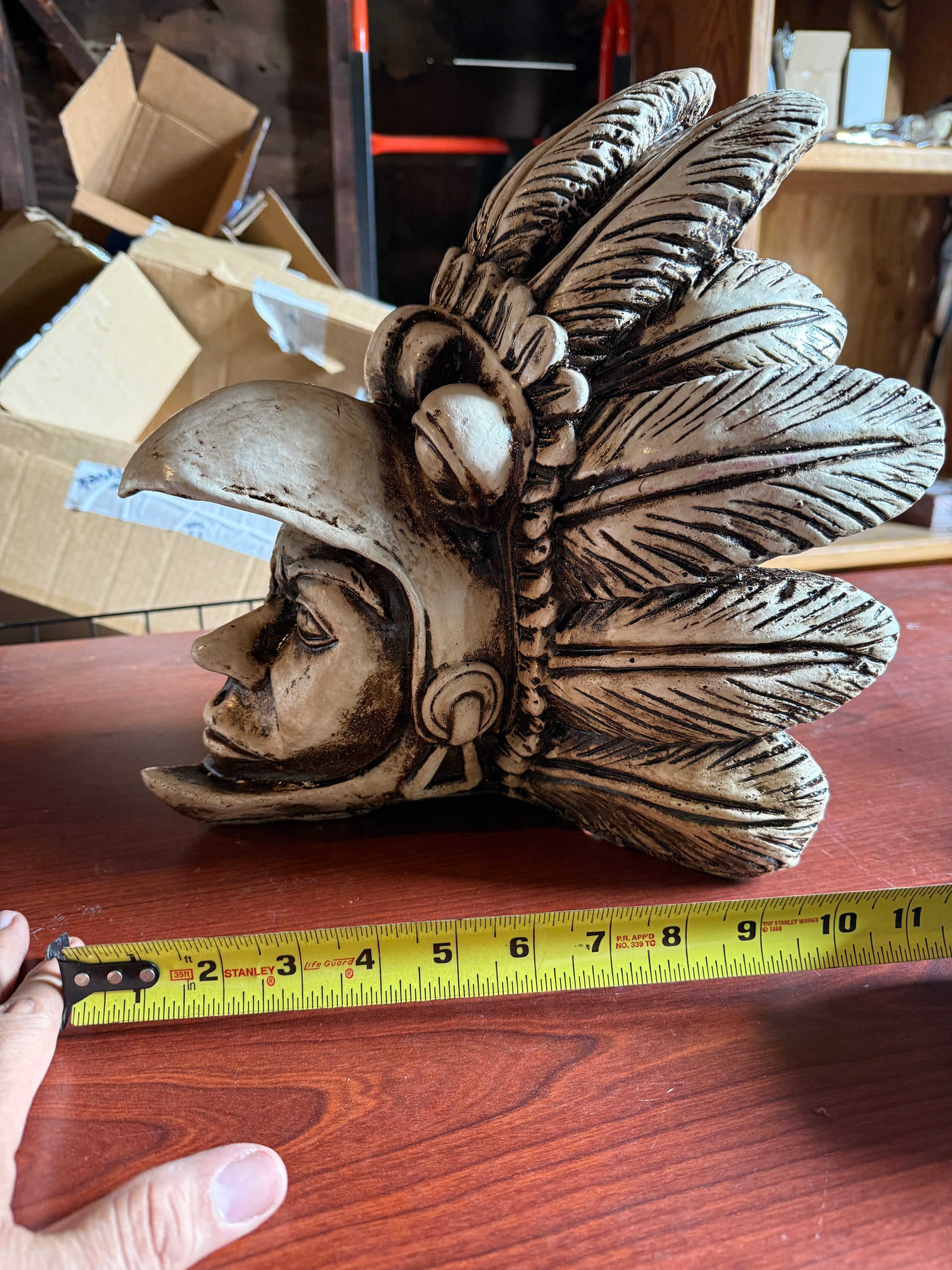Eagle Skull Warrior Mayan or Aztec Statue, Mexica Warrior, aprox. 12.5", Clay