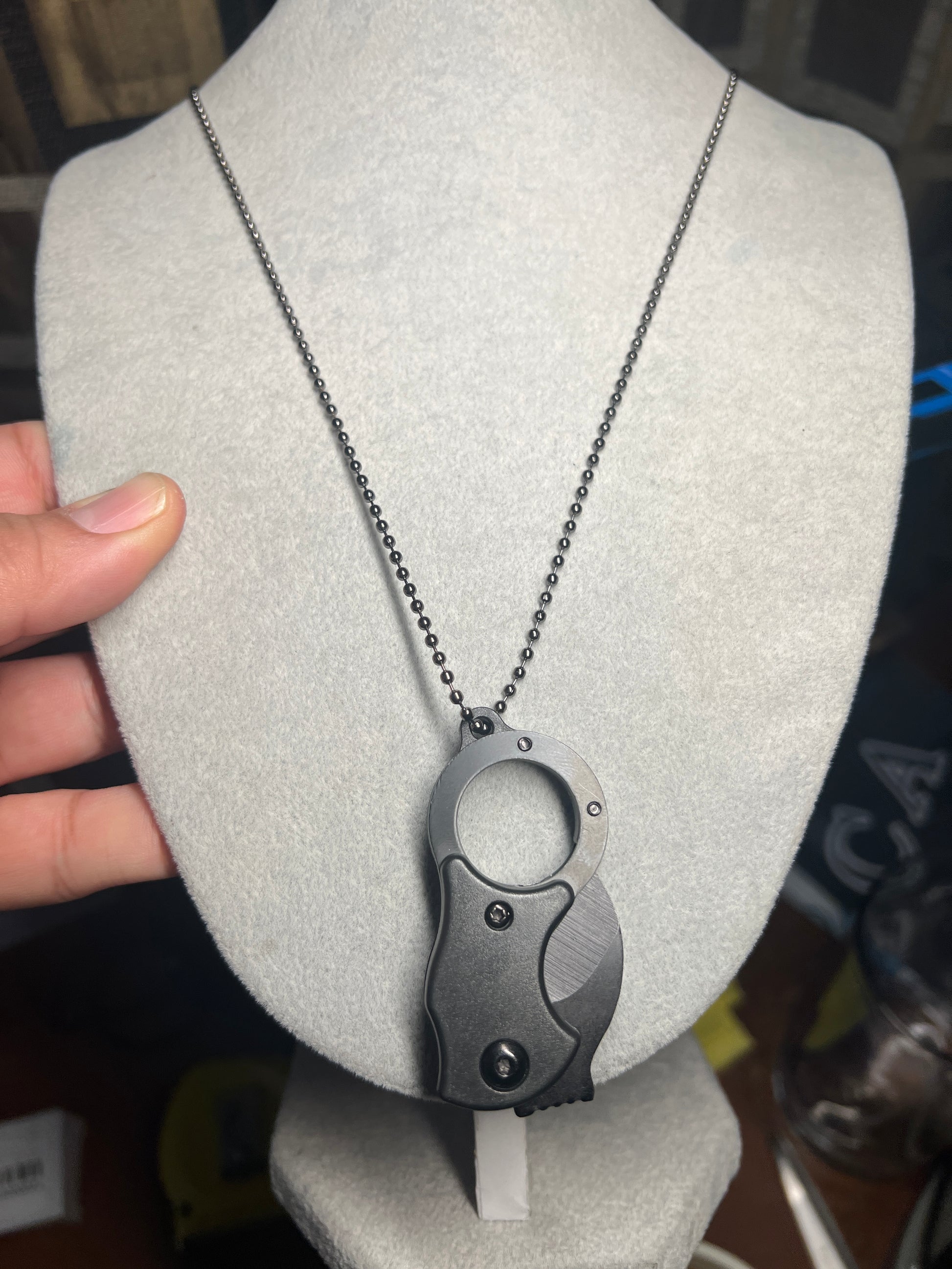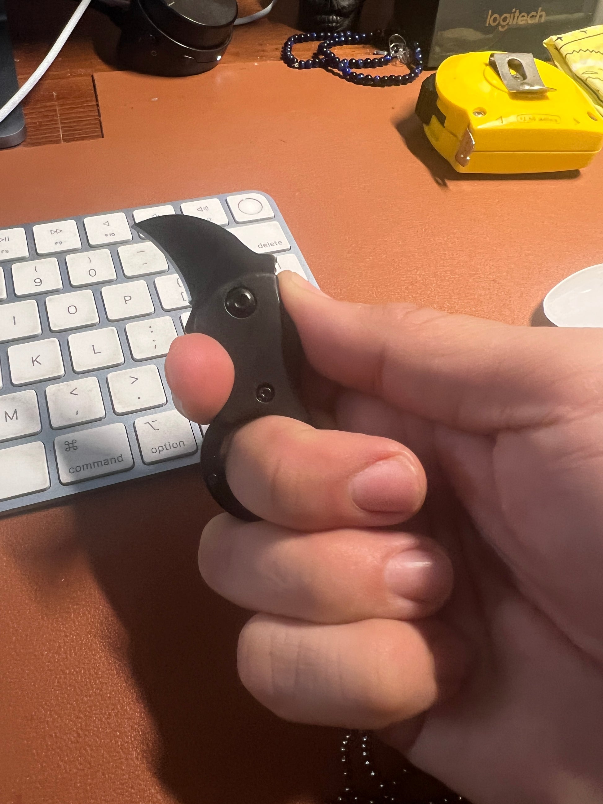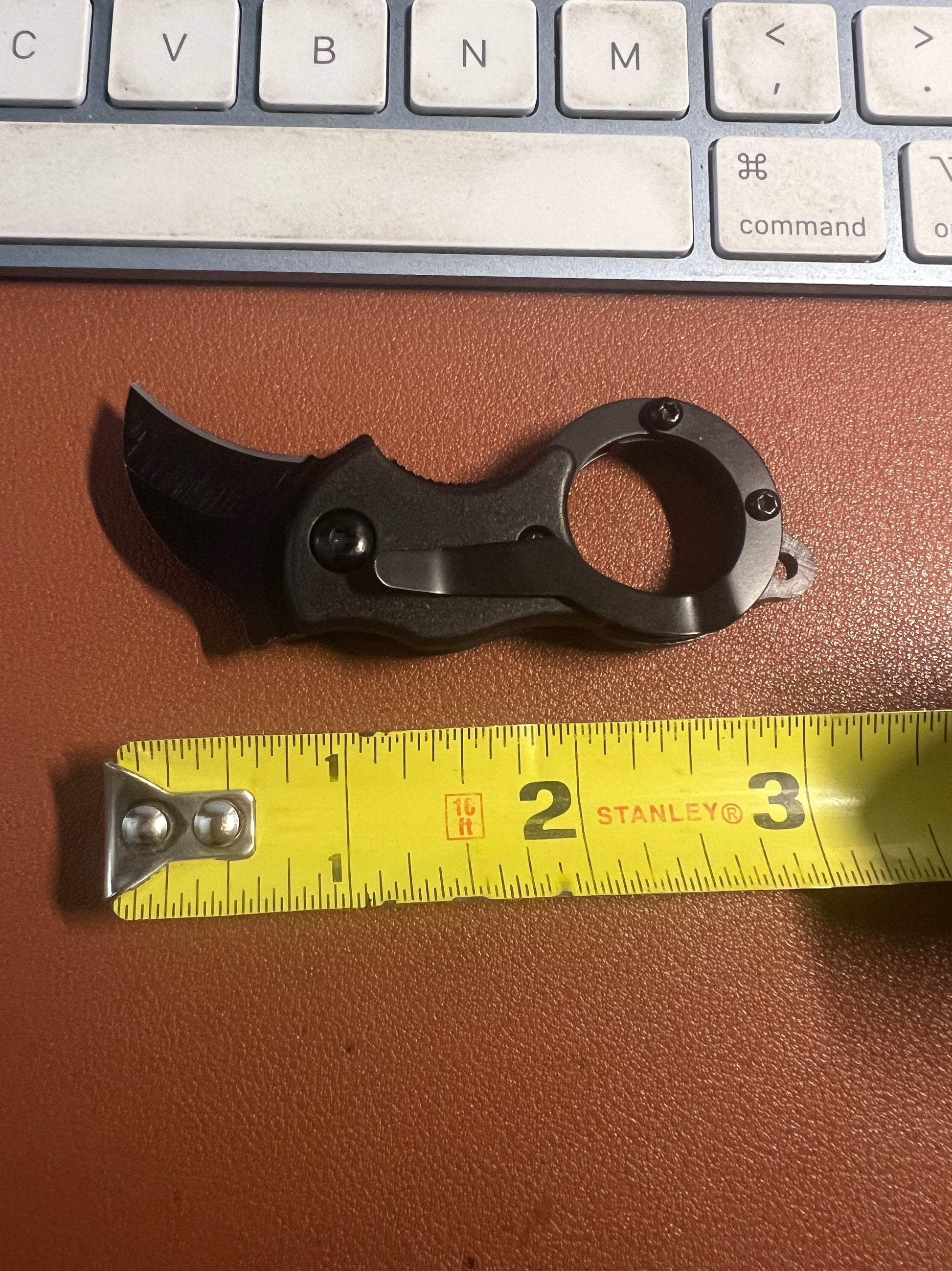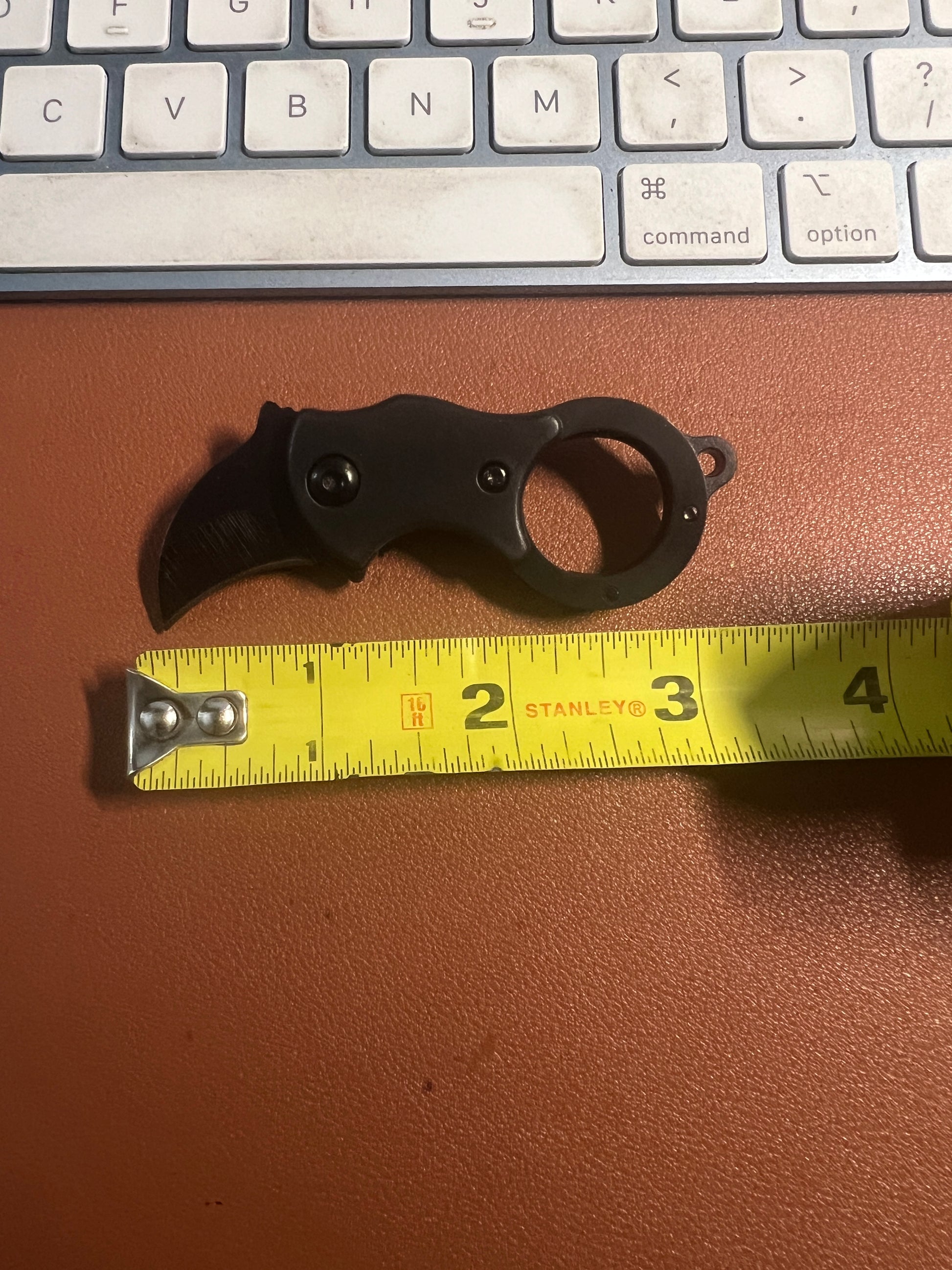 Locking Blade, finger holes for grip, 3" long opened, 1" blade.