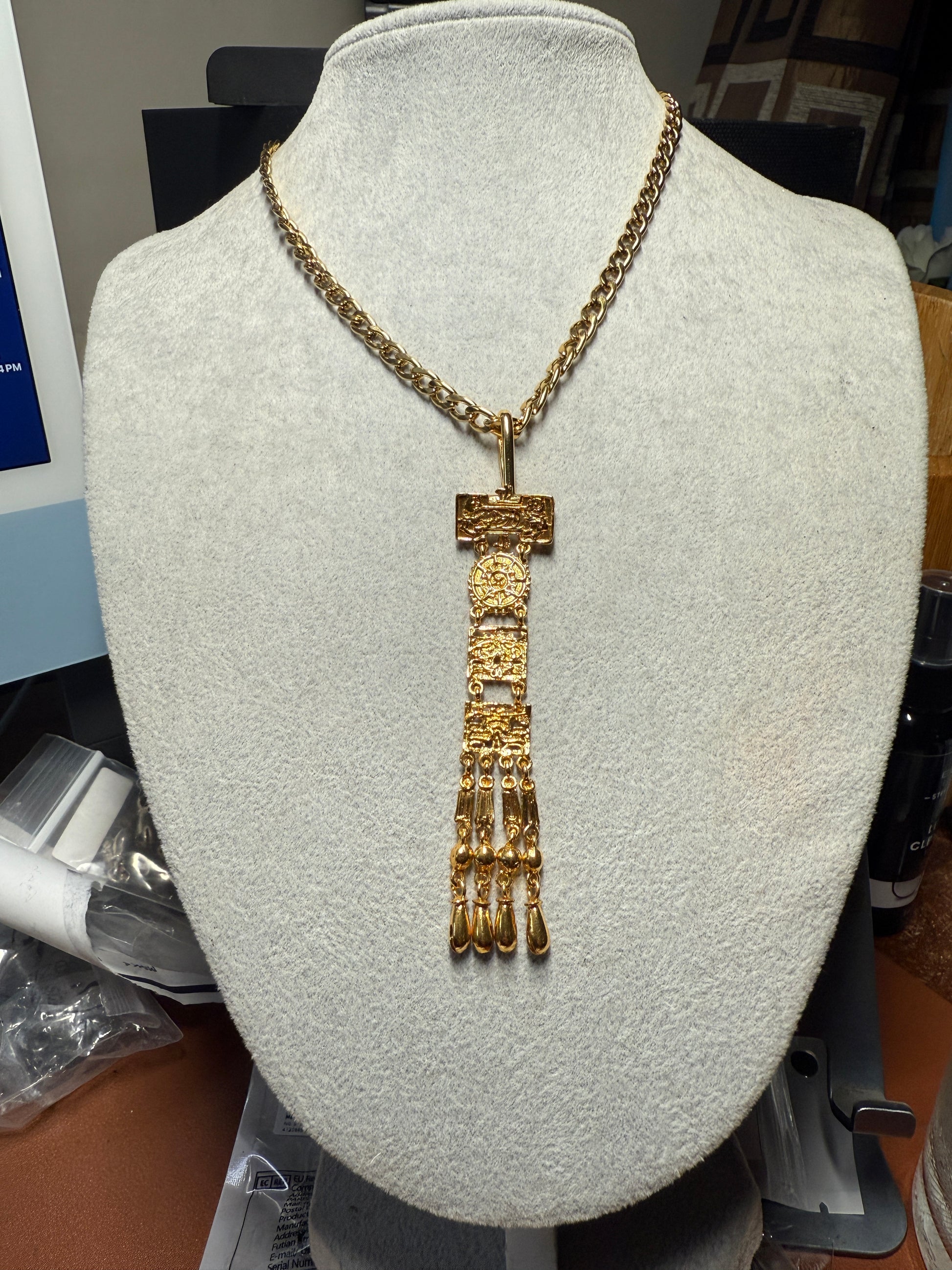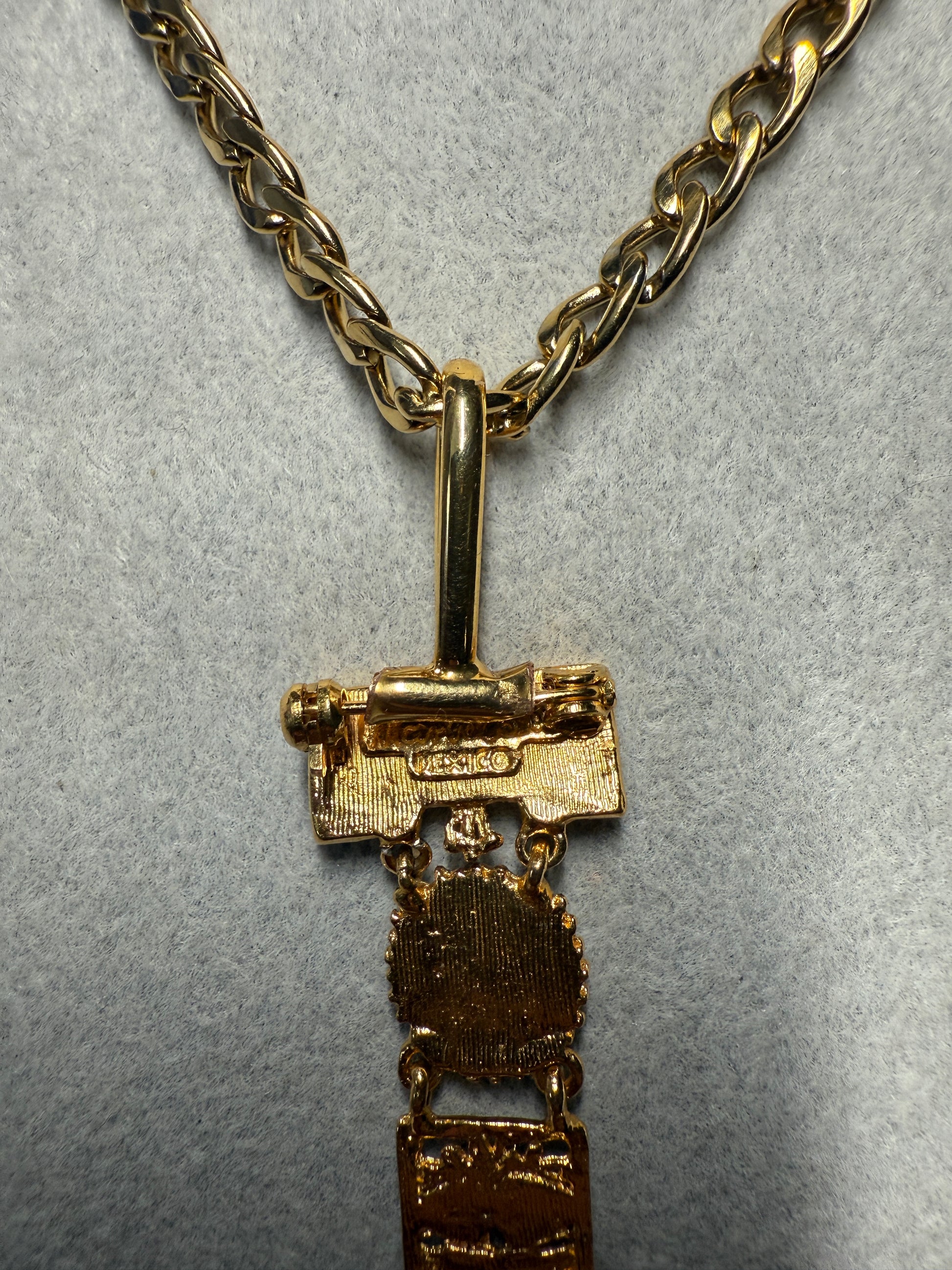 Rare Vintage Aztec Necklace/Pin Brooch, by Salvador Teran for Marbel SA Mexico 1950s Gold plated alloy