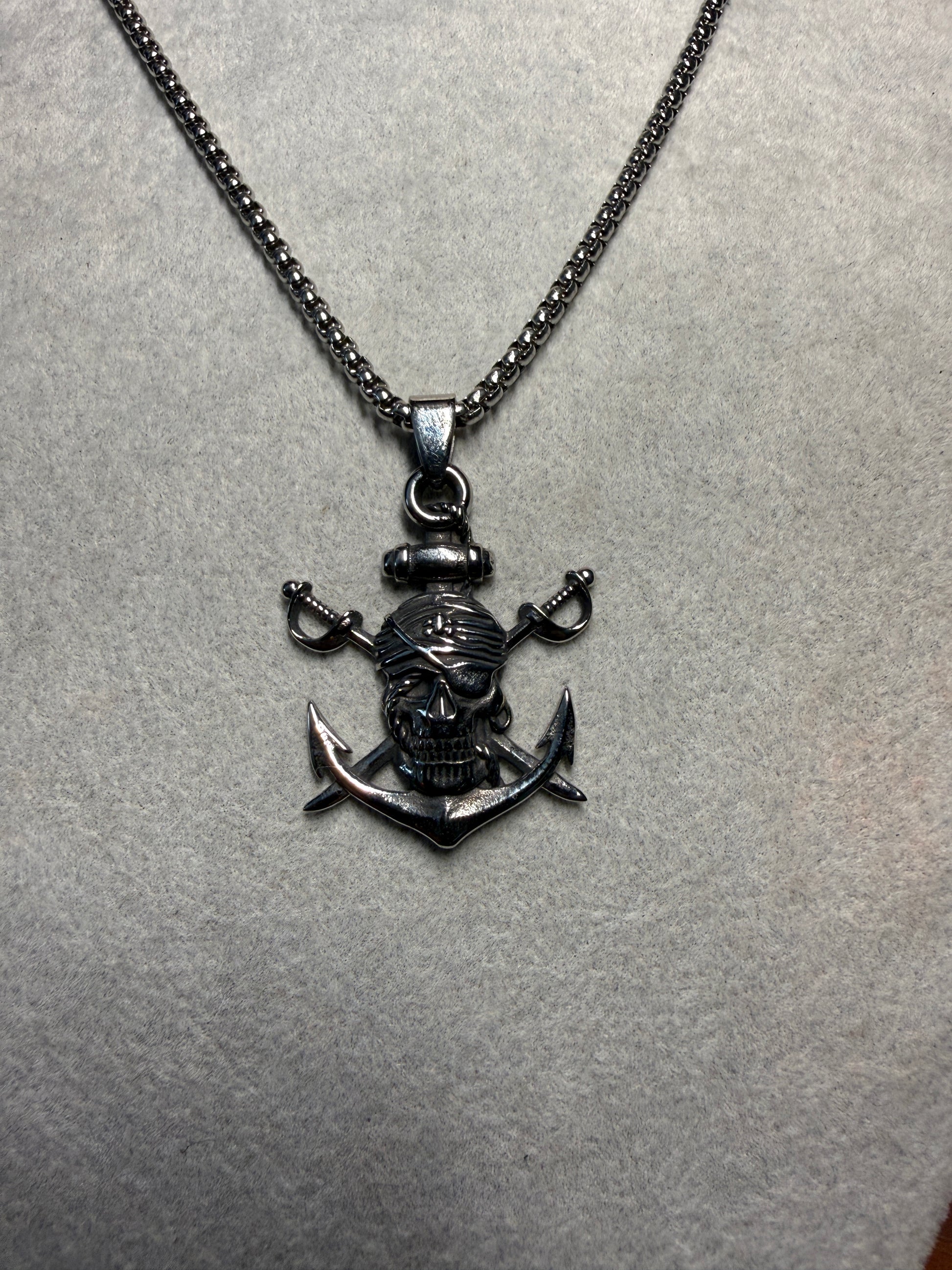 Pirate Pendant, Pirates Of The Caribbean Necklace, Anchor, Swords, Eye Patch #8