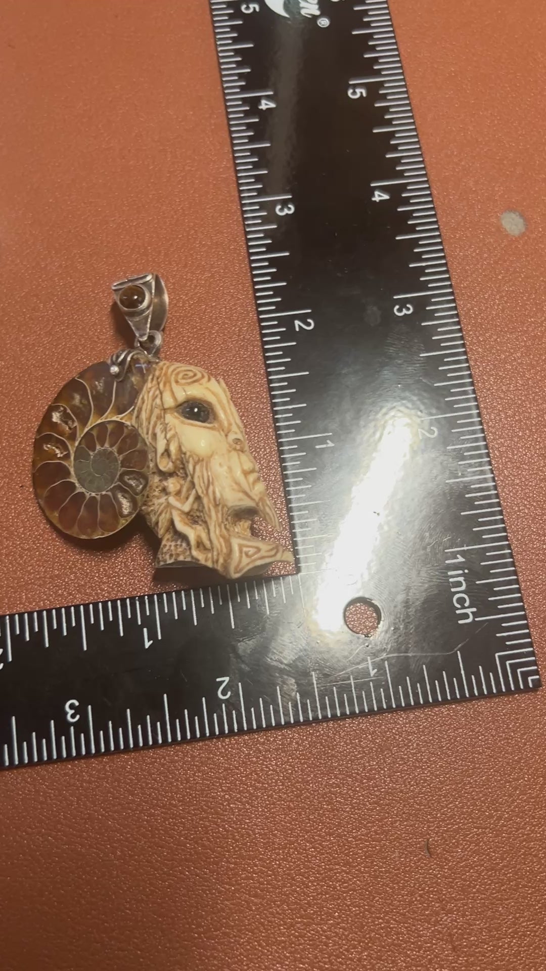 Fauna Hand Eye Pendant Deer Antler Ammonite Fossil Silver Bail Pans Labyrinth