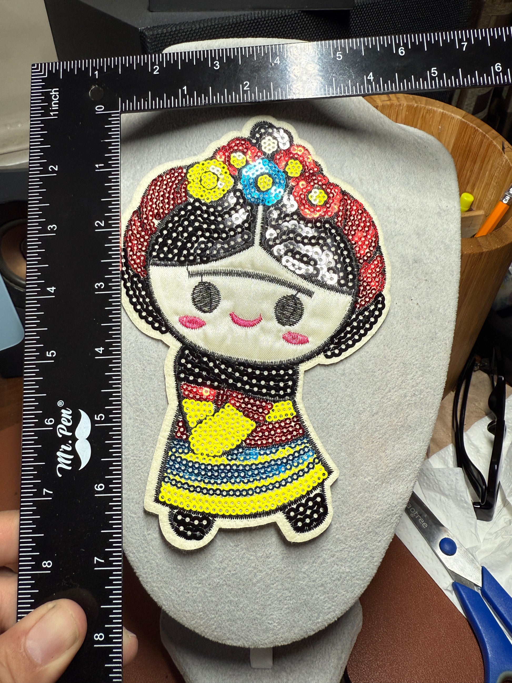 Frida Revolutionary Patch, Lady, Girl, Unibrow, iron on patches, Sequins, Mexican #21