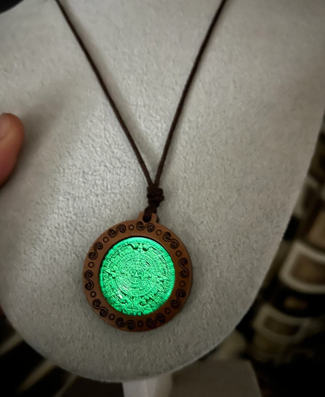 Glow In The Dark Aztec Calendar Pendant, Mexica, Mexico, Mexican, Adjustable, Calendario Azteca, Indigenous, Tonatiuh, Sun Sol Face (#15)