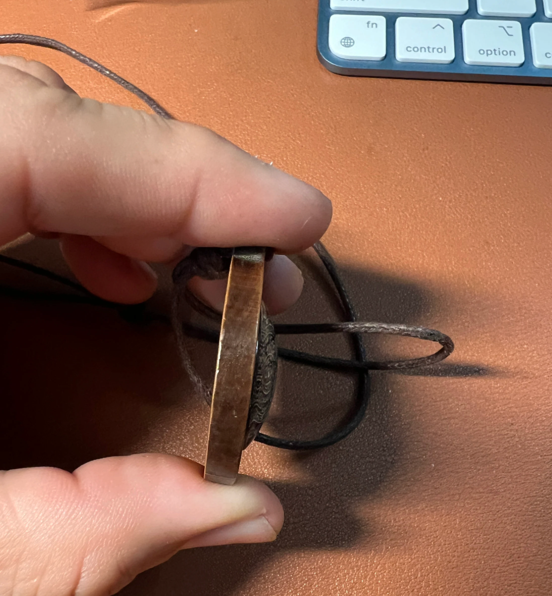 Pendant is 1 1/2", draw string necklace is adjustable.