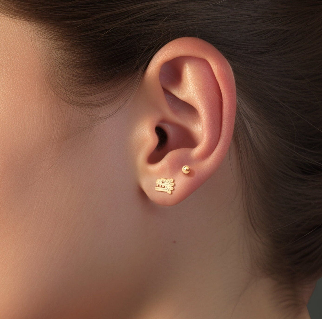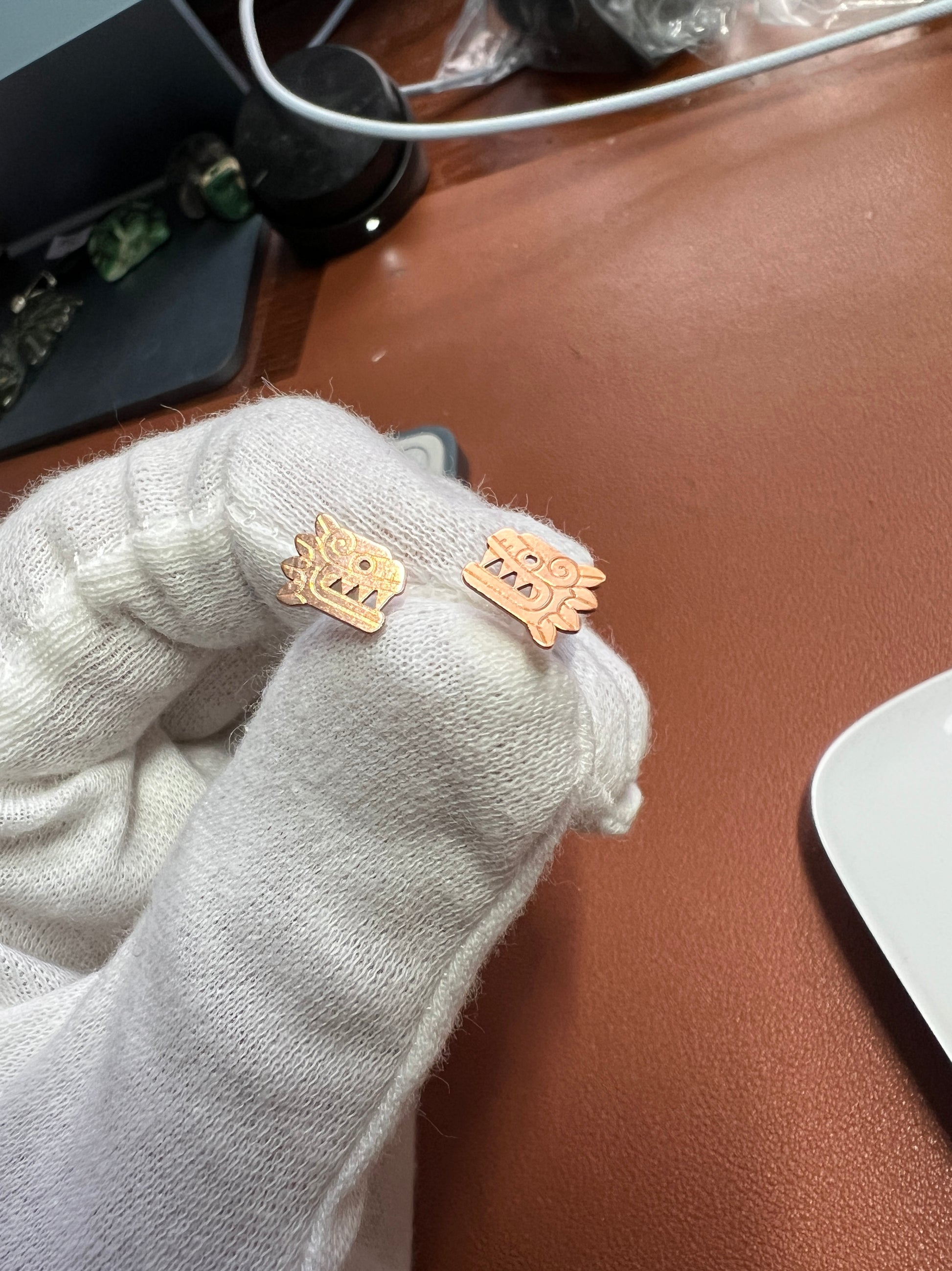 Quetzalcoatl Earrings, Dainty Mexican Earrings, Mayan Kukulkan Earrings, Sterling Silver, or Rose Gold Earrings, Handmade Jewelry, Aztec Dragon Earrings