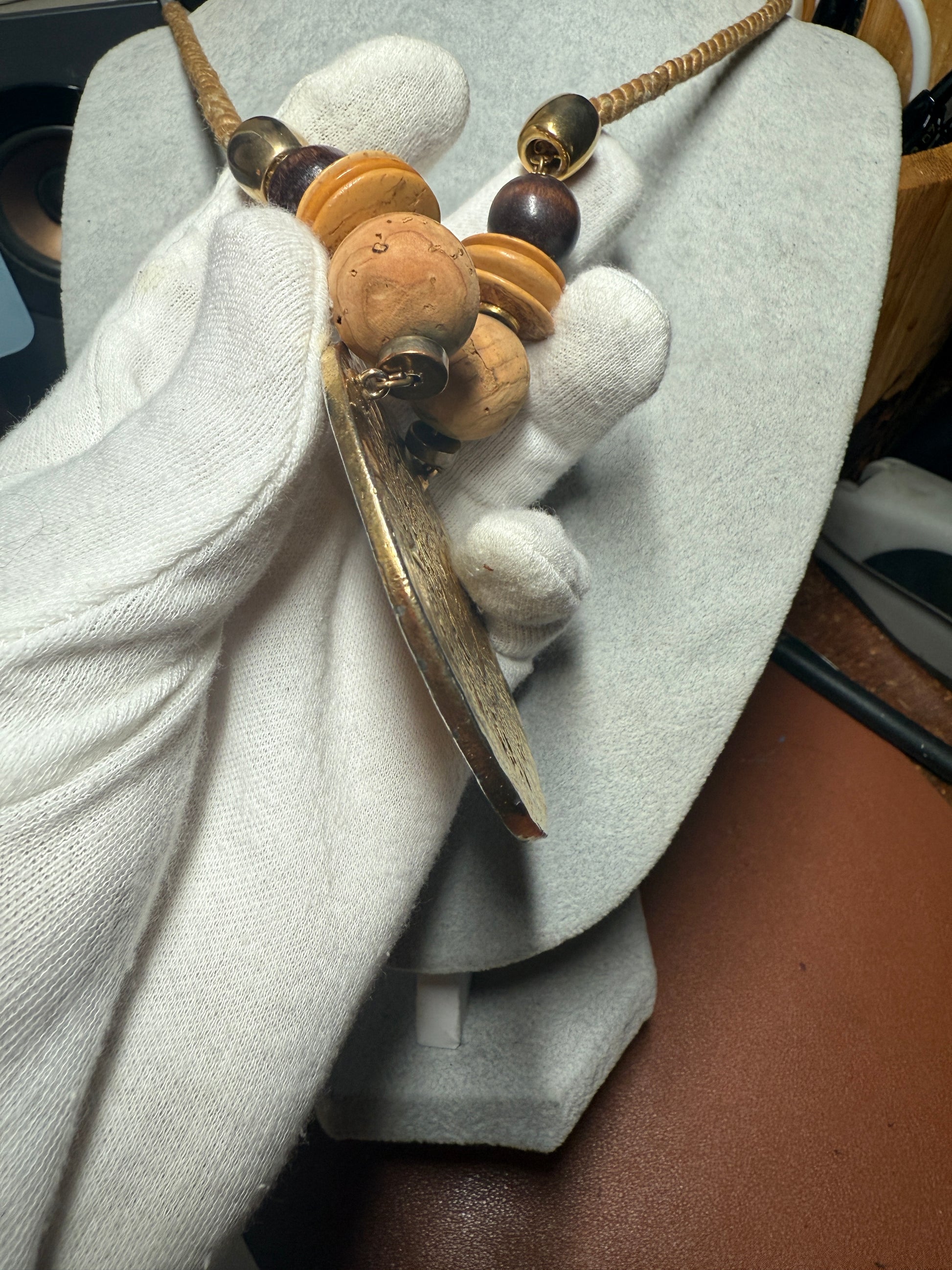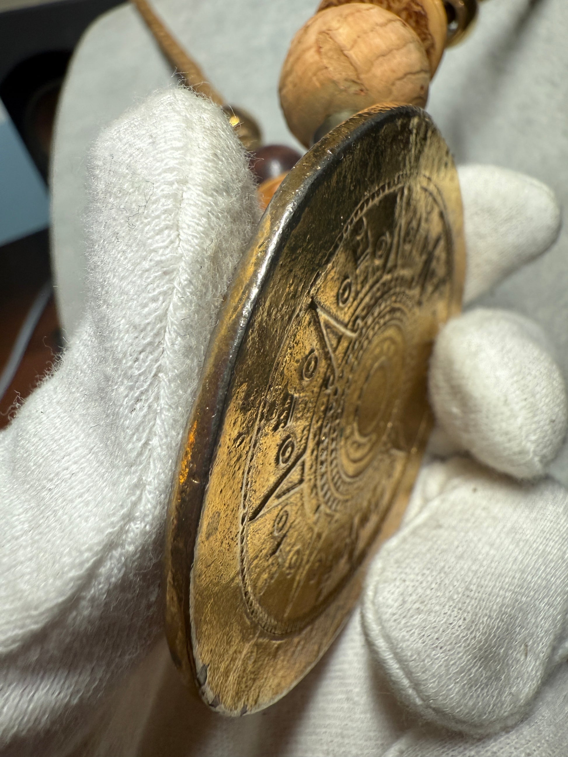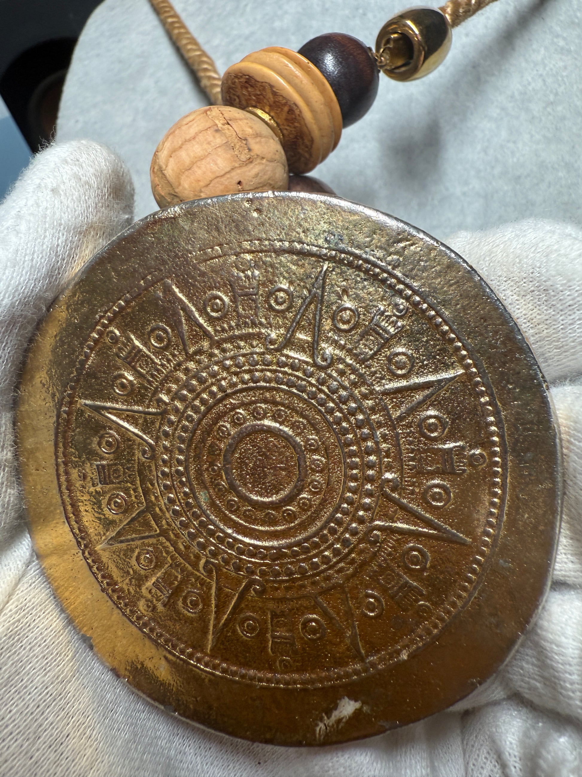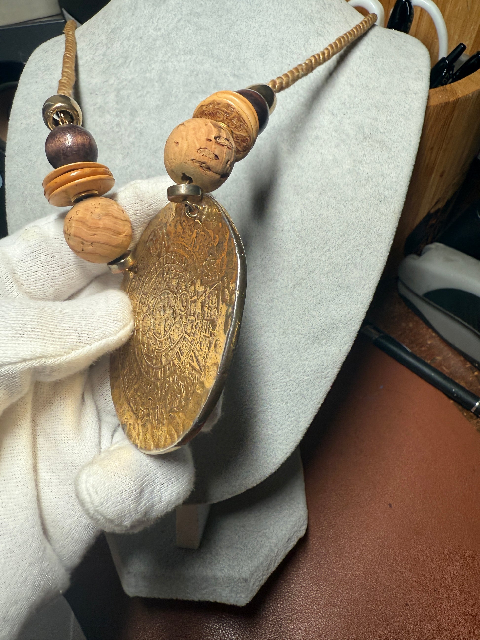 Gold Plated Aztec Calendar Pendant Medallion Necklace, Vintage, Handmade