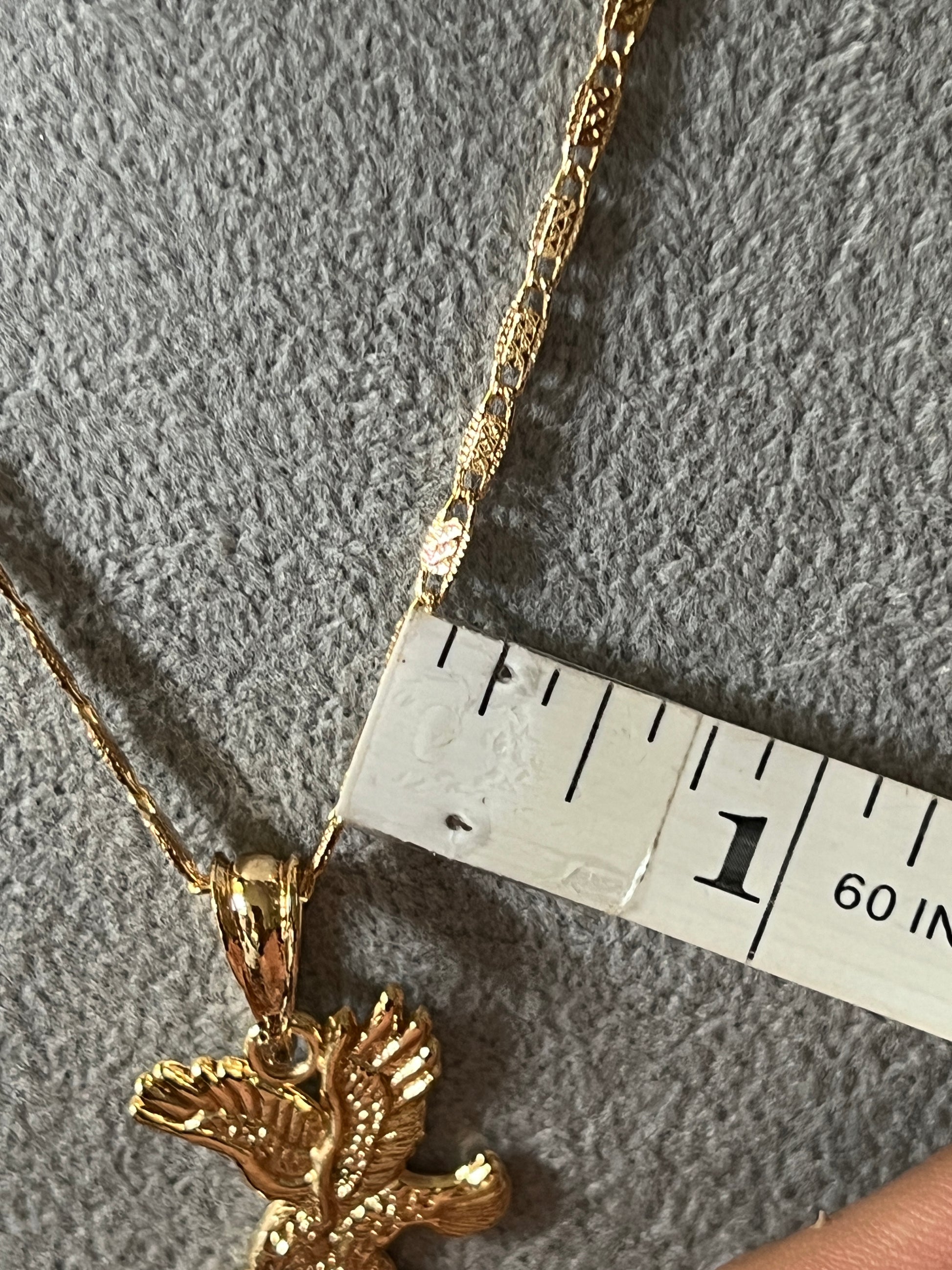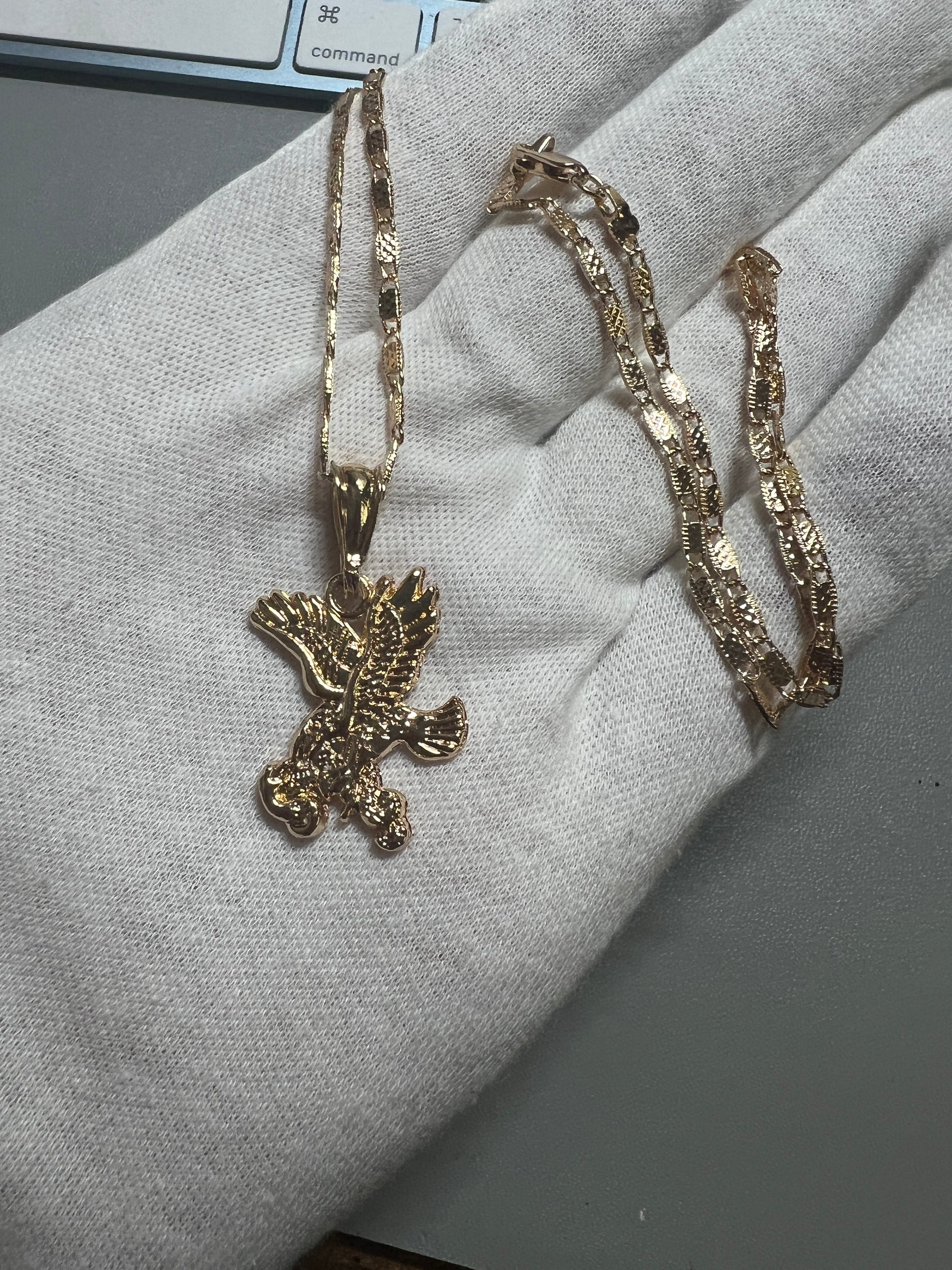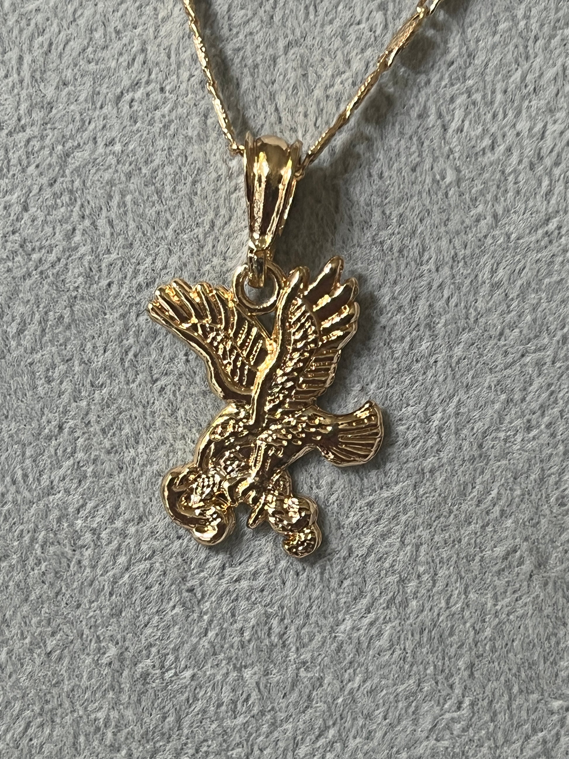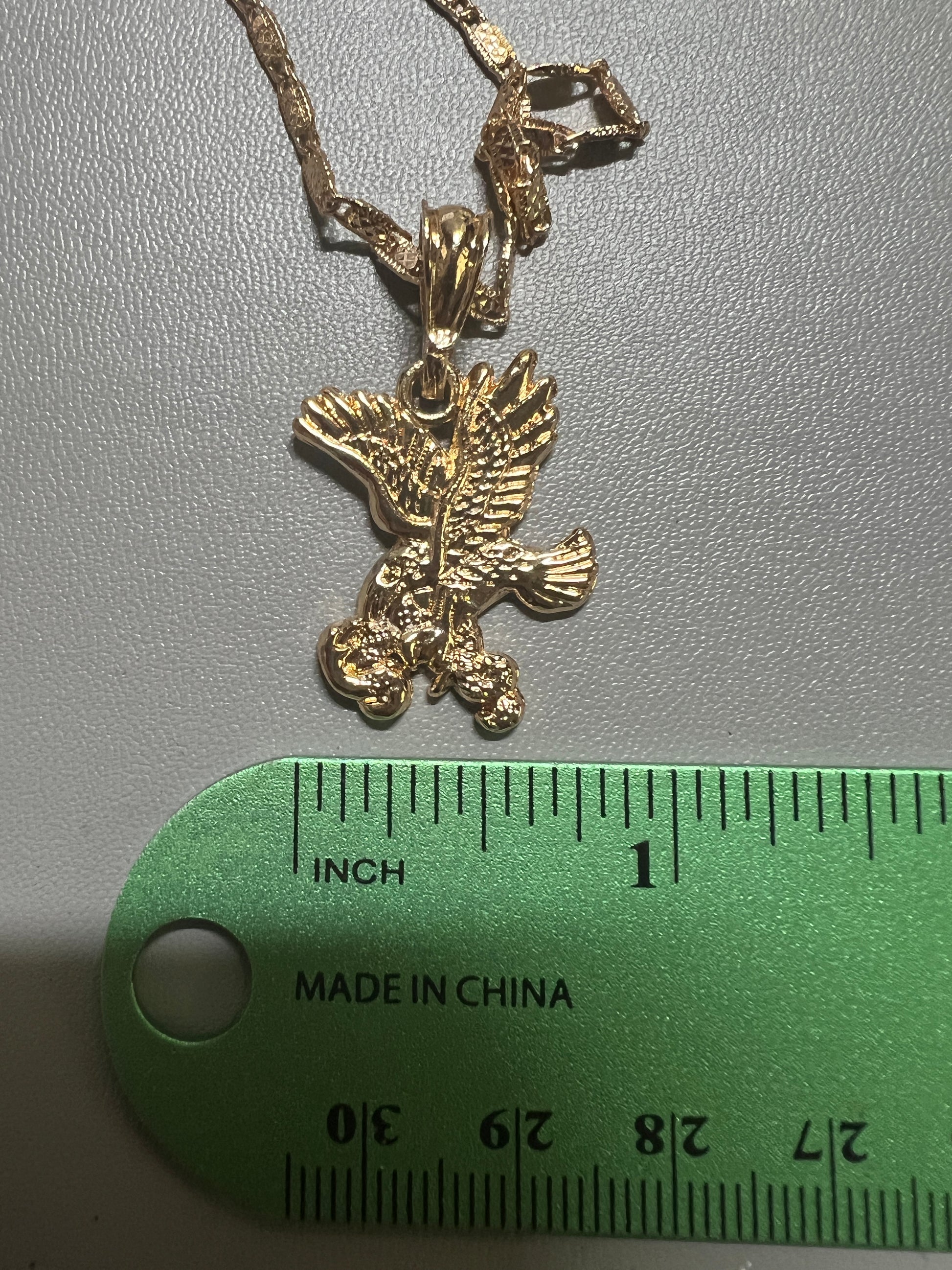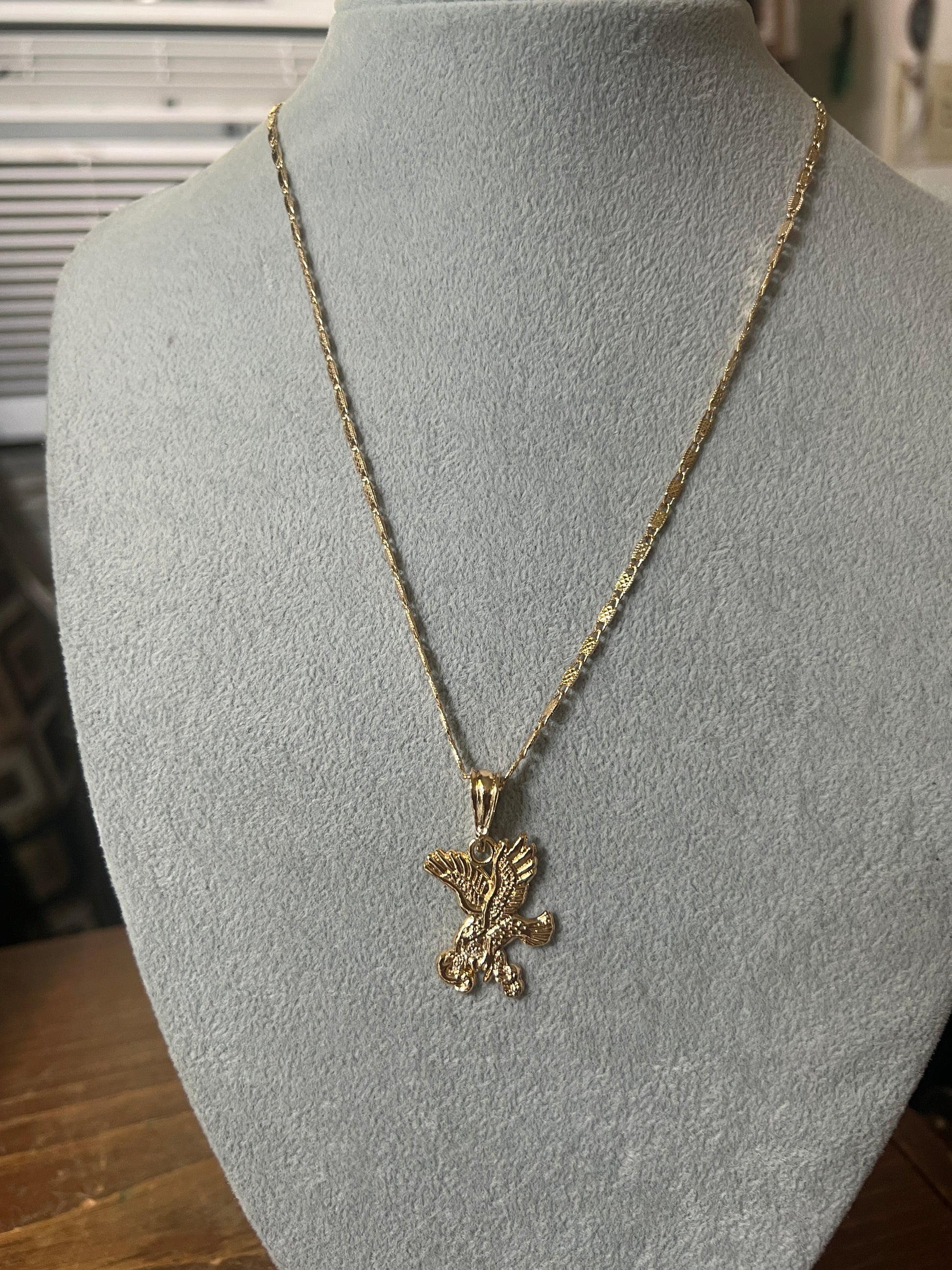 14K Gold Plated Eagle with Snake Necklace Pendant Chain Collar Aguila Pendant Necklace Chain, Mexico, Handmade (#1)