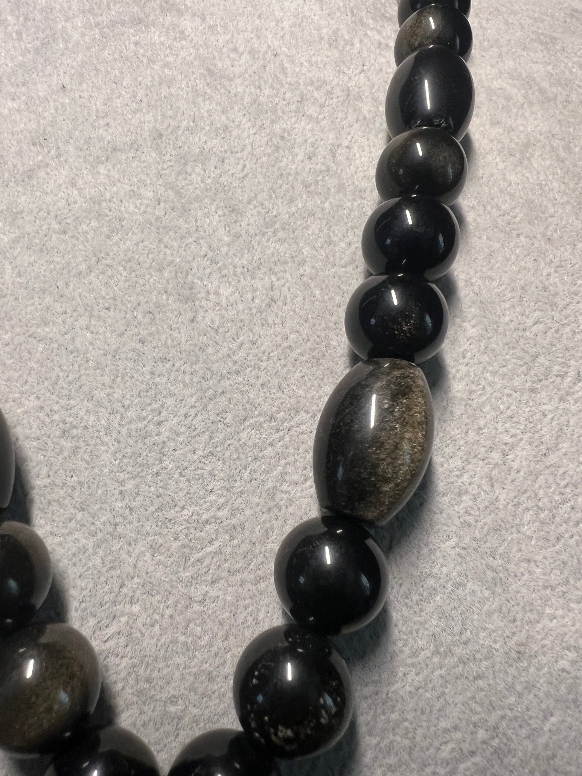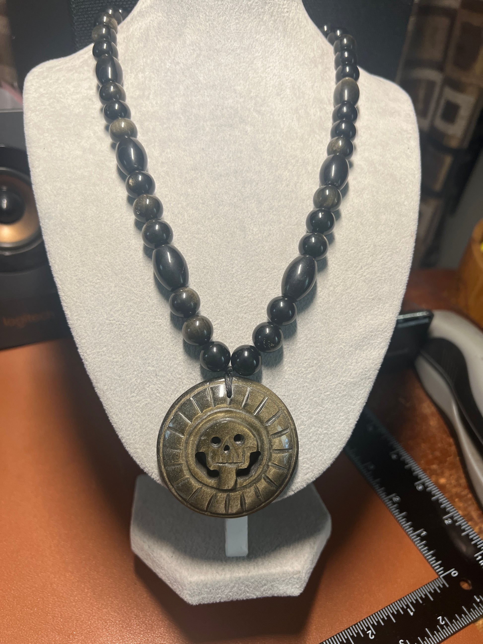 Gold Obsidian Piedra De Muerte Pendant Beaded Necklace