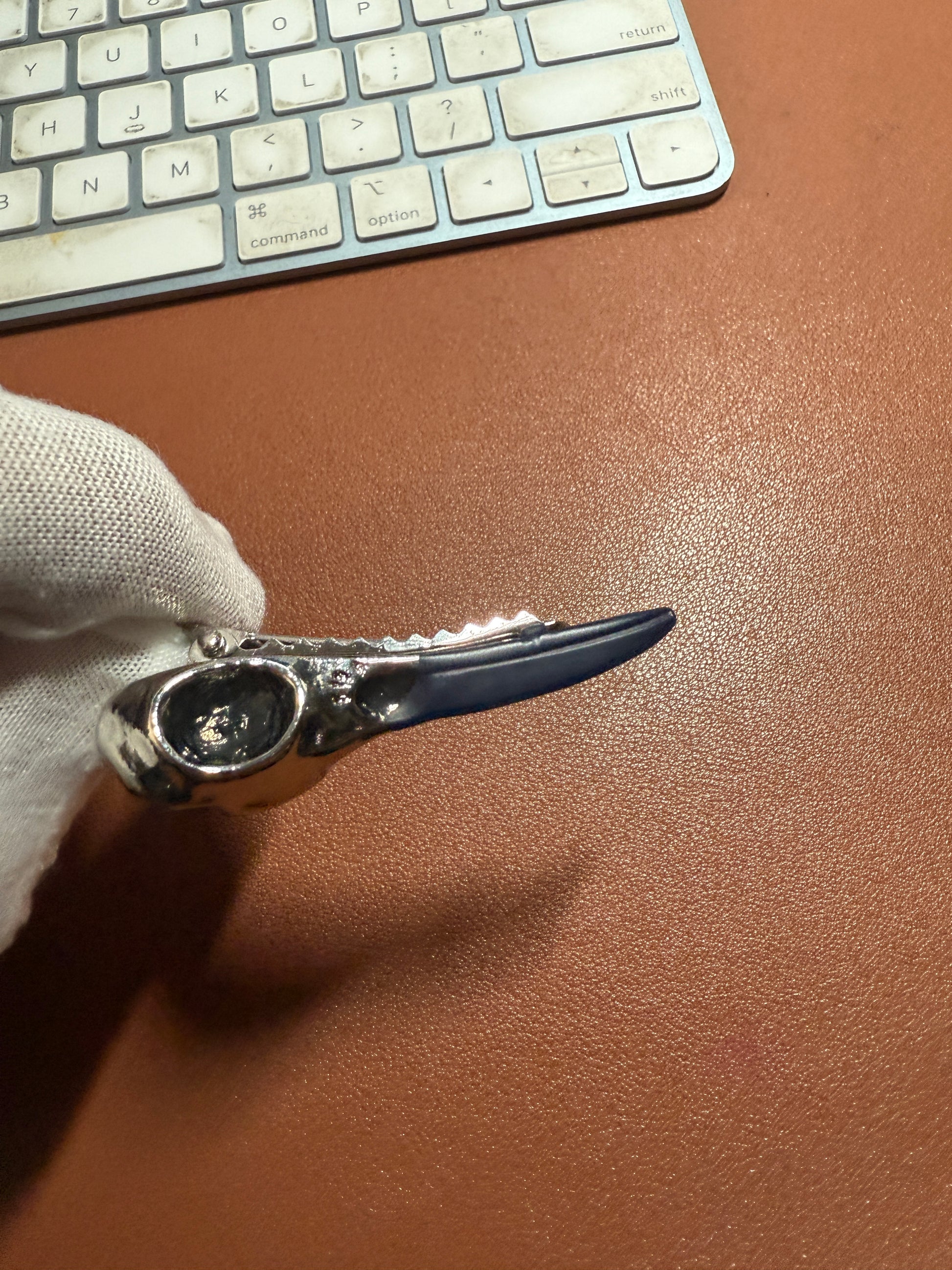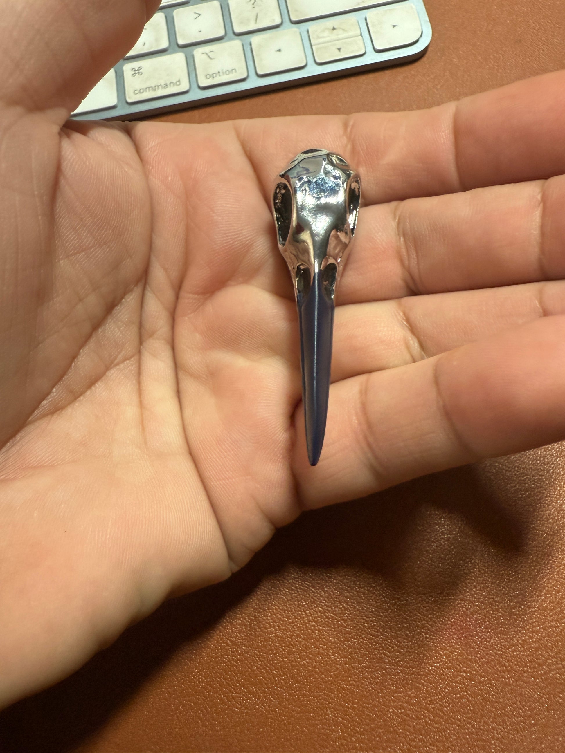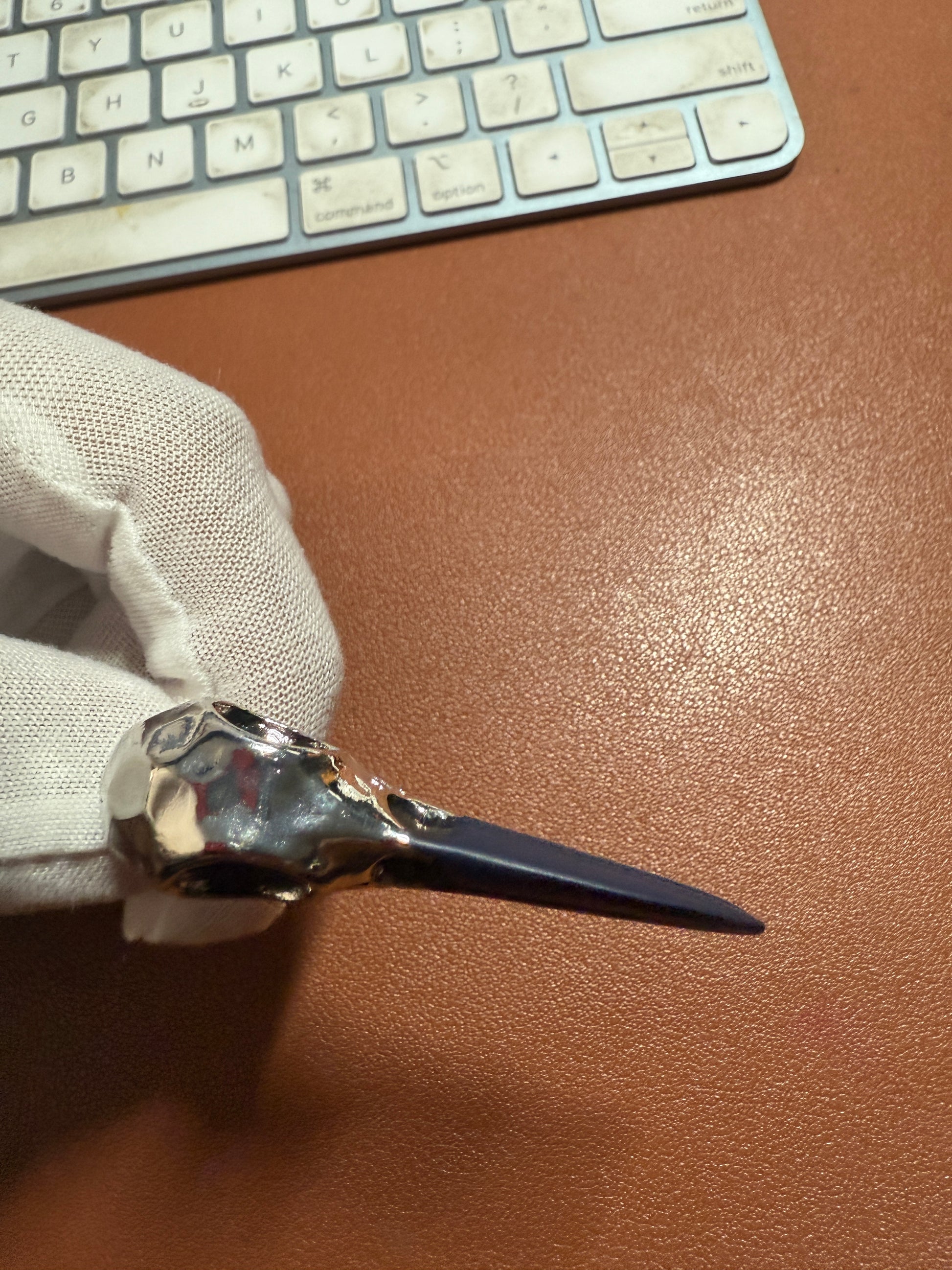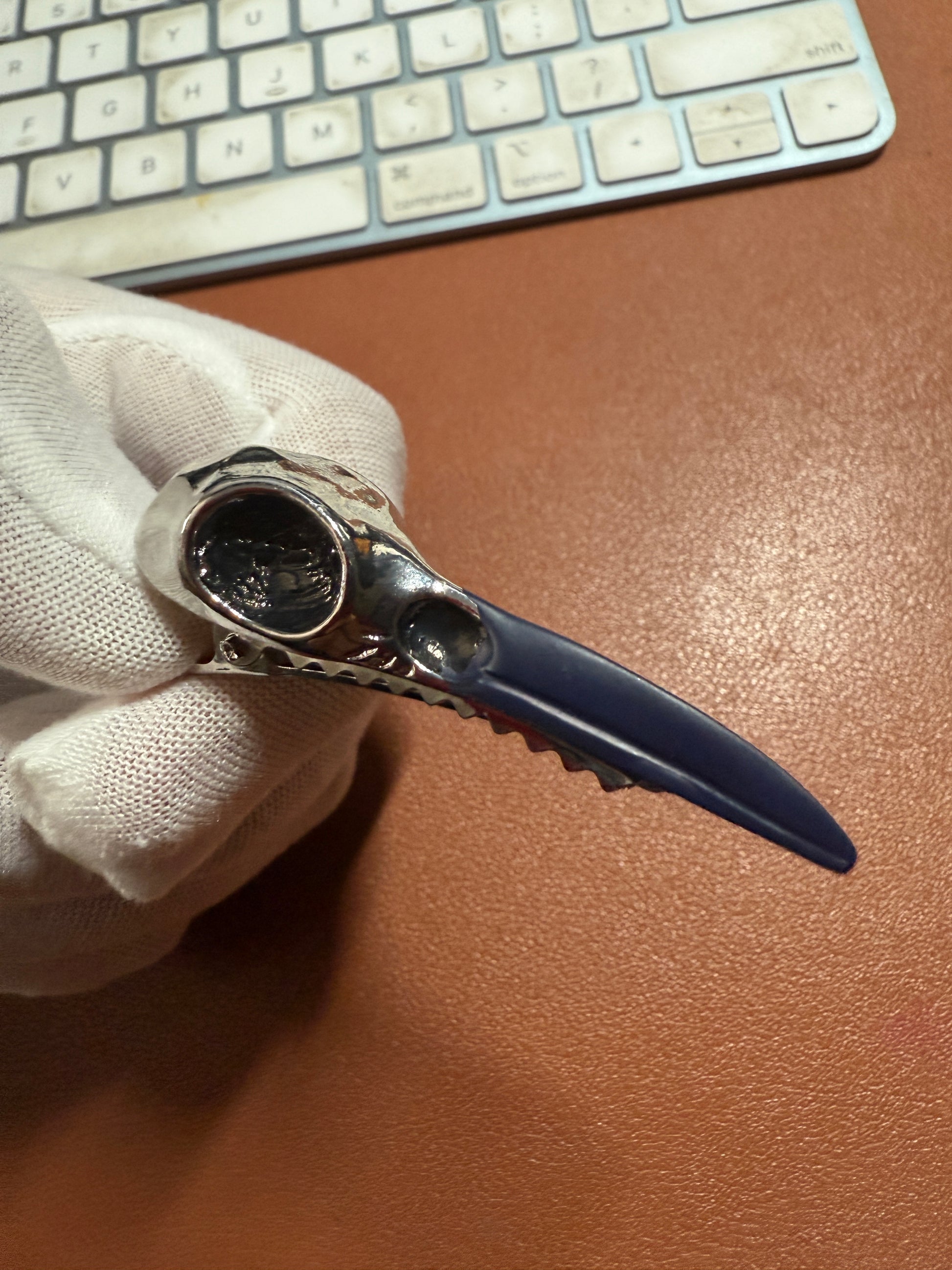 The Goth Fashion Simulation Skeleton Crow Head Hairpin is a dark and creative accessory for women. Made of silver chrome color metal, this barrette features a unique design of a raven character, adding a touch of edgy style to any outfit.