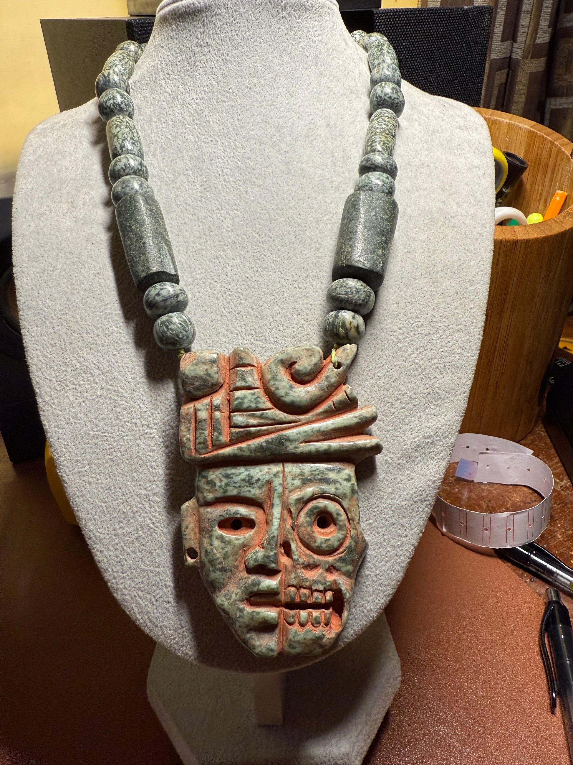 Granite Life and Death Necklace, Dualidad, Beaded, Indigenous Ancient Mexico, Mexican #15