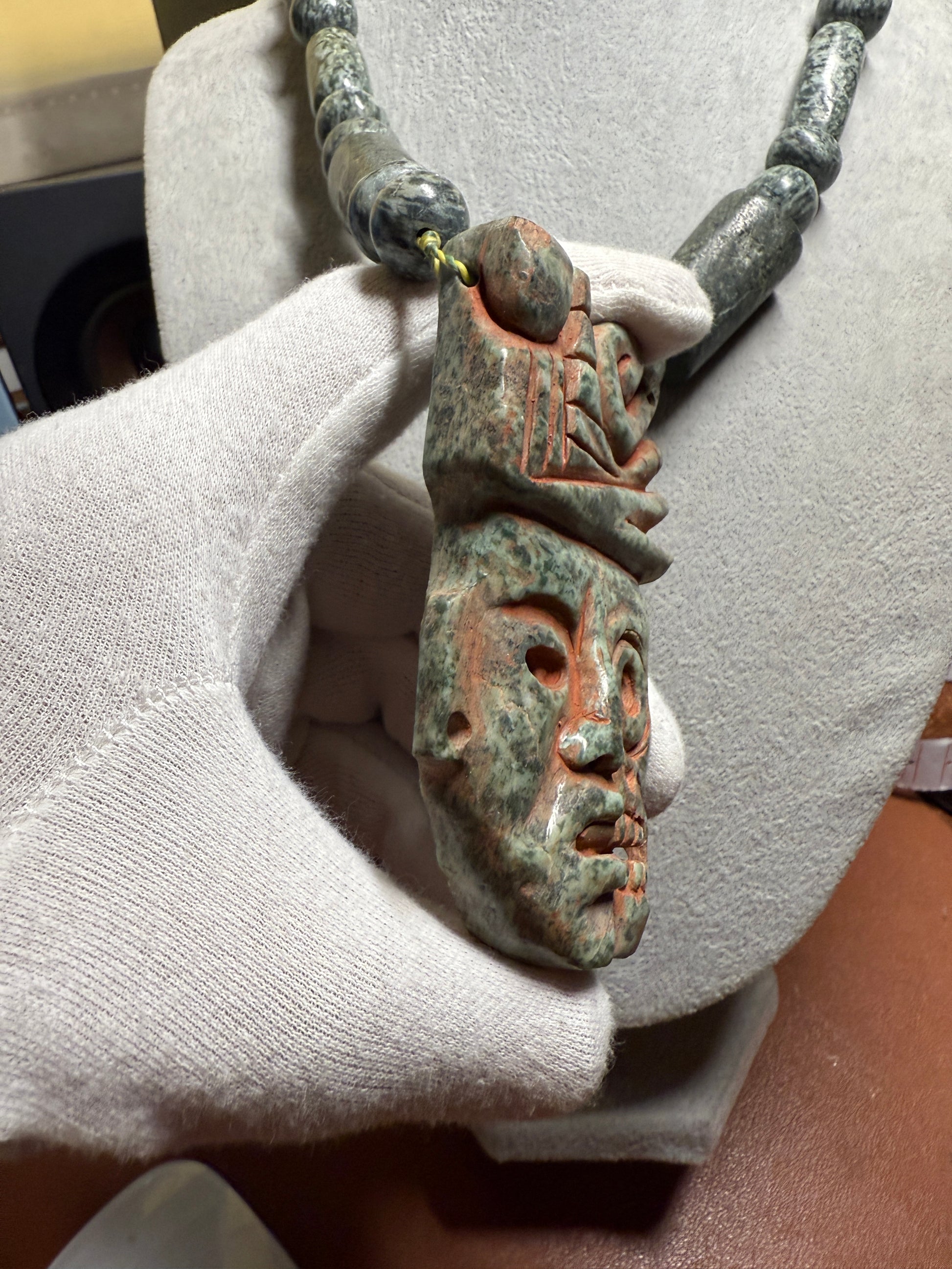 Discover the essence of duality with the granite carved Life and Death Face Necklace, a piece that embodies the intricate balance of life and death. Inspired by the rich cultural heritage of Ancient Mexico, this necklace is a testament to the enduring beauty of craftsmanship. Unique and Rare, Handmade, Hecho en Mexico by the indigenous artisans. Large, heavy, and adjustable.