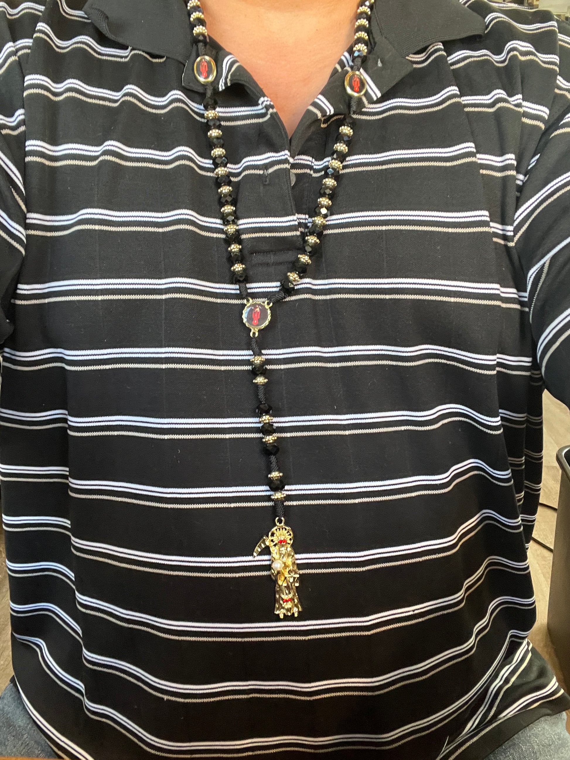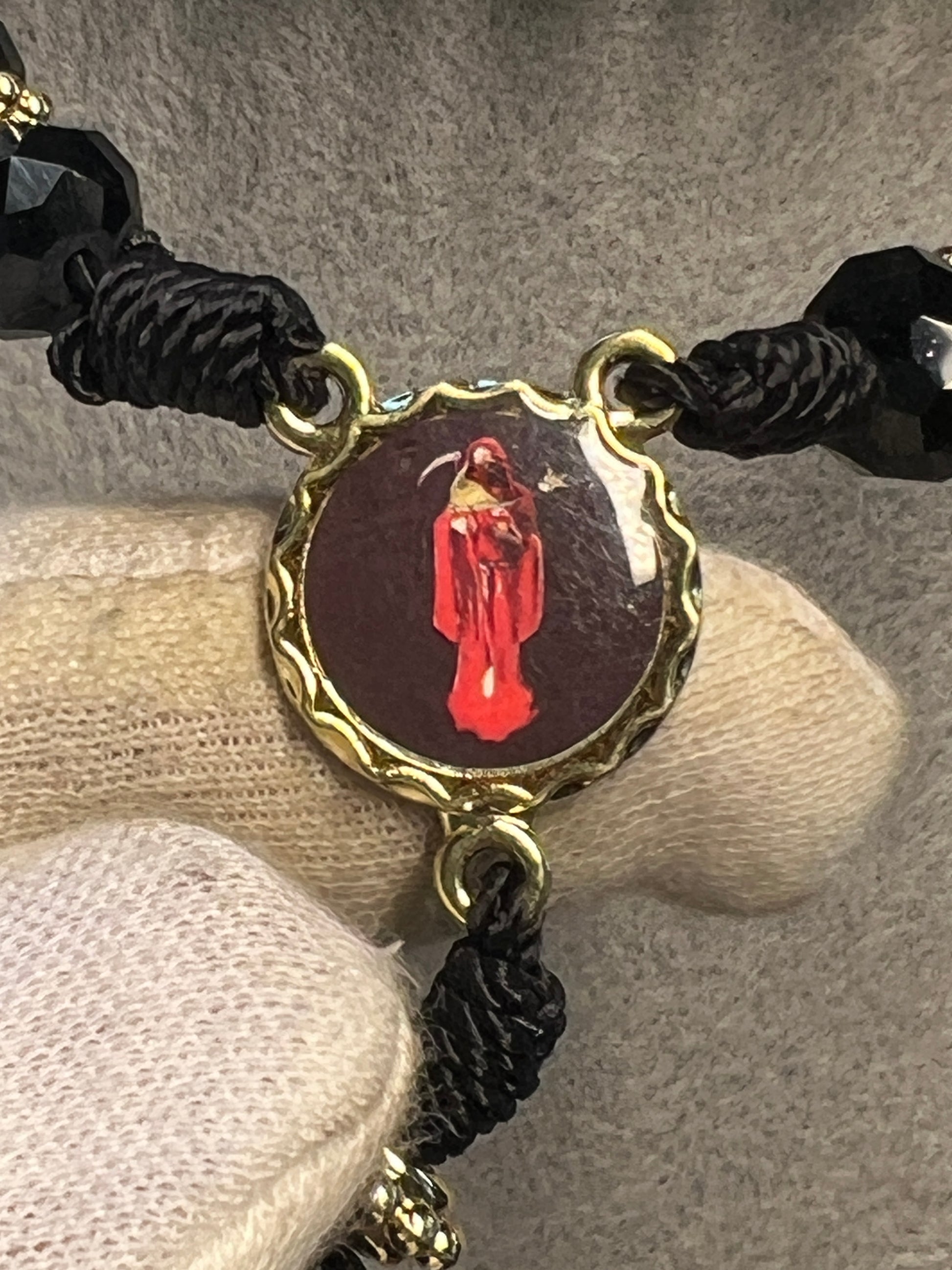 Grim Reaper Necklace, Rosary Style Collar de la Santa Muerte Rosario (#10)