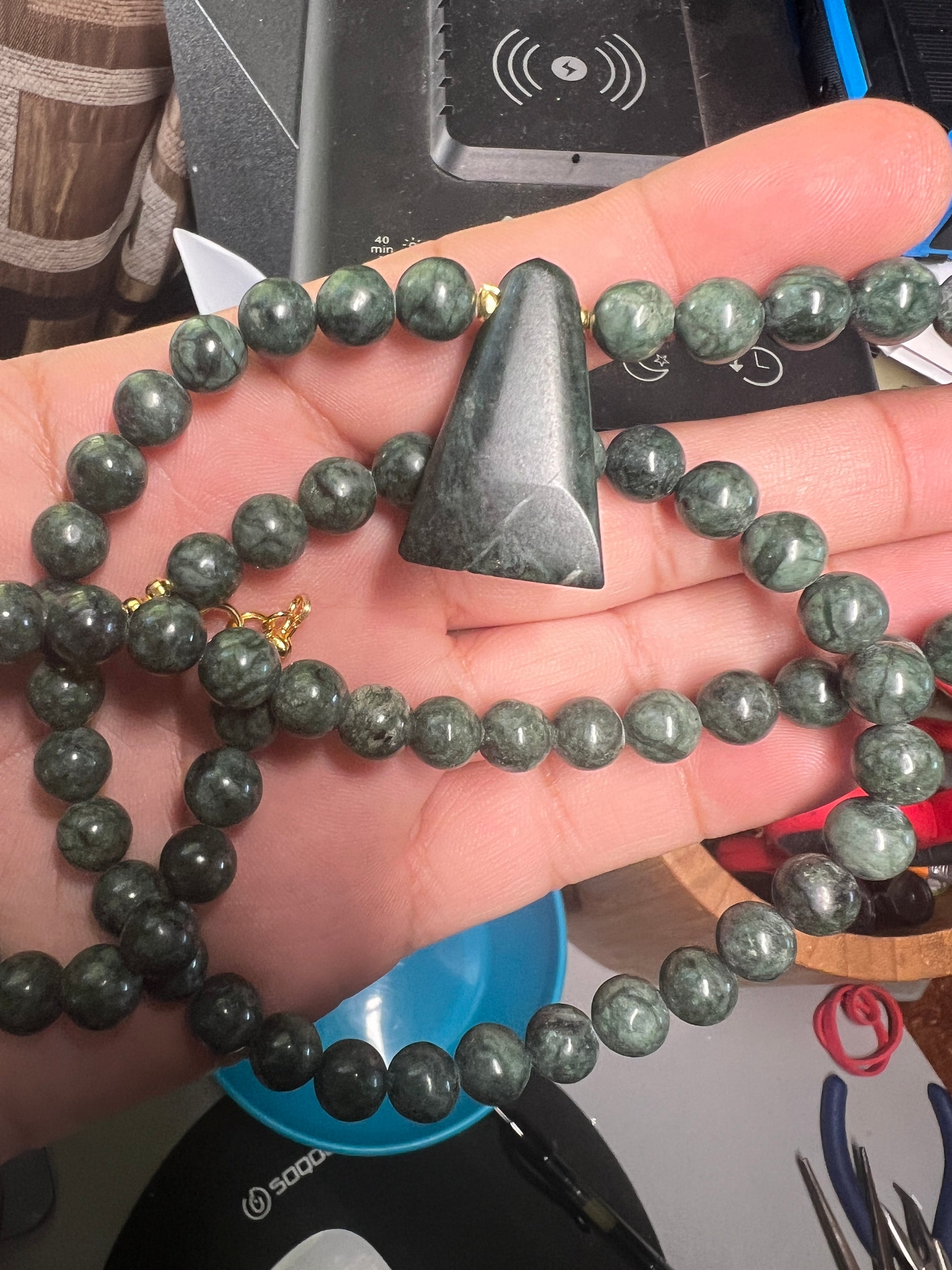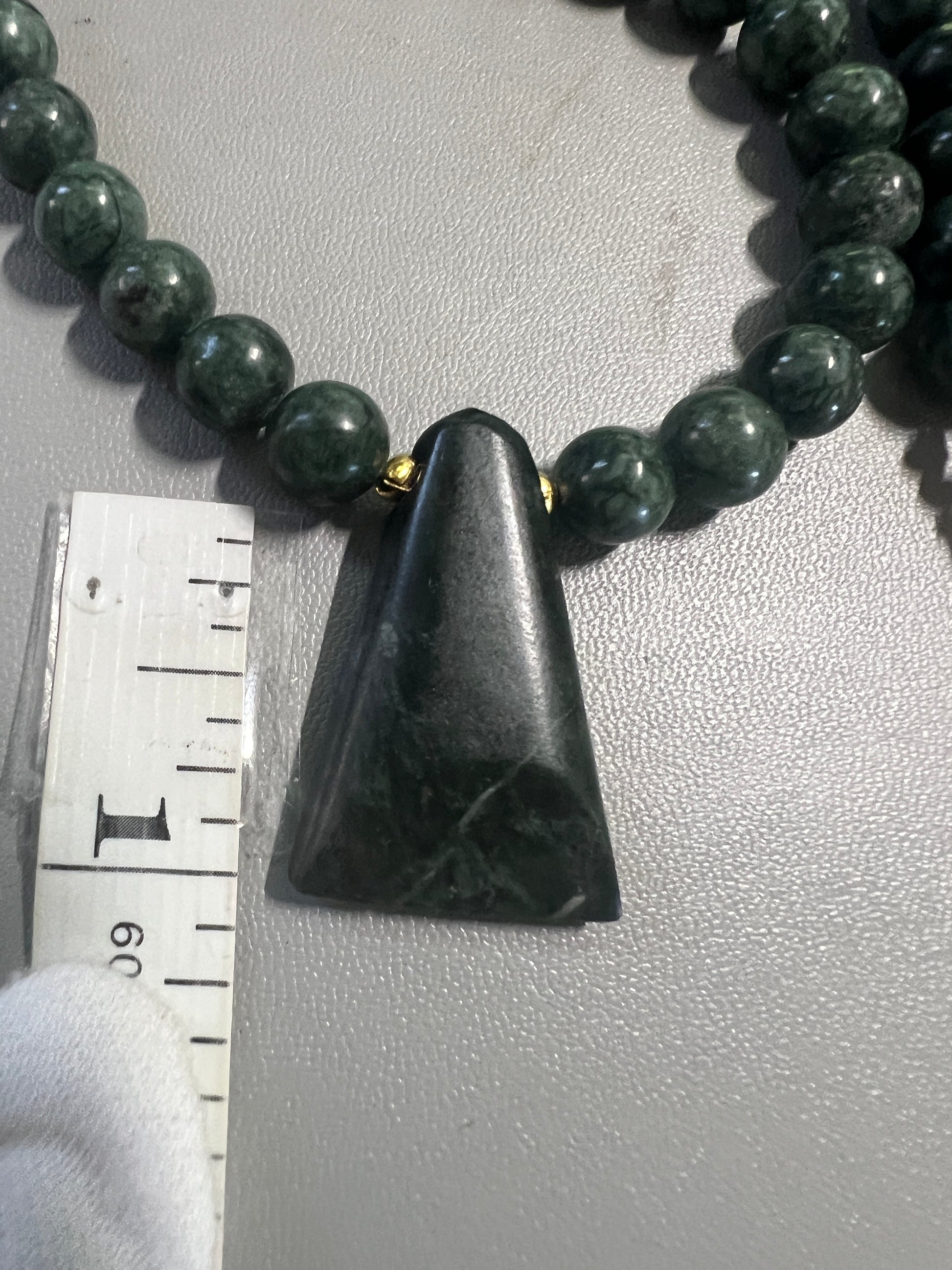 Jade Aztec Axe Beaded Necklace, Hand Made, Jade Beads, Mexica Ancient Mexican (#14)