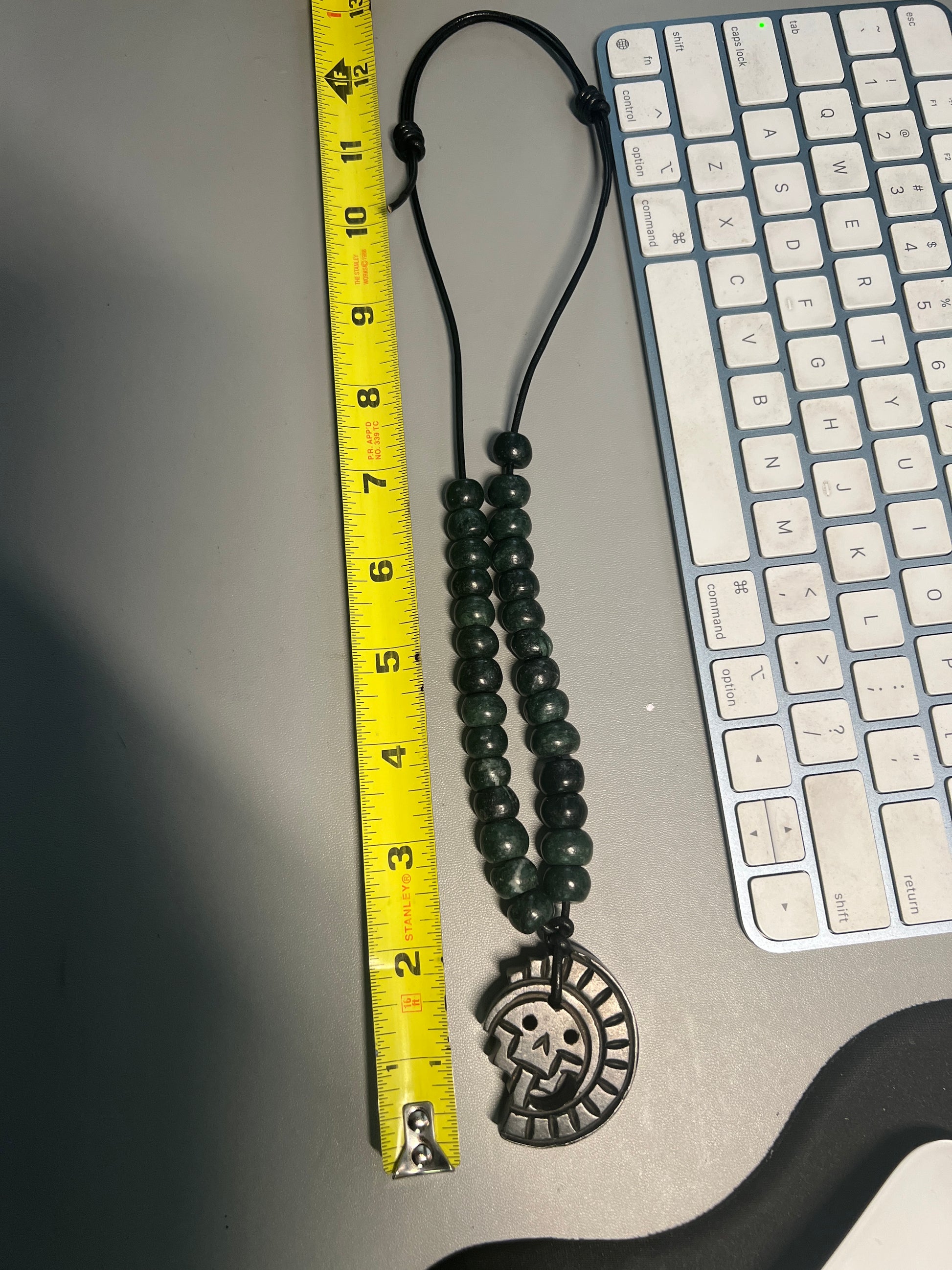 1 7/8" pendant, 24+ inch beaded necklace, adjustable.