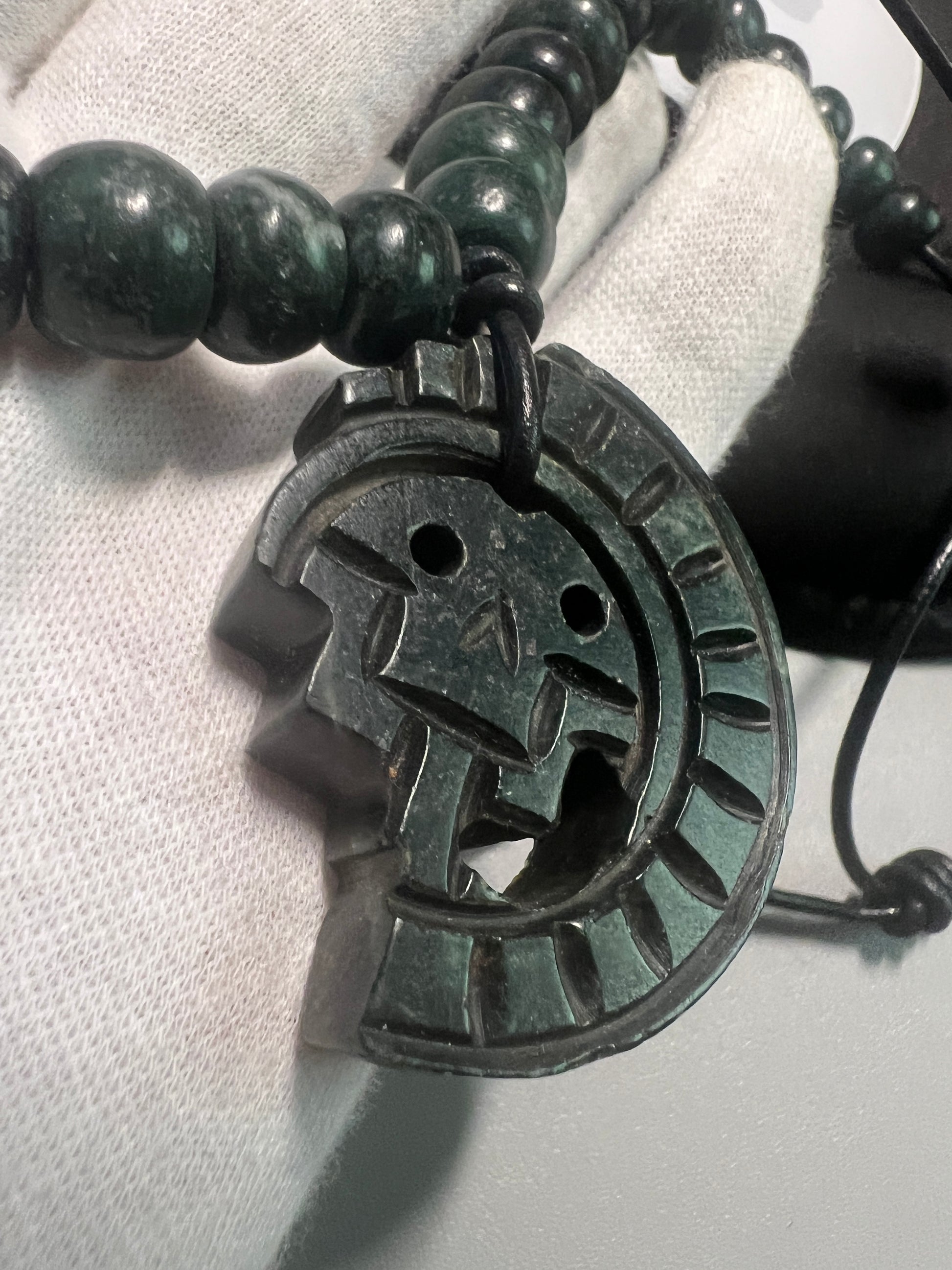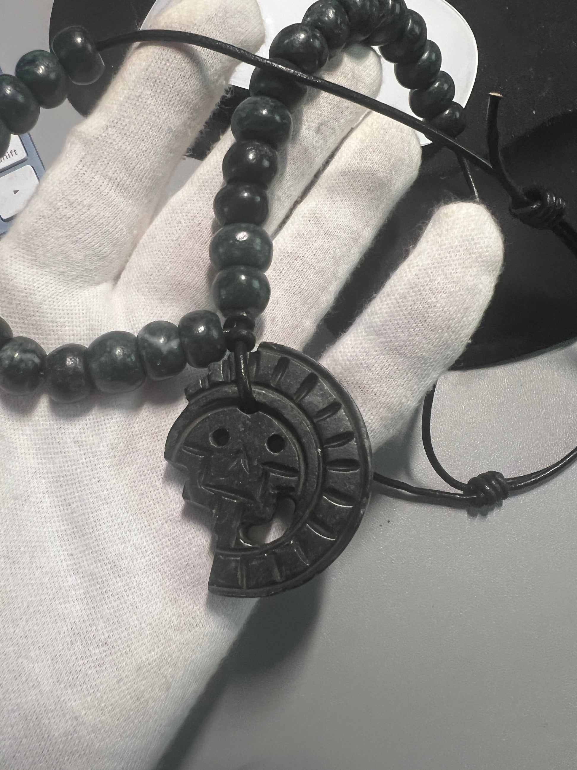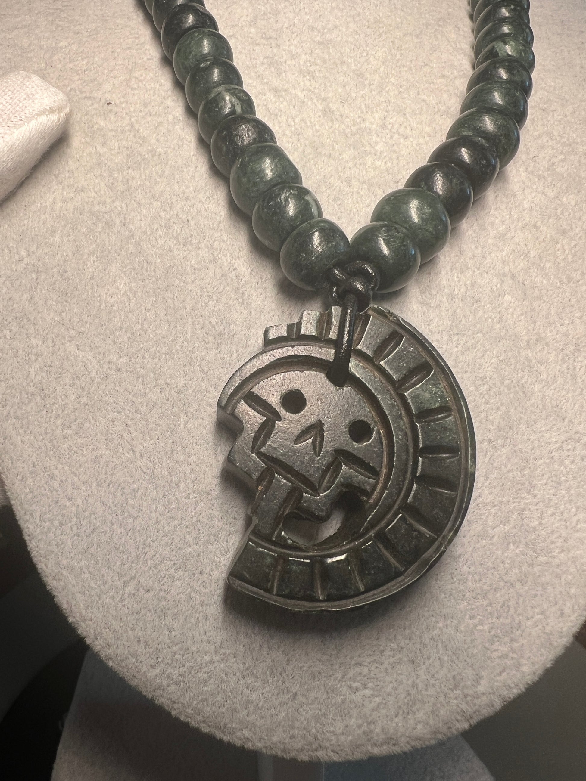 JADE Piedra De Muerte Pendant Beaded Necklace, The Stone of Death, Mictlantecuhtli, Handmade, Mexico, Prehispanic Jewelry (#16)