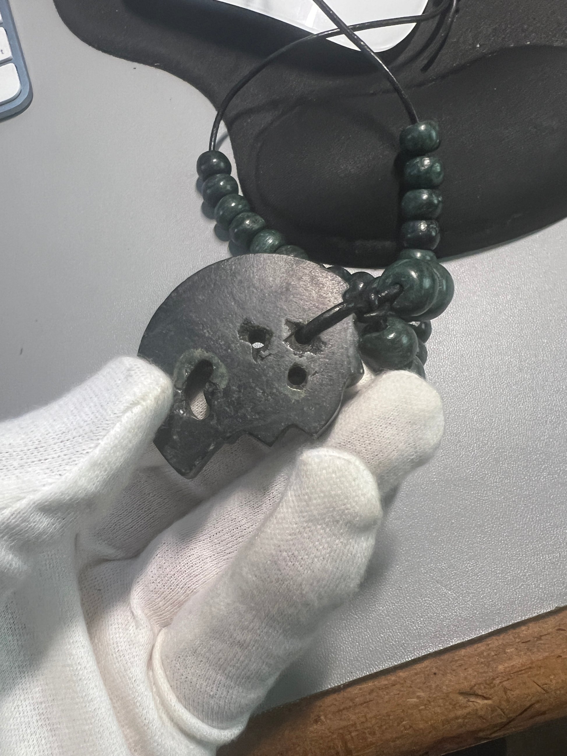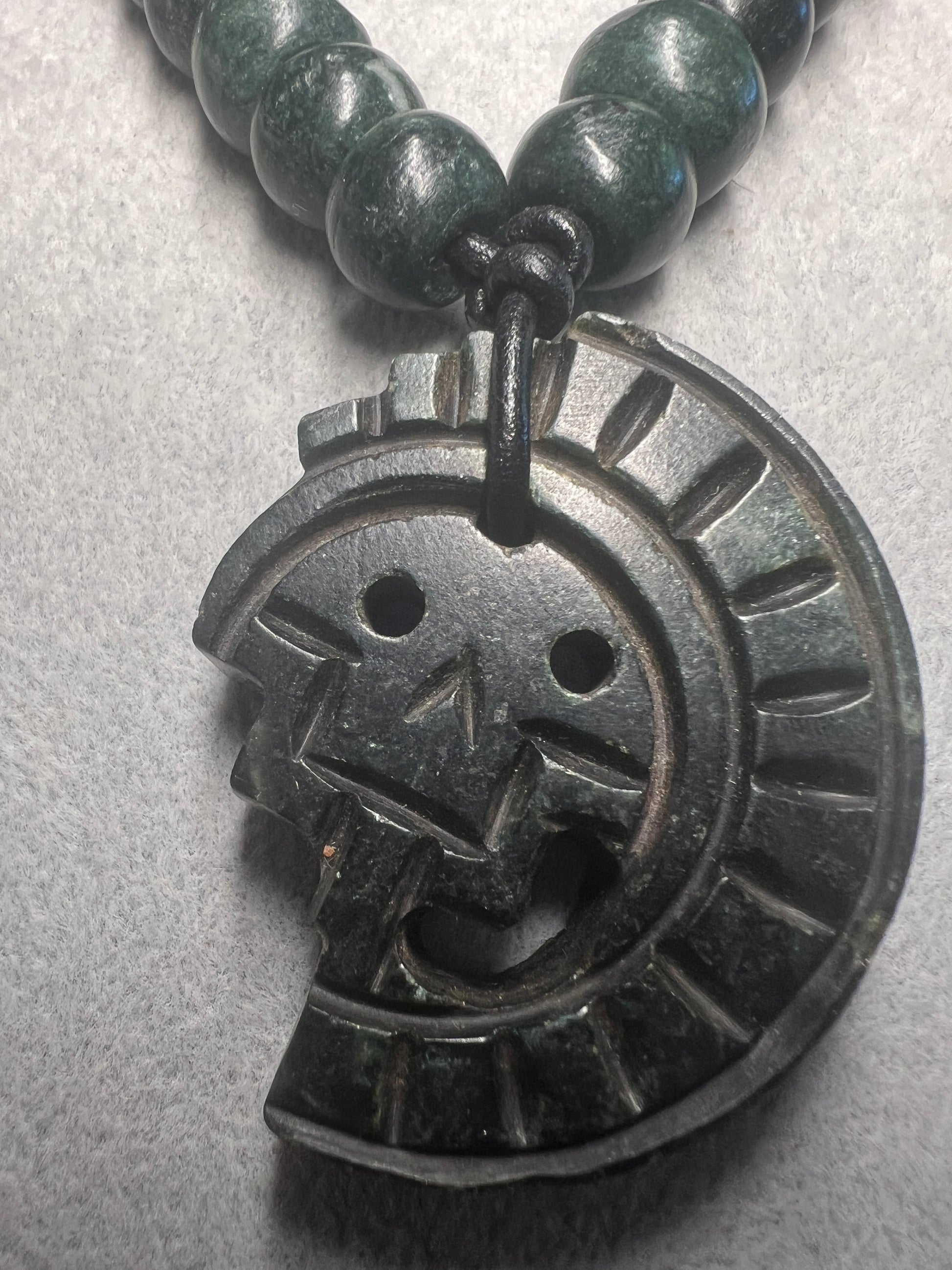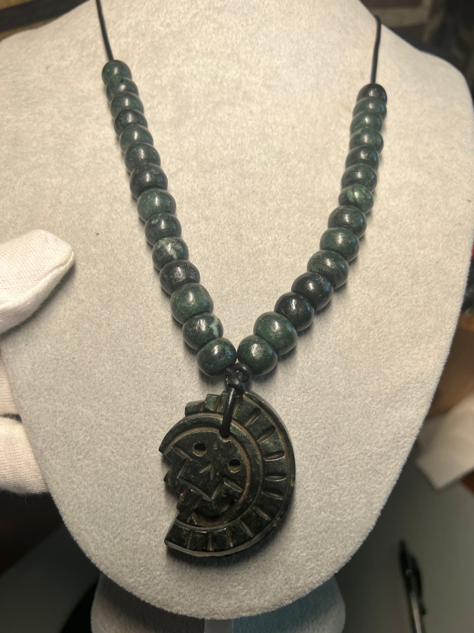 JADE Piedra De Muerte Pendant Beaded Necklace, The Stone of Death, Mictlantecuhtli, Handmade, Mexico, Prehispanic Jewelry (#16)