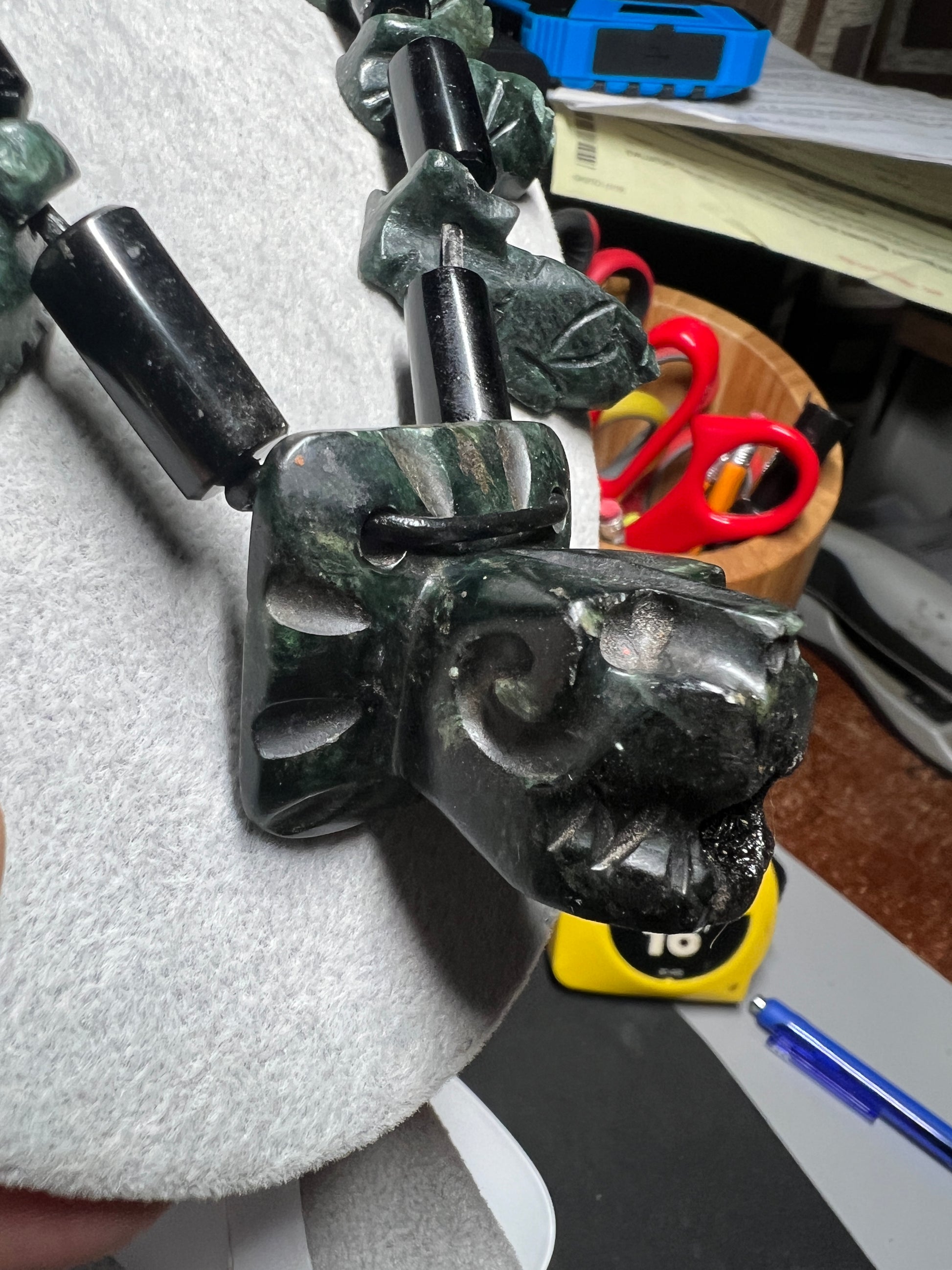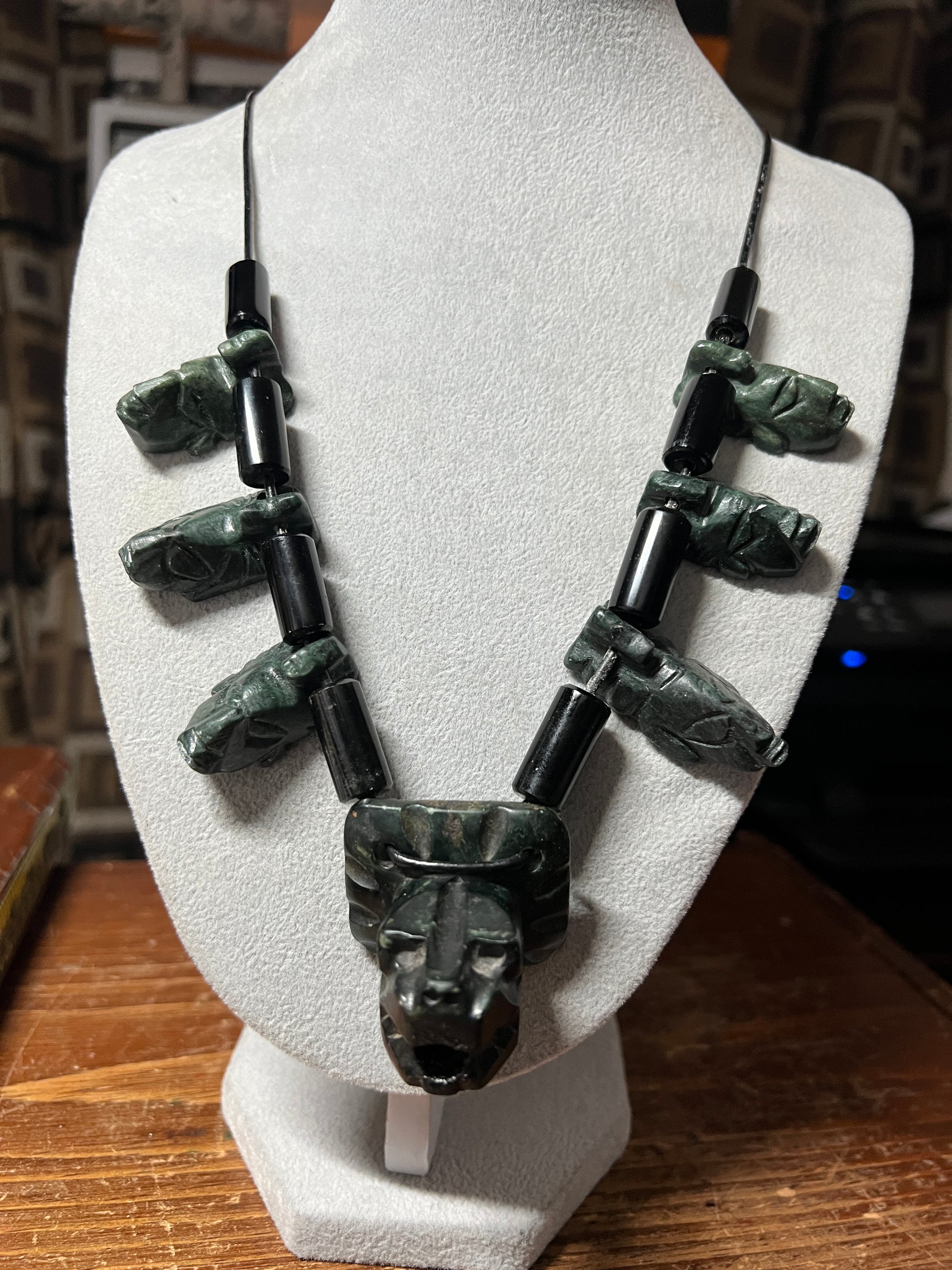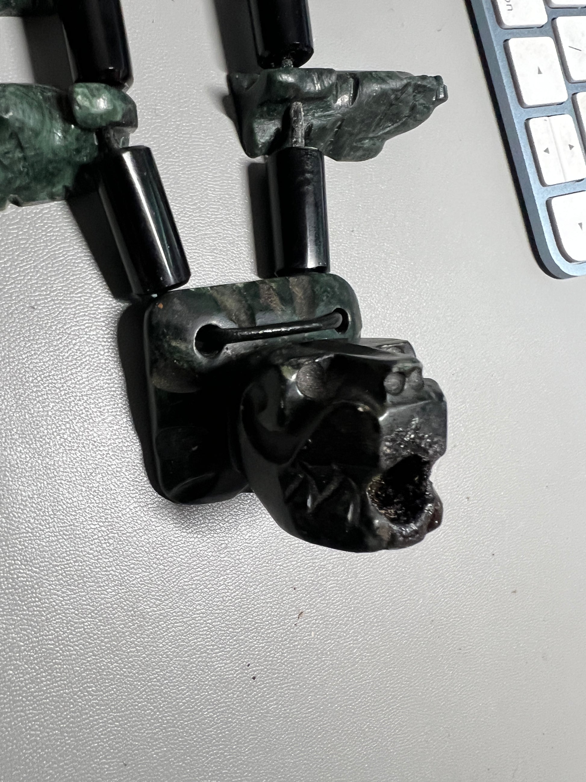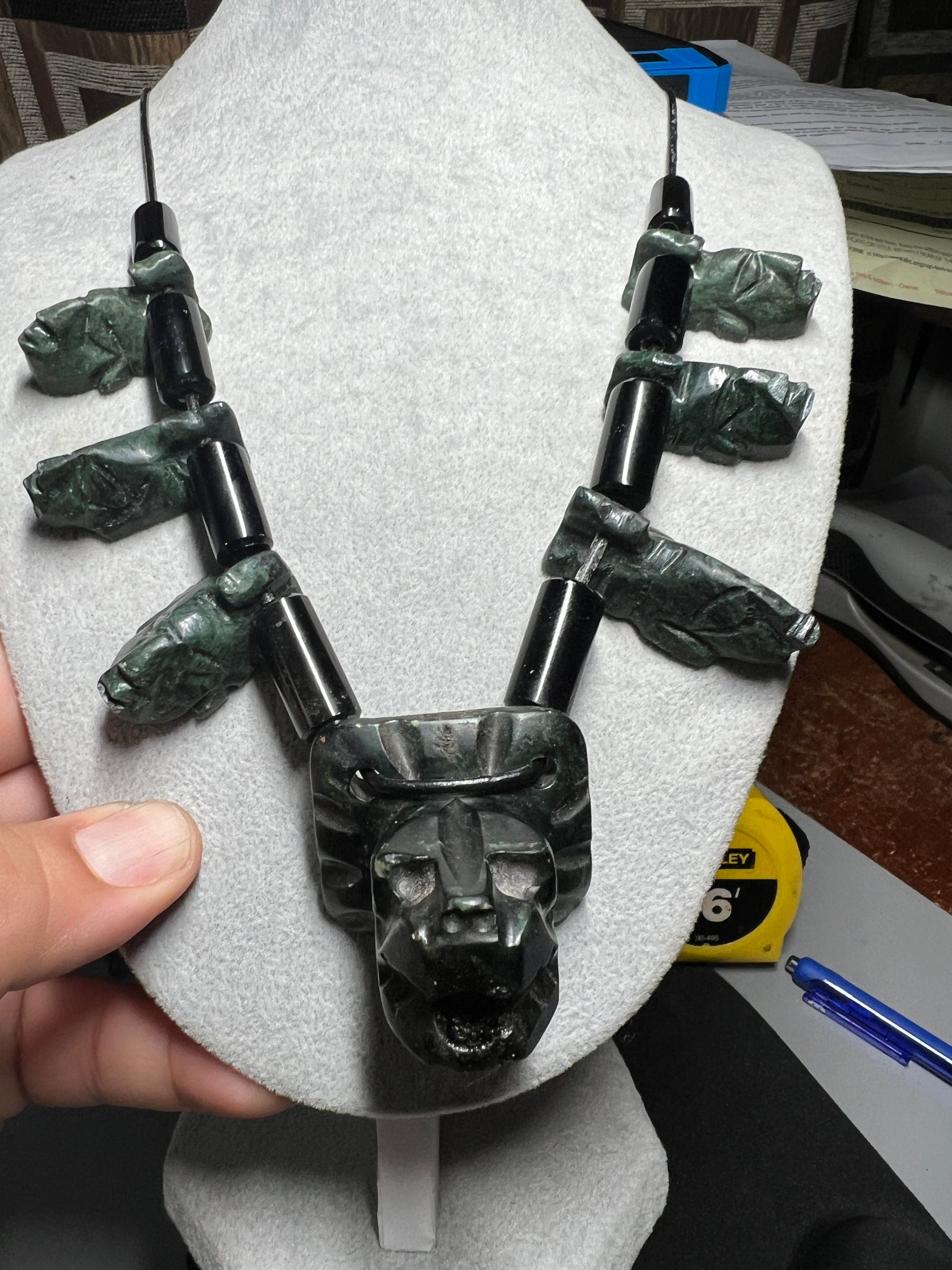 Jade Quetzalcoatl Feathered Serpent Necklace, Kukulkan 5 Mayan Face, Plumed Serpent Necklace Maya, Aztec, Mexica, Plumed Serpent, jade and obsidian.