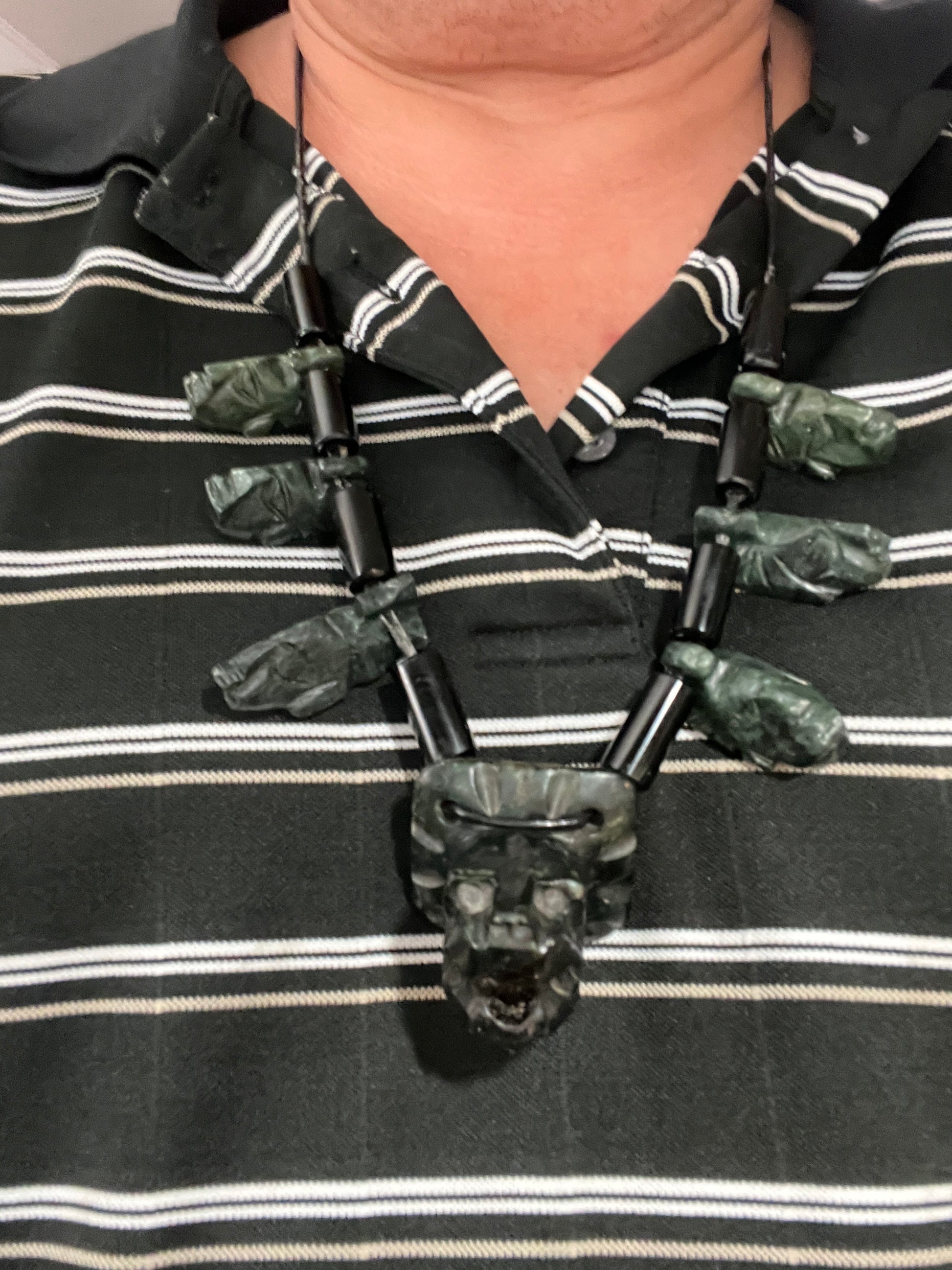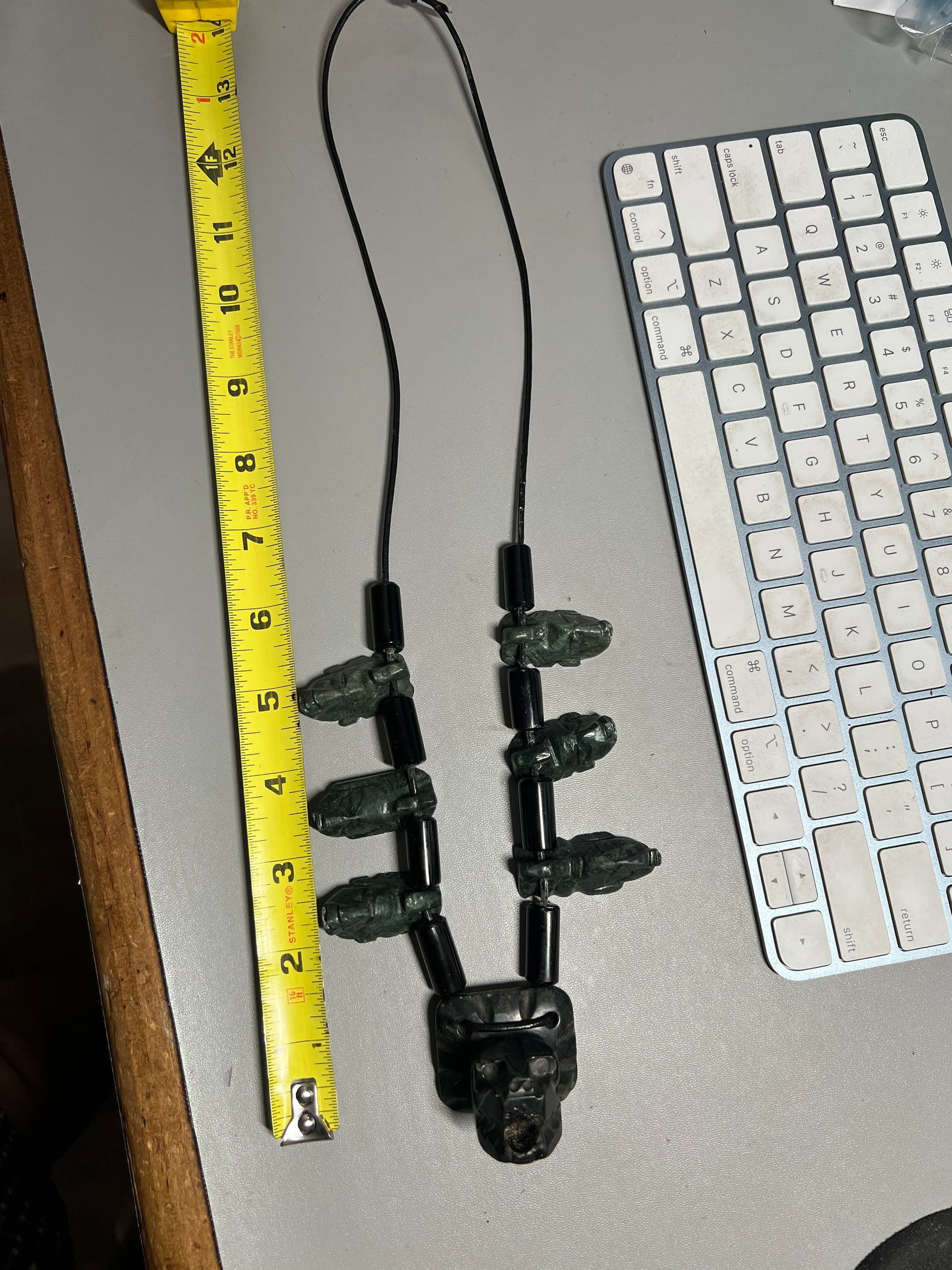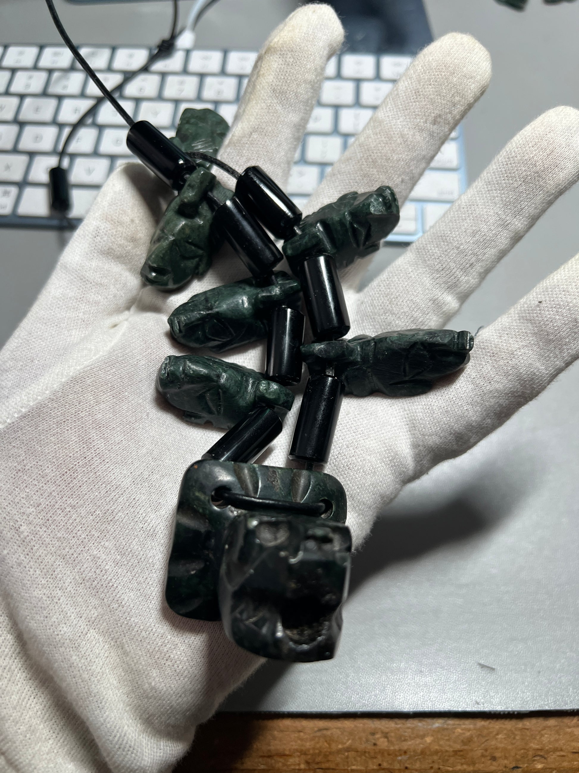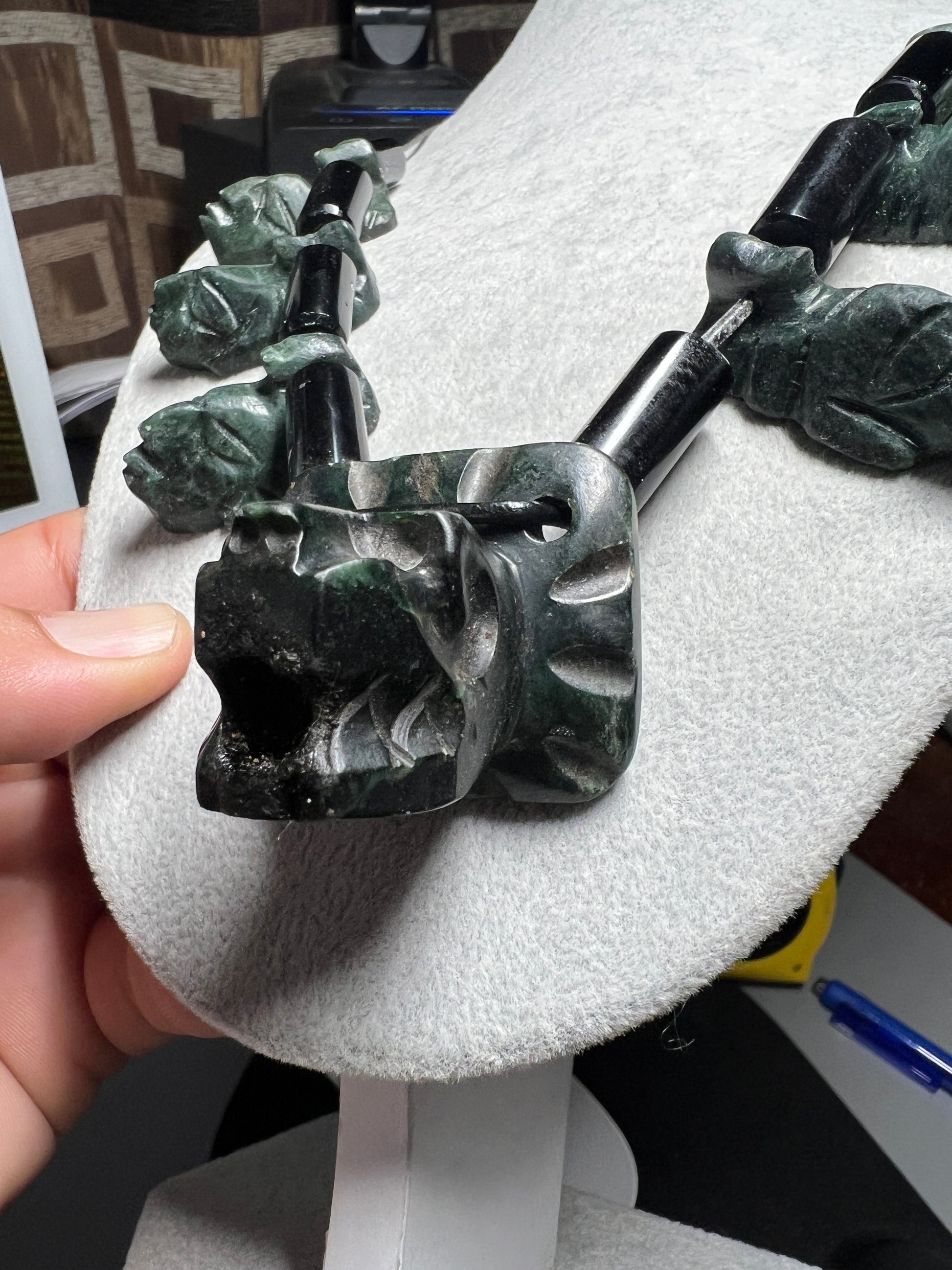 Jade Quetzalcoatl Feathered Serpent Necklace, Kukulkan 5 Mayan Face, Plumed Serpent Necklace Maya, Aztec, Mexica, Plumed Serpent, jade and obsidian.