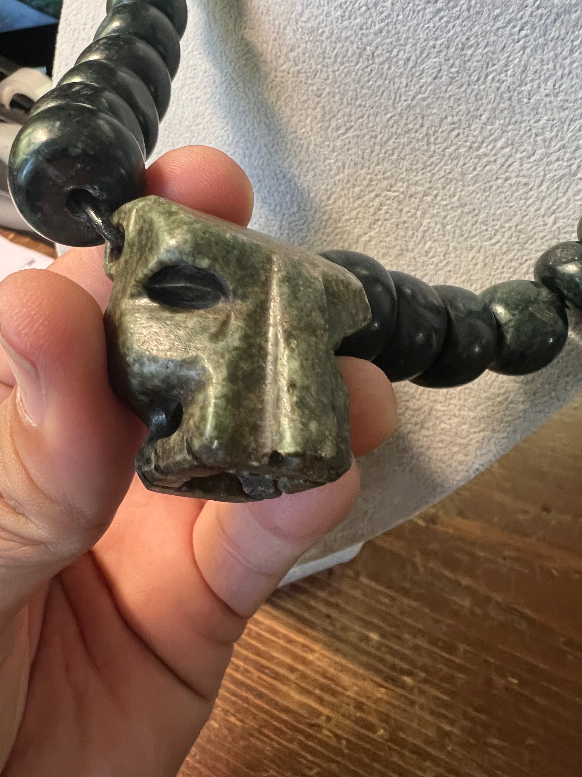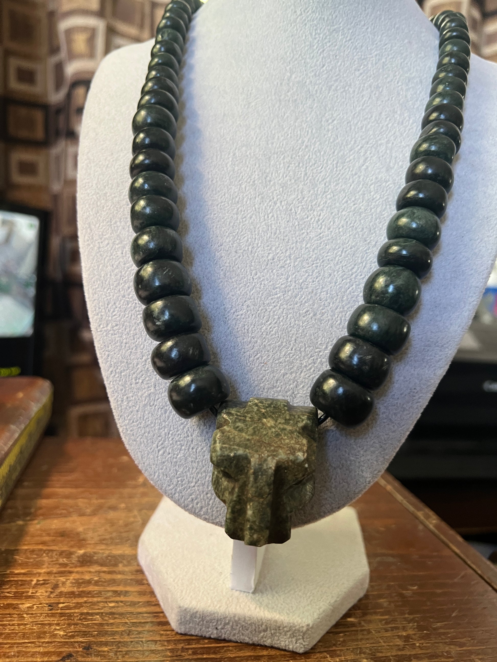 Jaguar Jade Pendant, Jade Beaded Necklace, Aztec, Mexica, Mayan, 24 plus in. long, Rare, Mexico (#18)