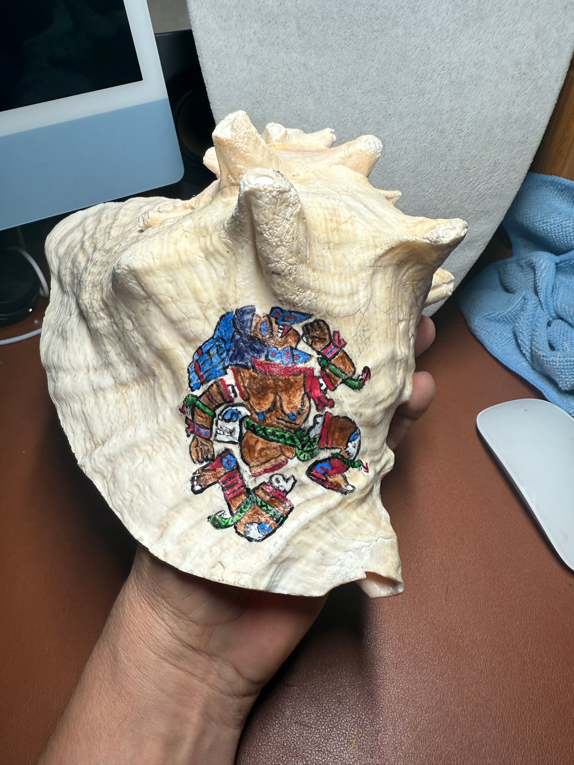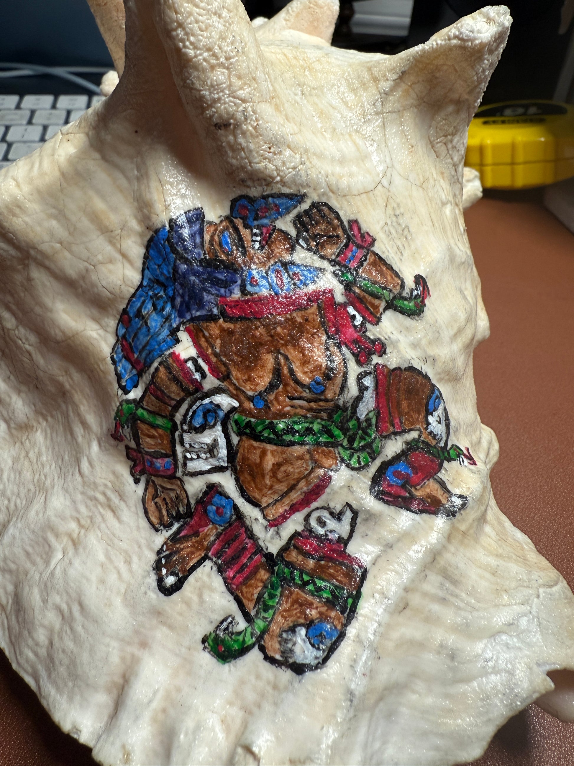 Coyolxauhqui Aztec Conch Shell Horn - Seashell Trumpet, 9"