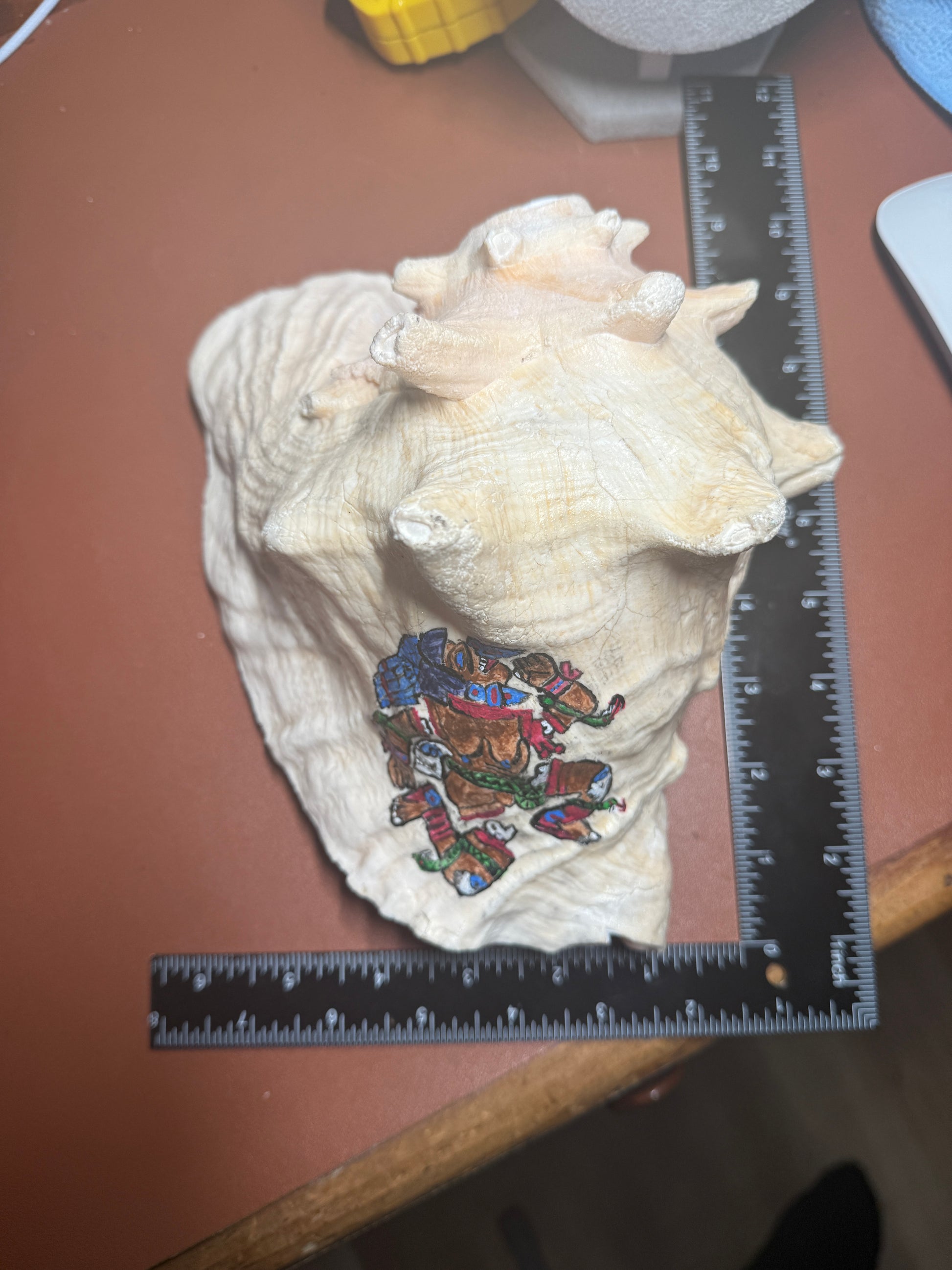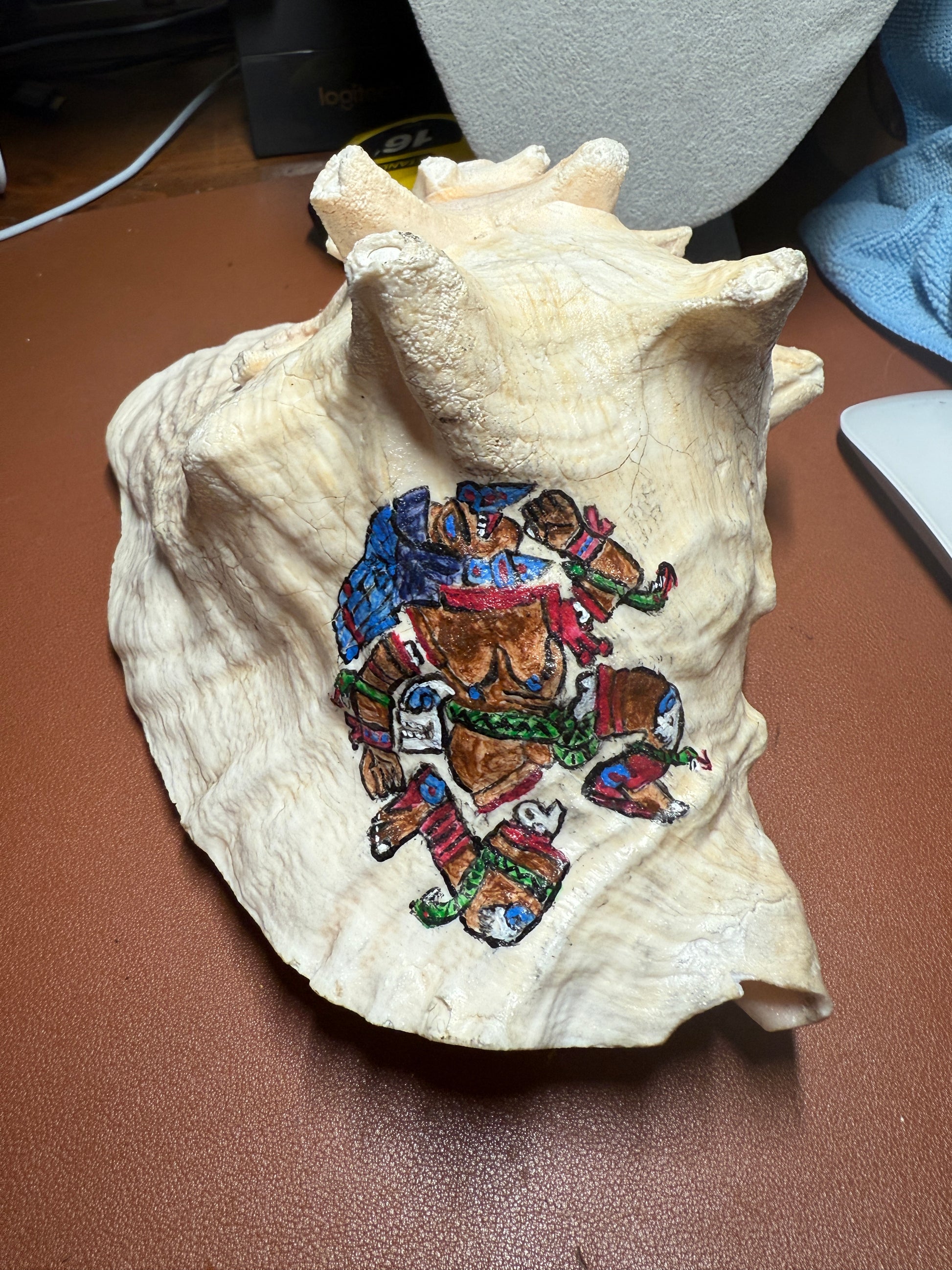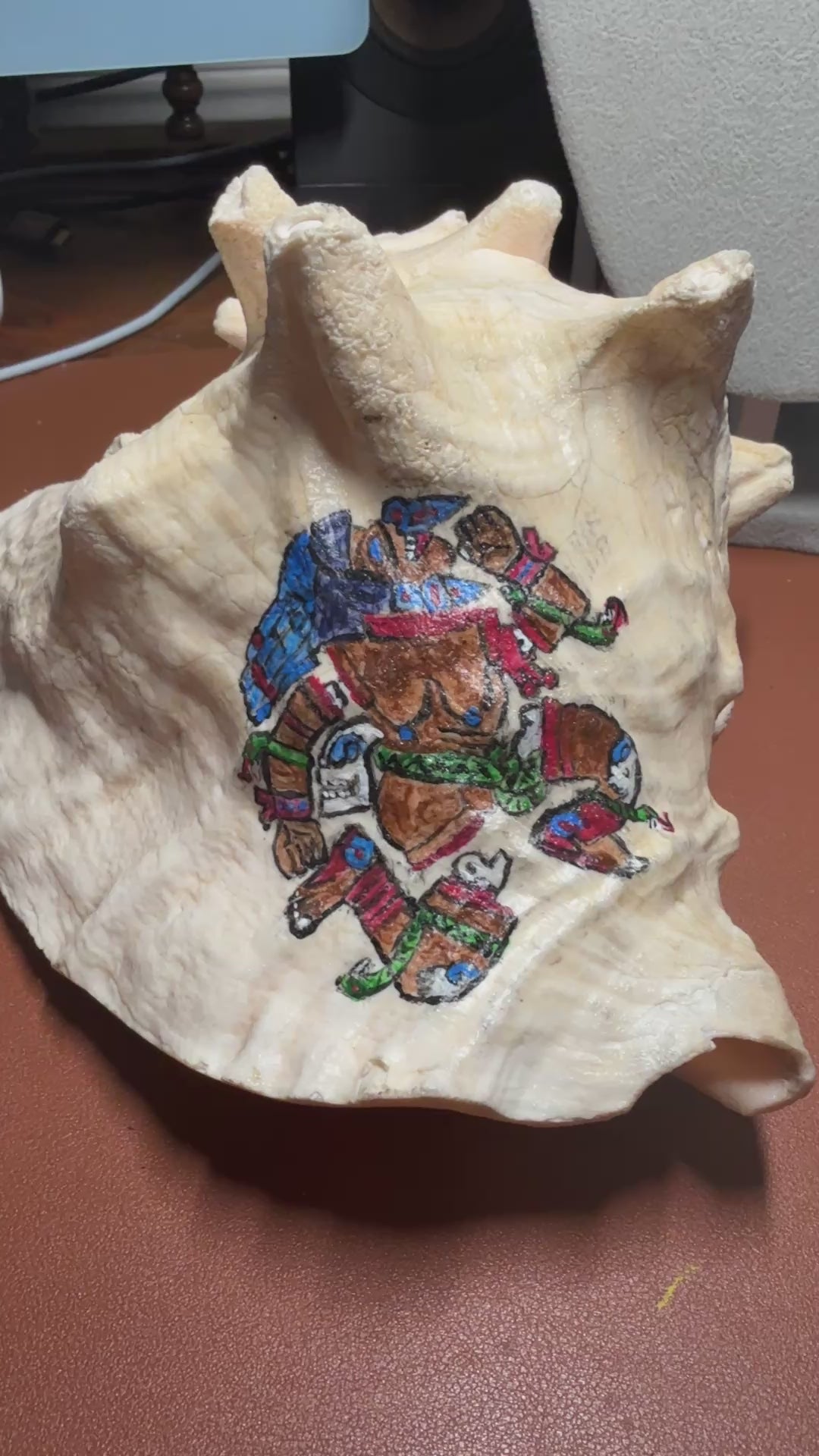 Large Aztec Coyolxauhqui Conch trumpet, playable, Moon Milky Way Goddess, Shell Horn, 9", Mexican