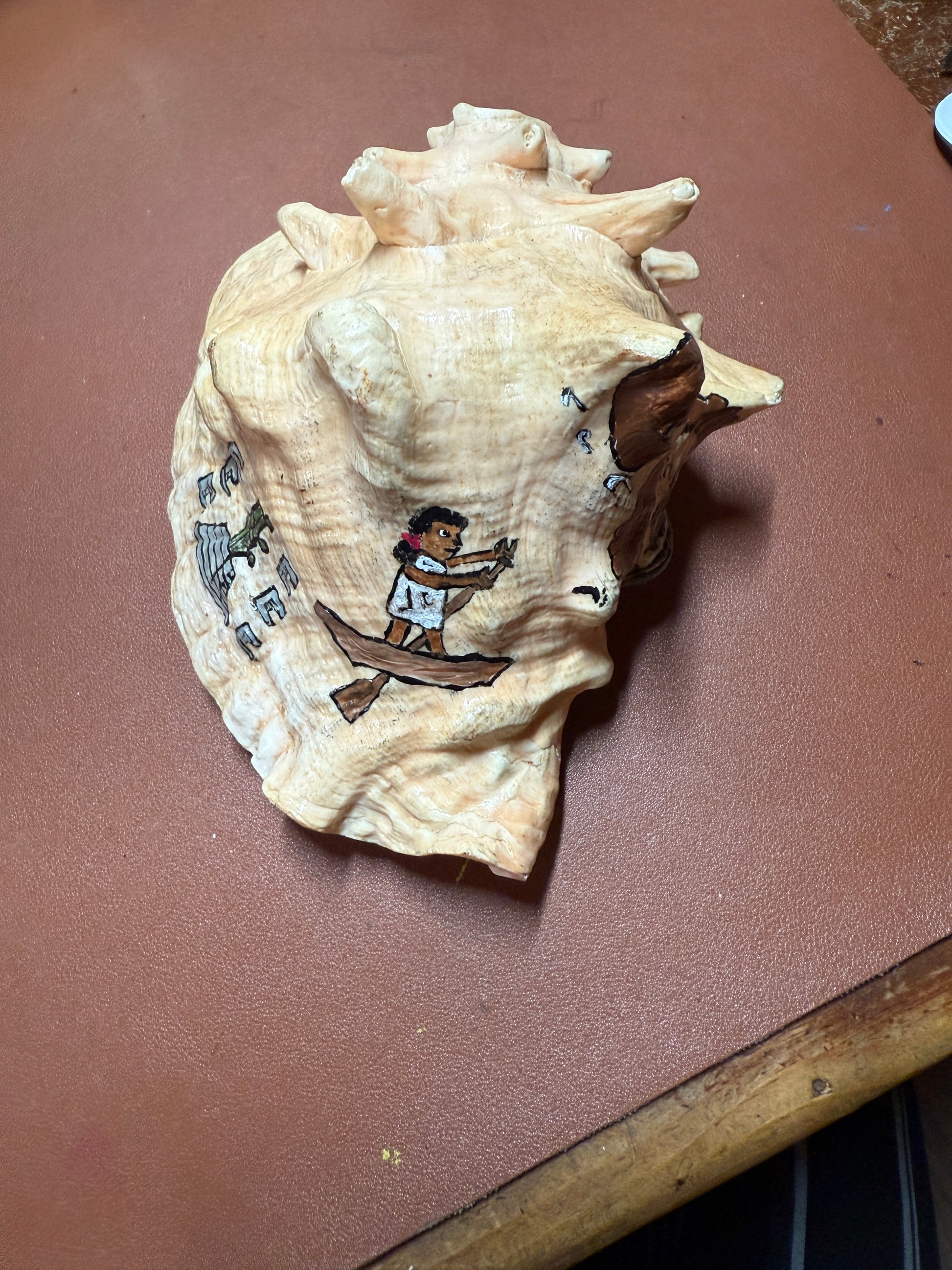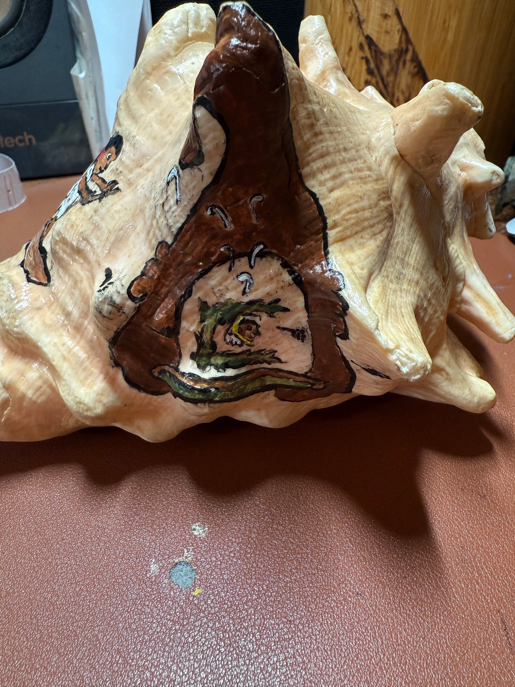 Aztec Map To Azlan Conch Shell Horn - Seashell Trumpet, 7", Mexican, blows, playable