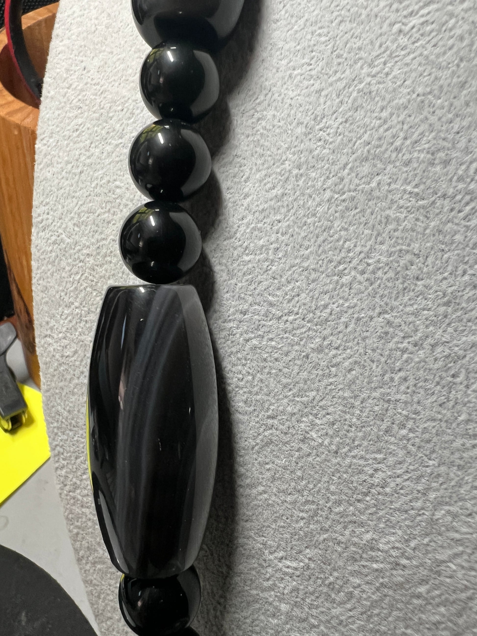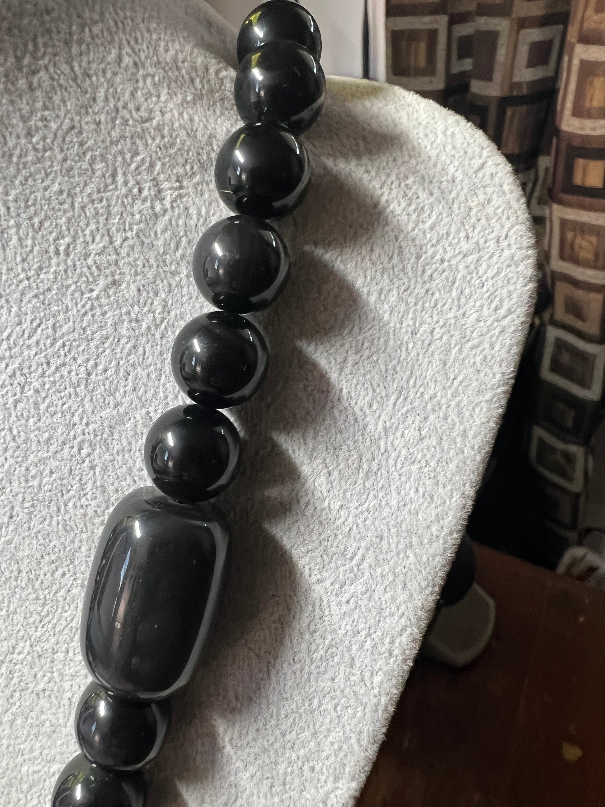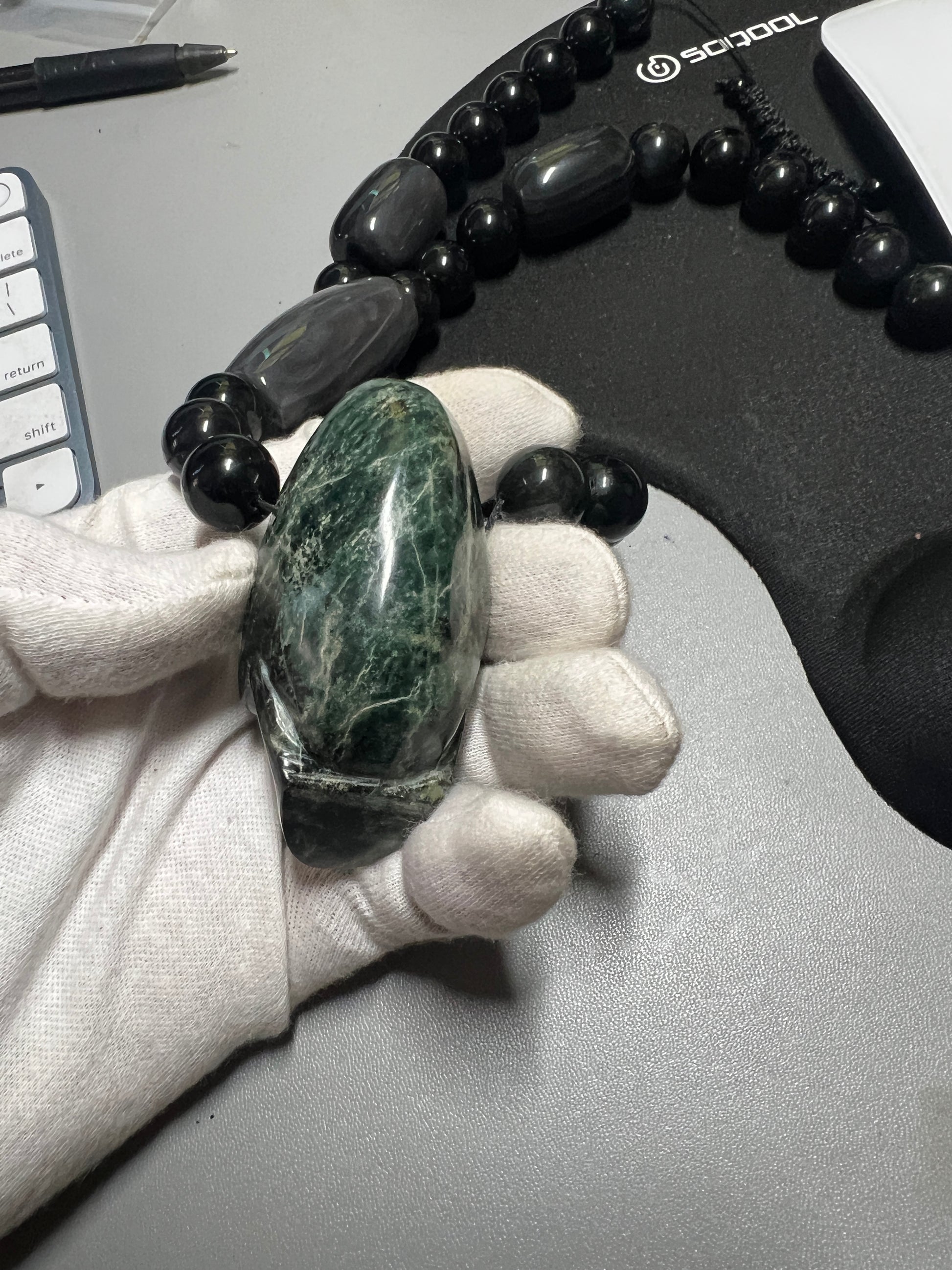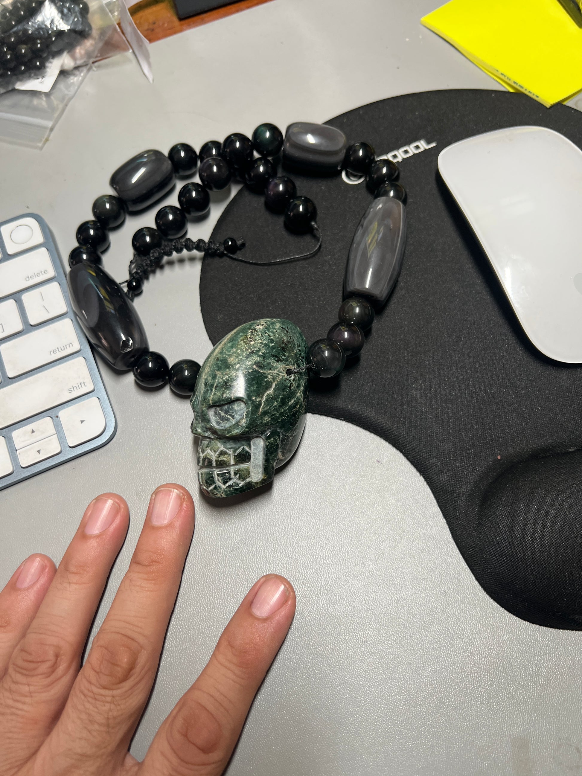 Large Jade Alien Head, Large Obsidian Beads, from Mexico